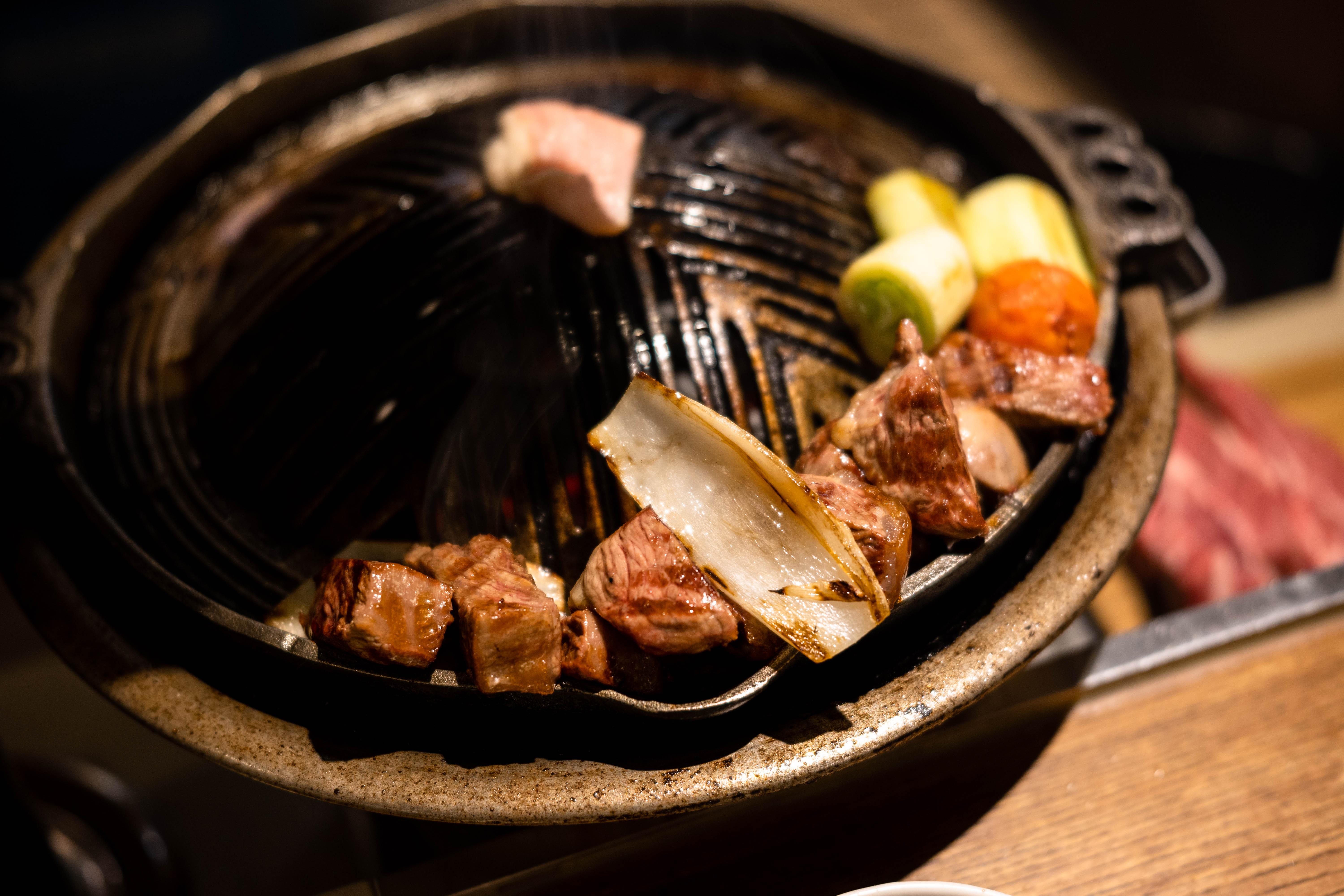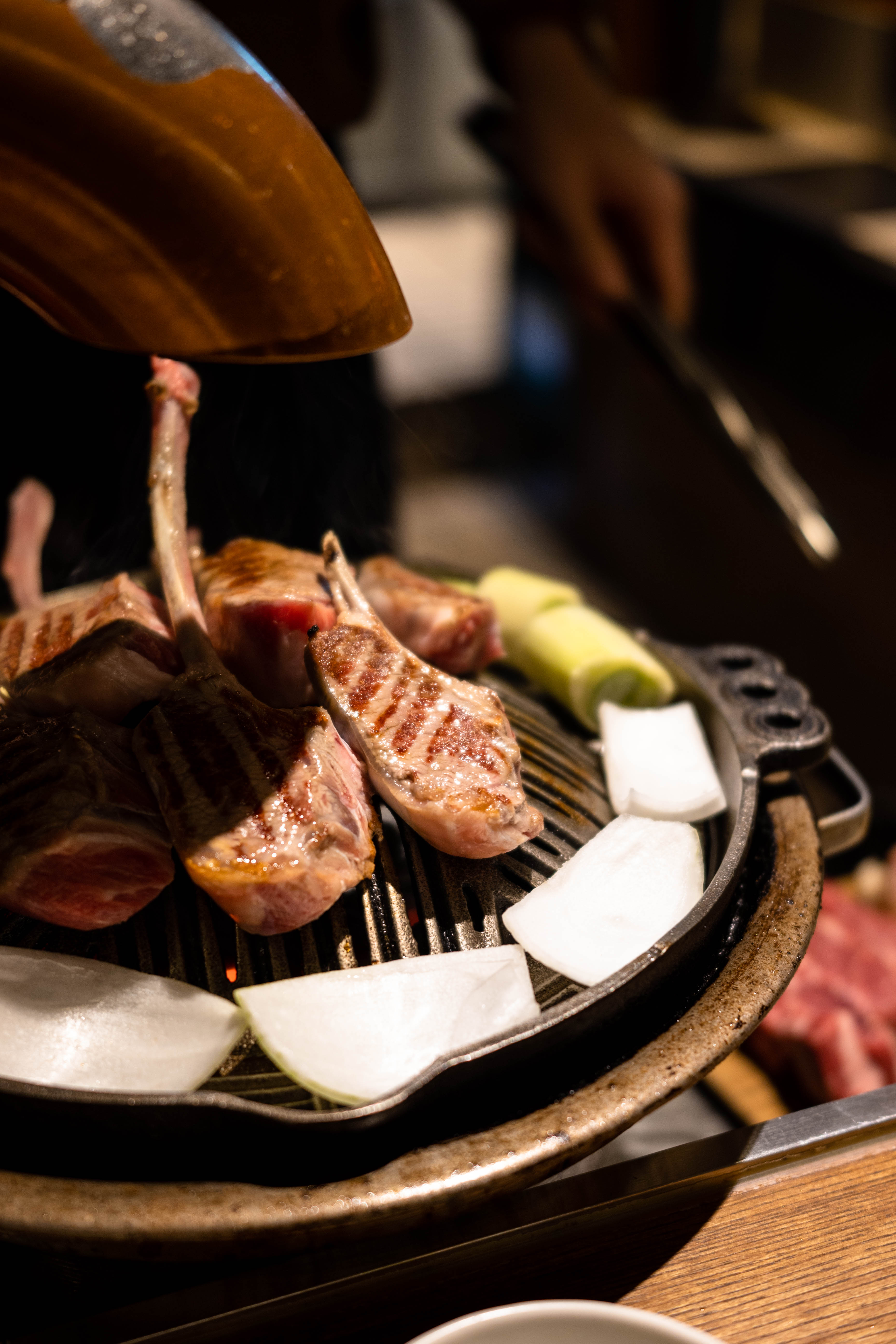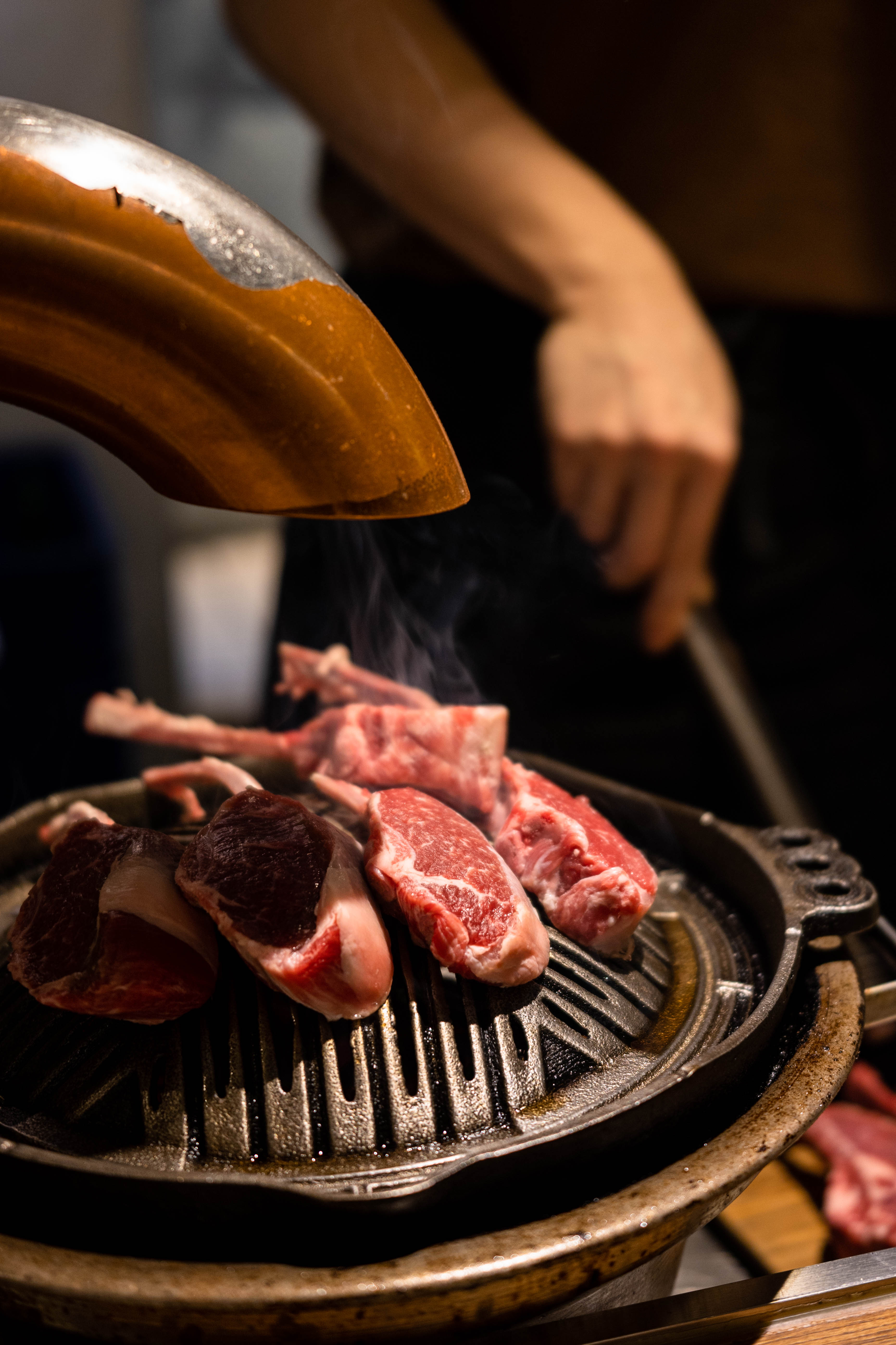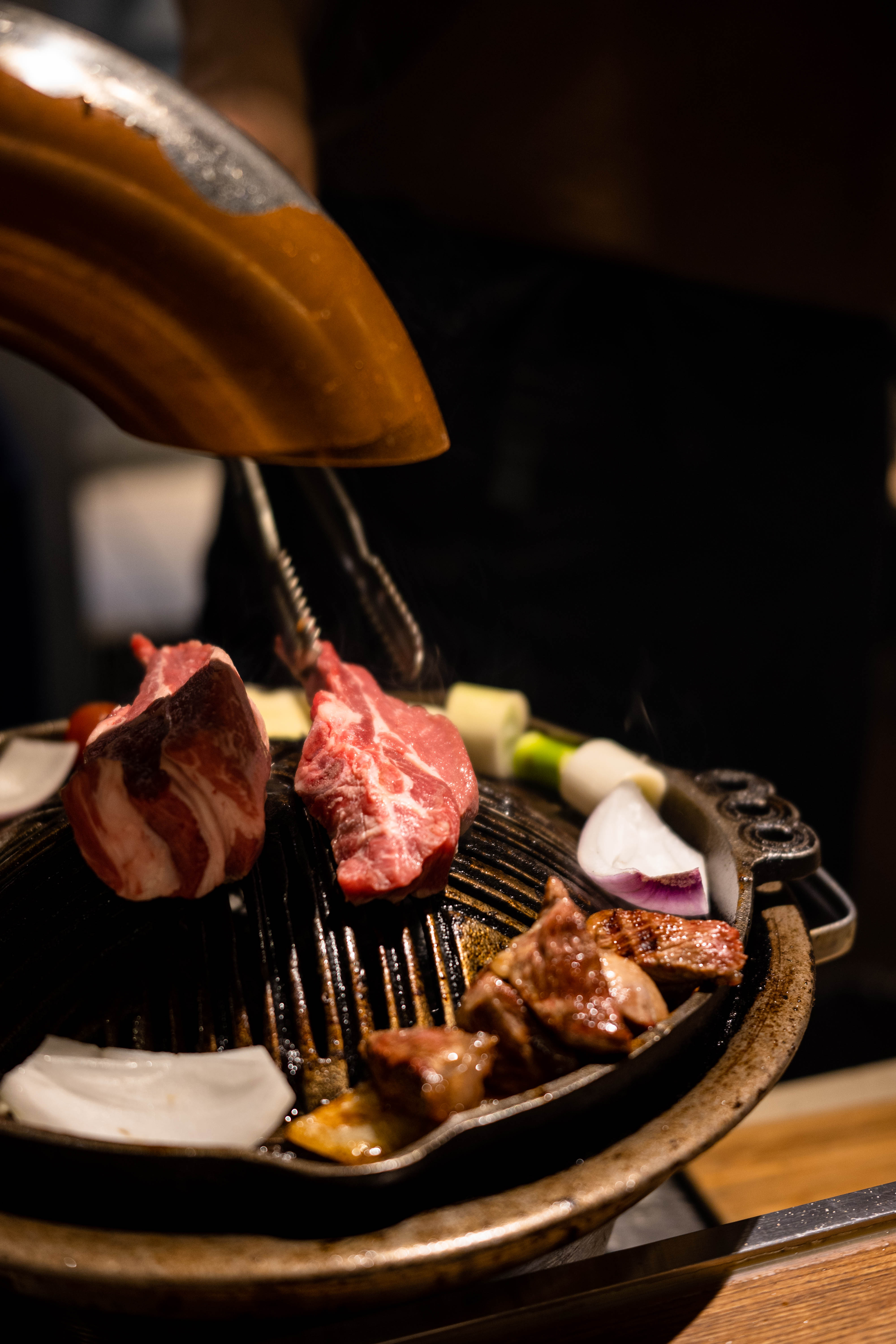 이렇게 고기가 계속 구워집니다. 프렌치 랙과 갈비, 등심을 먹었는데 역시 갈비가 기름기가 가장 많고 식감이 부드러워 제 취향에 맞았고 기름기 적고 담백한 등심은 함께 간 일행들이 좋아했습니다. 사실 프렌치 랙이 가장 귀한 부위라던데 제 취향은 지방과 육향이 강한 갈비였어요. 프렌치 랙은 야스노야에서 먹은 시그니처 생 양갈비가 더 괜찮았어요.