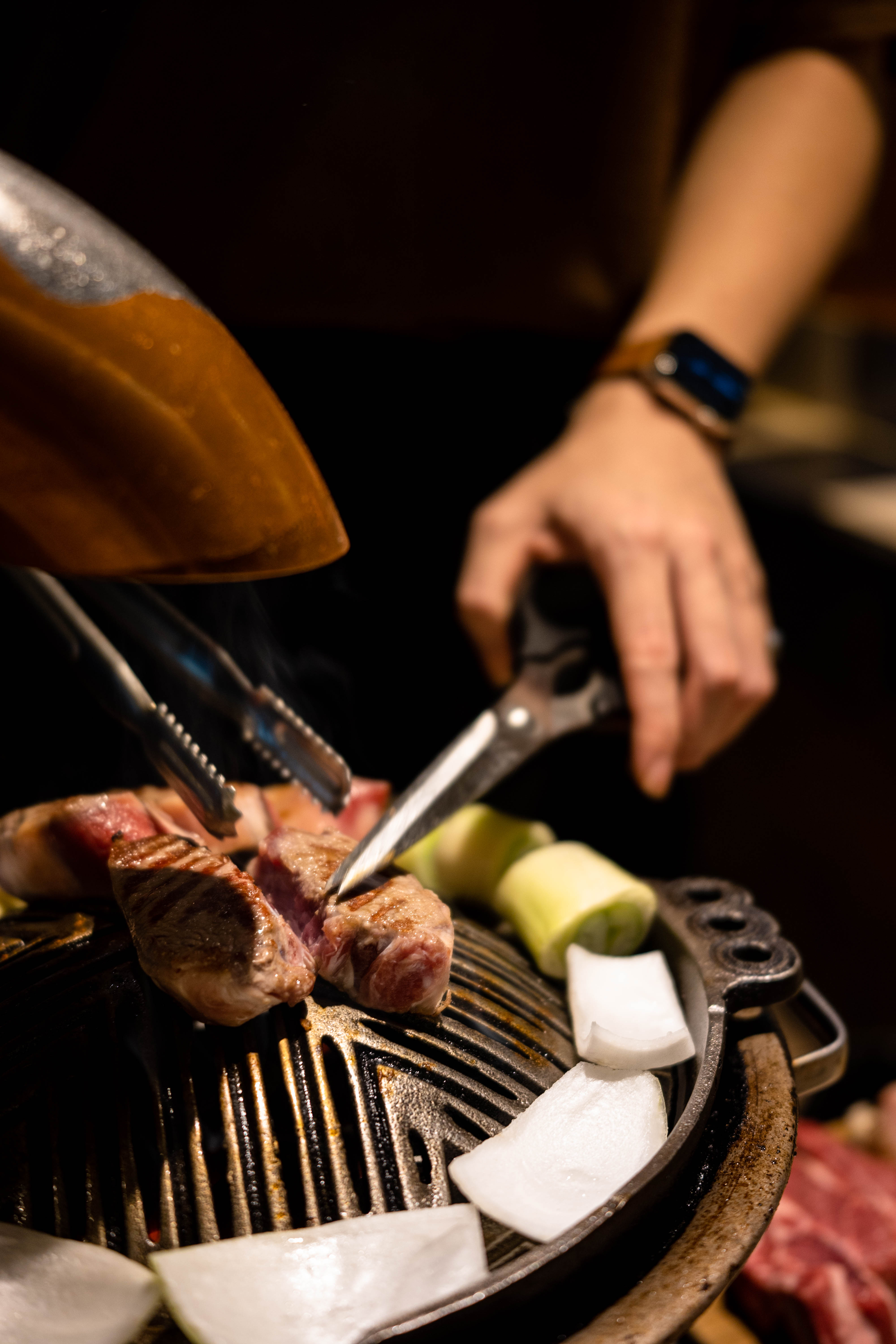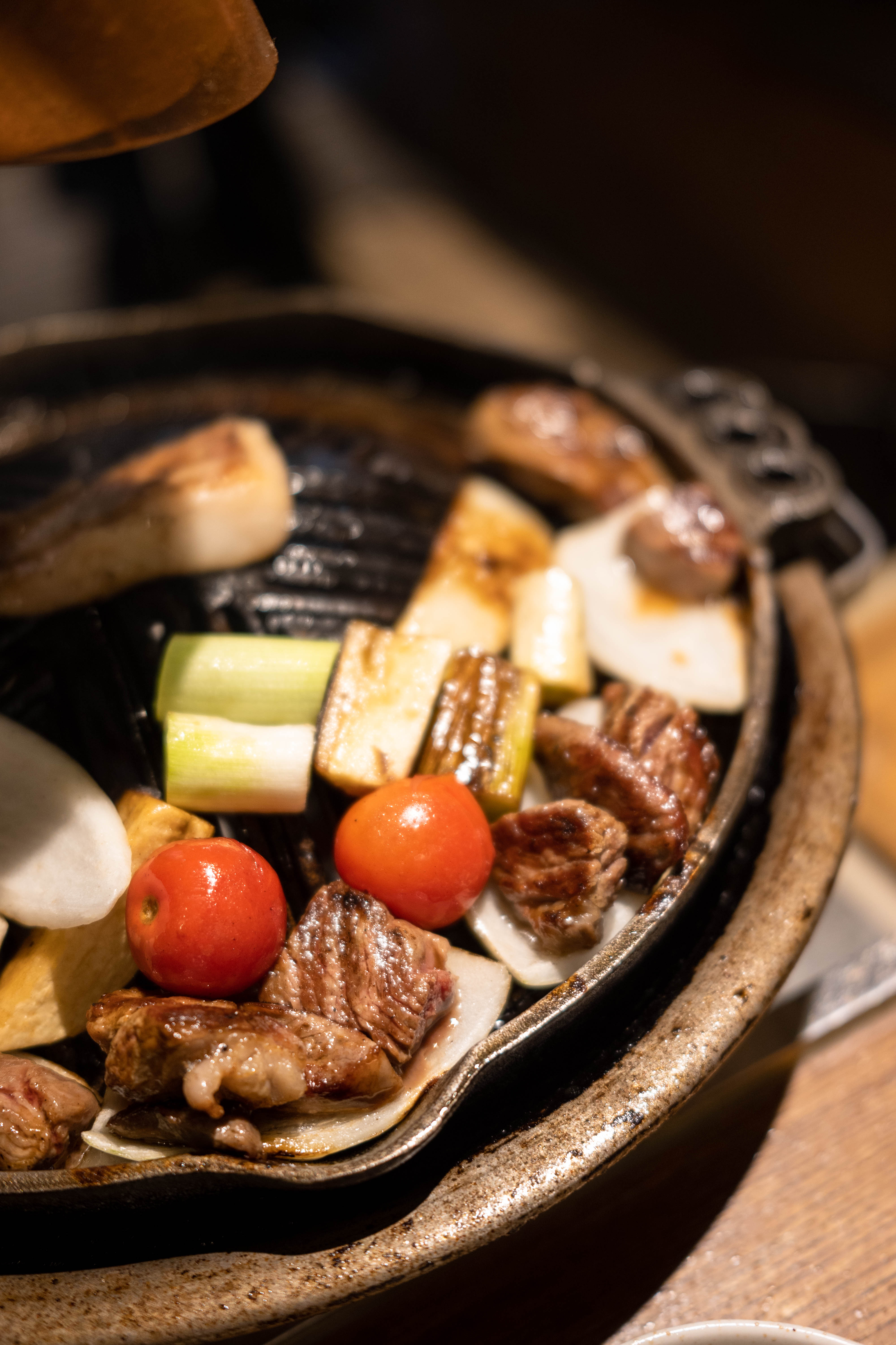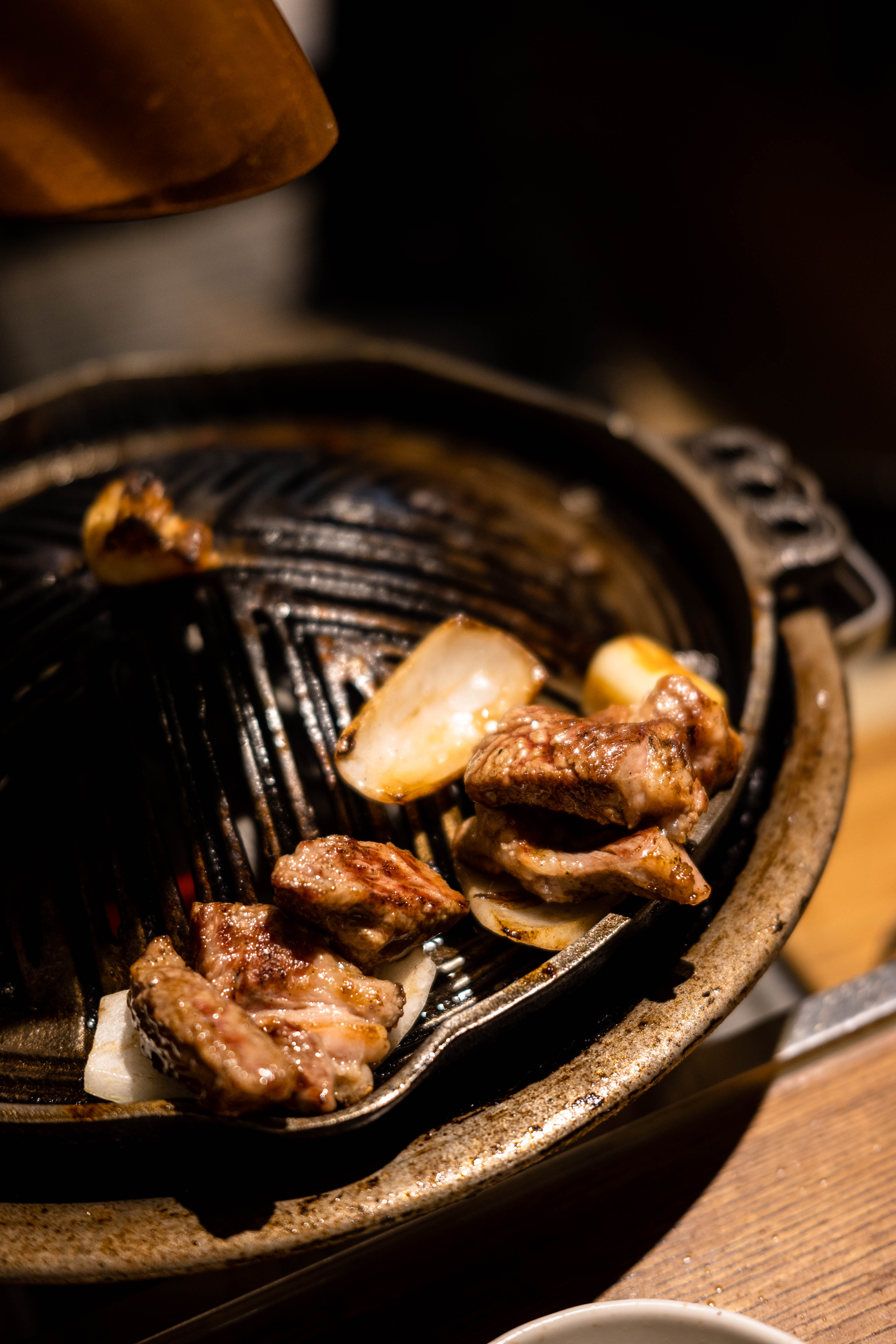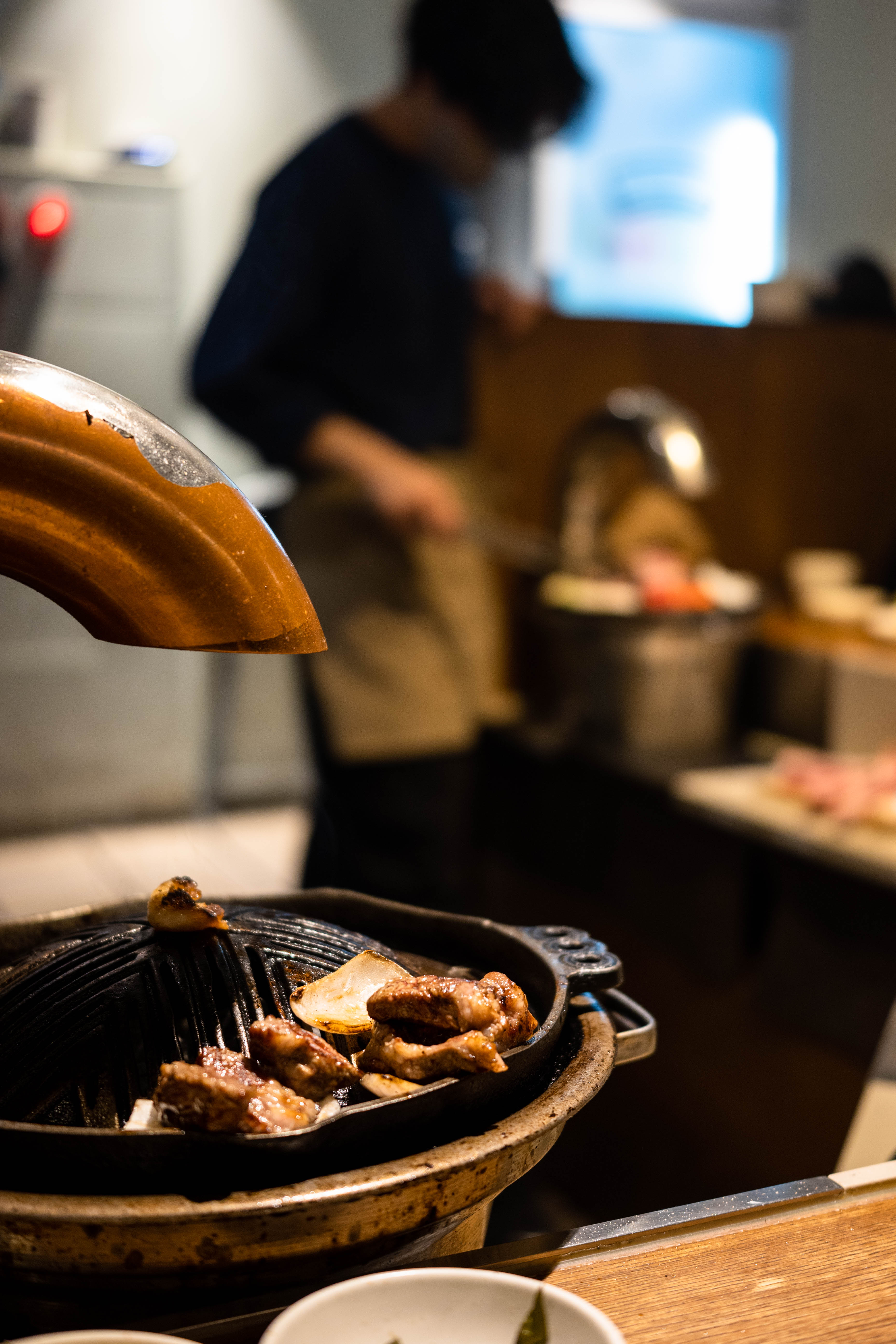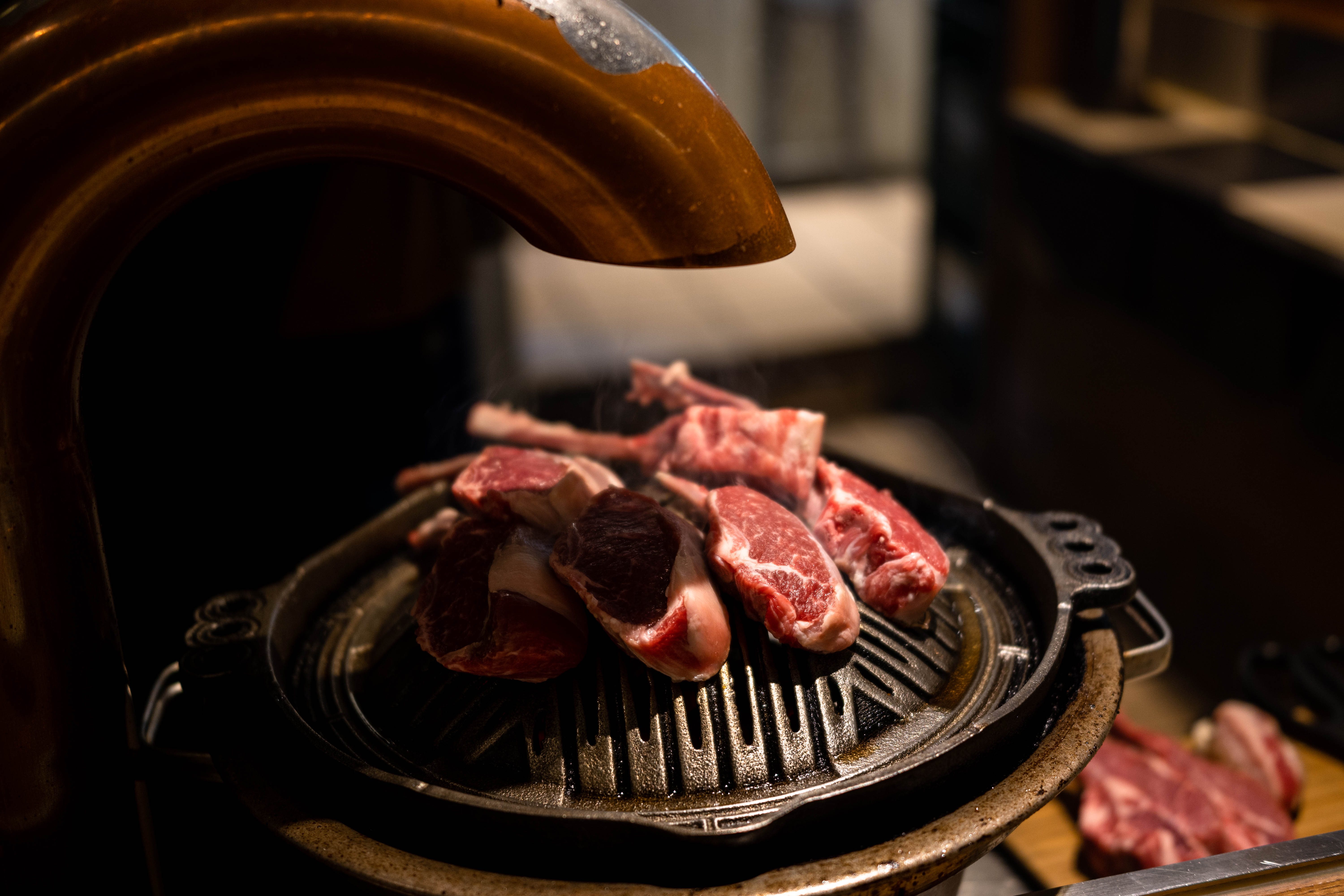 이렇게 고기가 계속 구워집니다. 프렌치 랙과 갈비, 등심을 먹었는데 역시 갈비가 기름기가 가장 많고 식감이 부드러워 제 취향에 맞았고 기름기 적고 담백한 등심은 함께 간 일행들이 좋아했습니다. 사실 프렌치 랙이 가장 귀한 부위라던데 제 취향은 지방과 육향이 강한 갈비였어요. 프렌치 랙은 야스노야에서 먹은 시그니처 생 양갈비가 더 괜찮았어요.