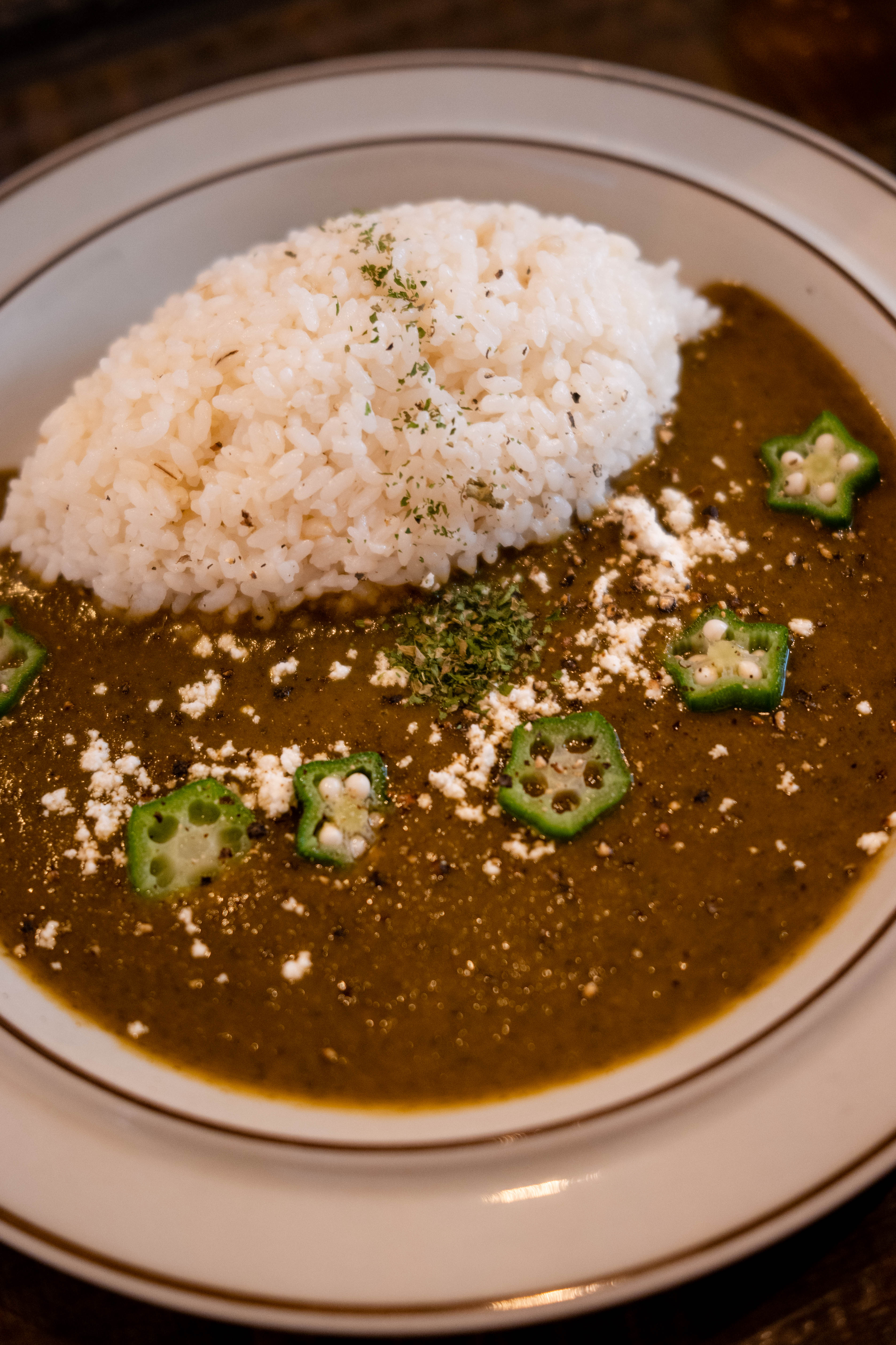 이때가 11월이었는데, 마침 제가 좋아하는 스프 카레가 있었습니다. 고정 메뉴인 시금치 카레와 스프 카레를 주문했습니다. 브레이크타임동안 준비가 된지라 메뉴가 빨리 나오는 편입니다. 예쁜 그릇에 담겨 나오는 카레는 모양부터 먹는 사람의 행복을 배려했다는 인상을 받습니다. 고명을 조심스레 하나씩 올린 것이 눈에 보여서요. 카레 맛은 다른 곳에서 먹었던 스프 카레보다는 걸죽하고 맛이 진했습니다. 국물이 있는 메뉴라 속이 따뜻해지는 느낌, 서울에서 맛있는 스프 카레 먹기가 쉽지 않은데 이정도면 일부러 찾을만 합니다. 함께 나온 밥도 잘 어울렸지만 가능했다면 면을 넣고 싶었어요.