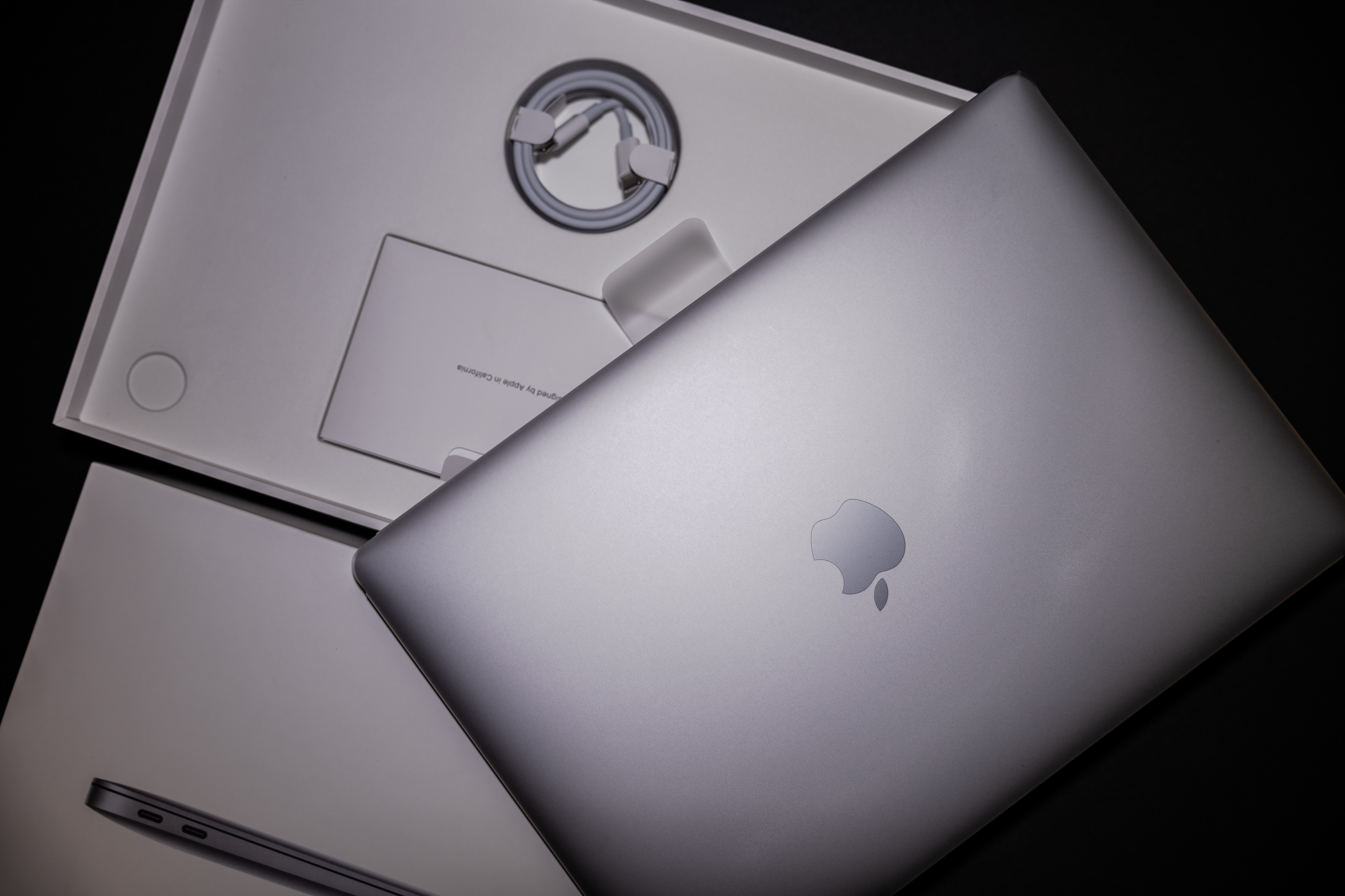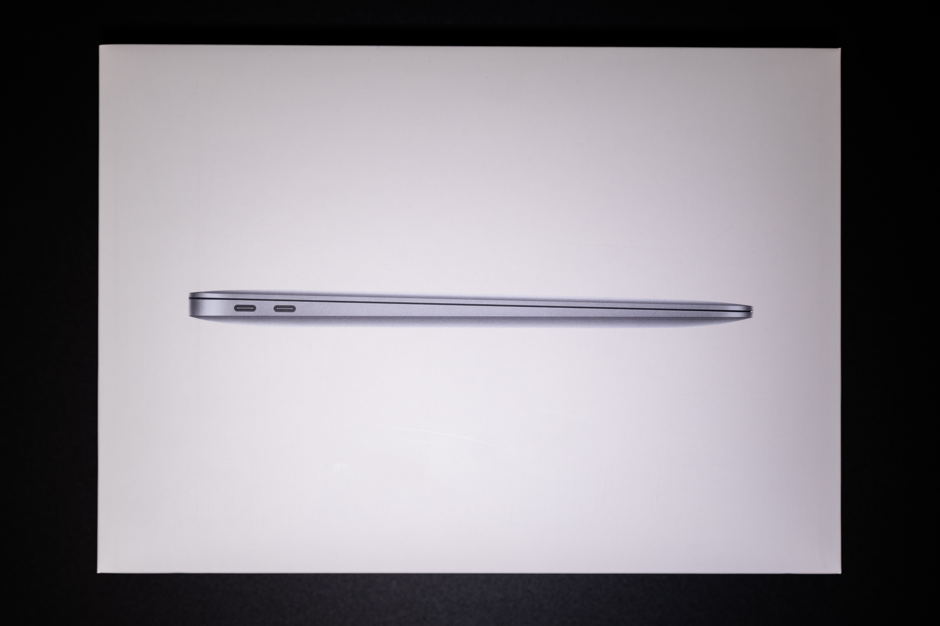 상자의 덮개를 열면 바로 제품이 노출되는 방식 역시 동일합니다. 제가 선택한 컬러는 스페이스 그레이입니다. 아이폰/아이패드 모델은 해마다 스페이스 그레이 컬러가 조금씩 차이가 있는데 맥북의 그것은 육안으로는 차이가 크게 느껴지지 않습니다. 현재 사용중인 아이폰 11 프로, 아이패드 프로 11 스페이스 그레이 모델과 비슷해서 좋습니다.