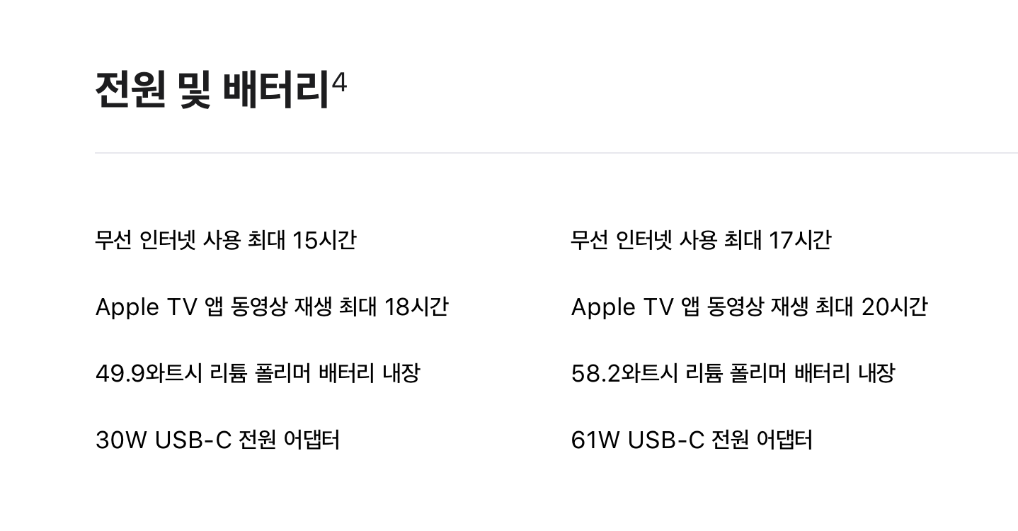 기본형 기준 두 모델의 가격 차이는 40만원이지만, 디스플레이와 키보드, 사운드 등에서 느껴지는 차이가 그 가격만큼이냐 하면 사용자마다 다르겠지만 저는 40만원 저렴한 맥북 에어쪽이 대다수의 사용자에게 더 합리적인 선택이라고 하겠습니다. 그래서 제가 맥북 에어를 주문했고요.