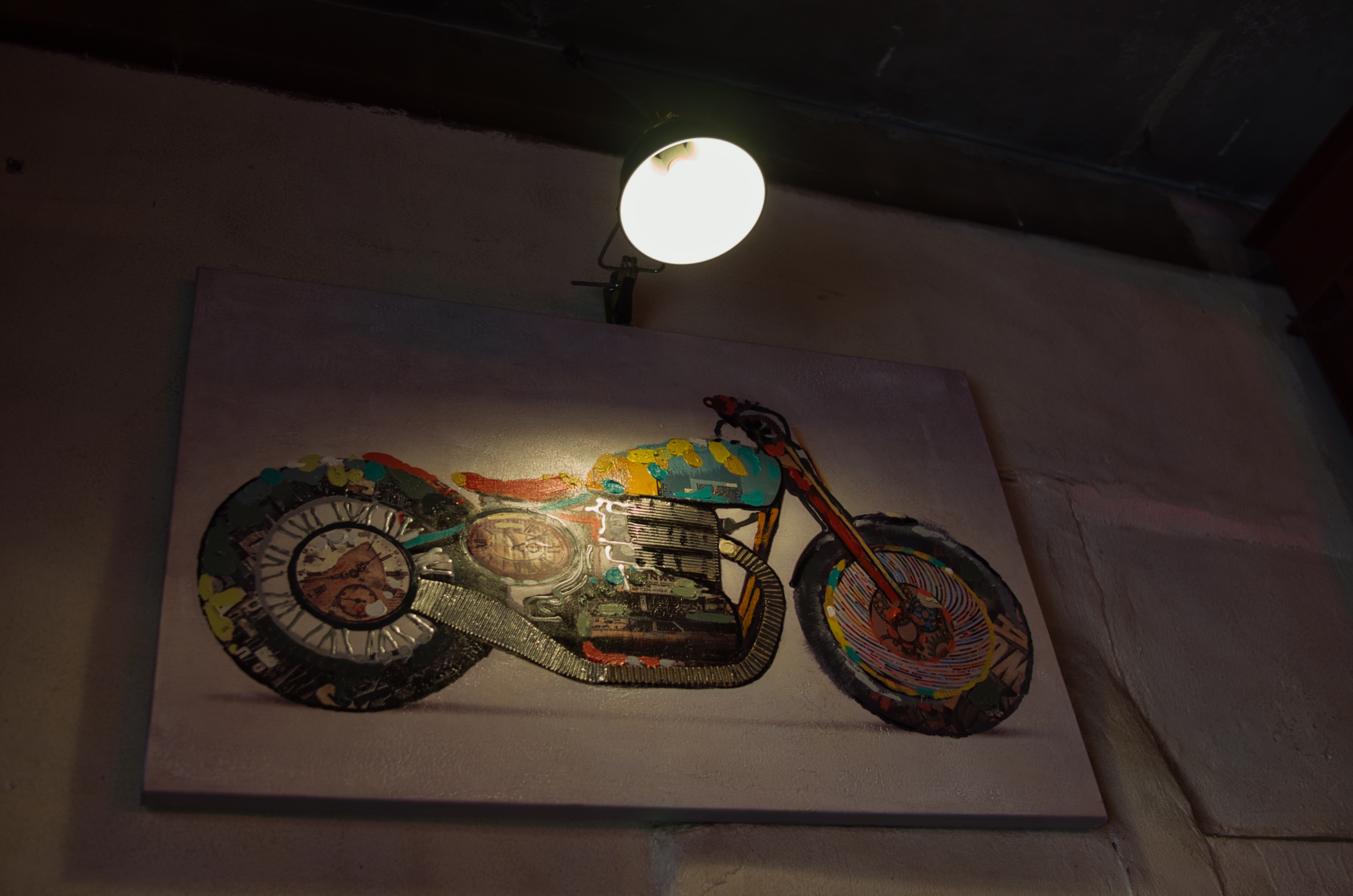 실내는 정돈되지 않은 듯 흥미로운 장식과 소품들이 있었습니다. 역시나 이름대로 벽에 오토바이를 주제로 한 그림이 걸린 것이 재미있었어요.