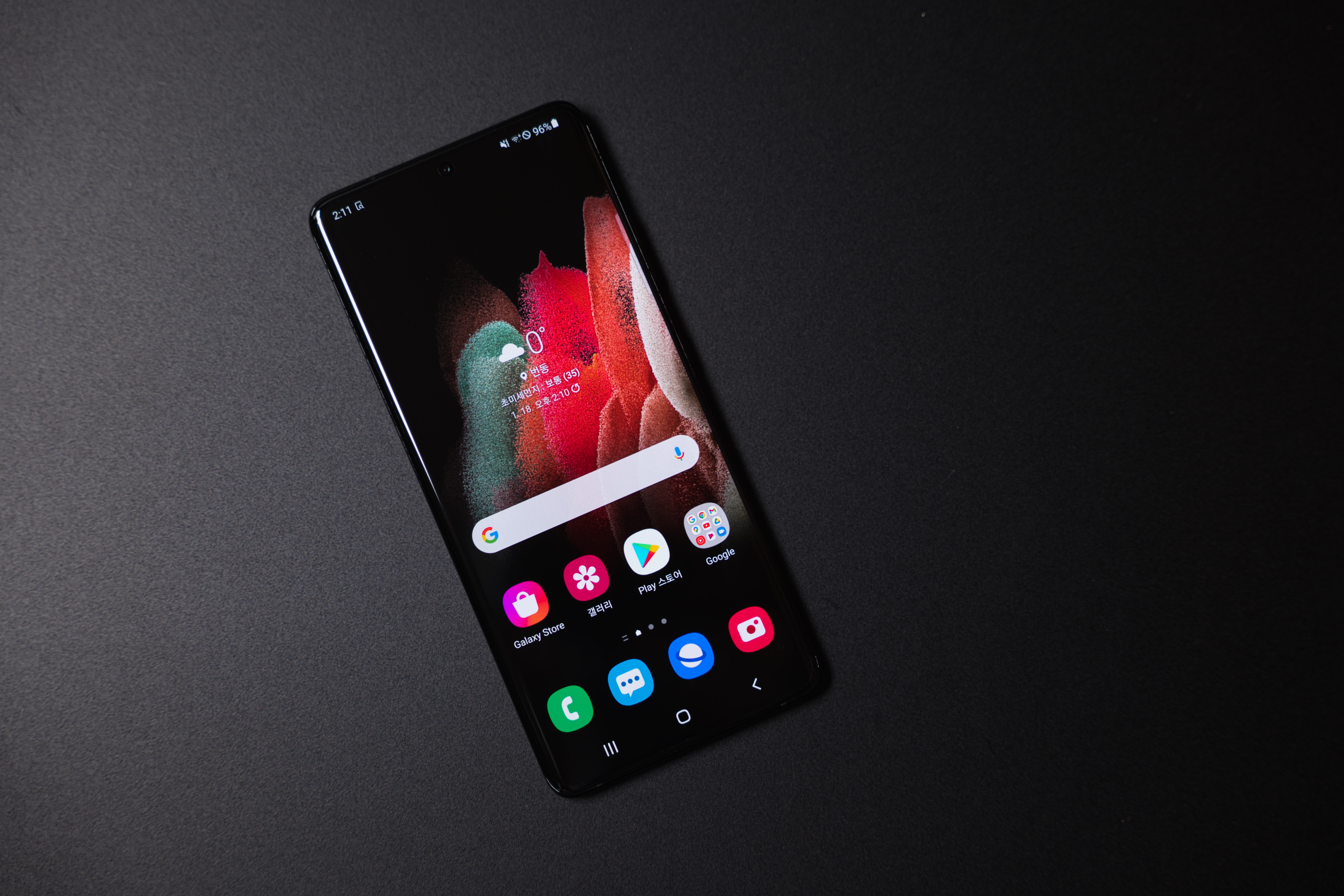 갤럭시 S21 울트라의 전면. 이제 전면만 보고는 제조사와 모델명을 구분하기가 쉽지 않죠. 전면을 가득 채운 화면, 그리고 상단의 작은 펀치홀과 전면 카메라 배치는 갤럭시 S20 시리즈와 크게 다르지 않습니다. 사실 제가 요즘엔 최신 스마트폰에 대한 관심이 덜해서 그런 것 같기도 해요. 울트라 모델답게 화면이 정말 크고 시원시원합니다. 밝기도 마음에 들어요. 지금 사용 중인 아이폰 11 프로 모델의 화면이 작고 칙칙해 보일 정도로요. 물론 갤럭시 시리즈의 AMOLED의 기본 색 모드는 너무 채도가 높고 과장된 느낌이긴 합니다만.