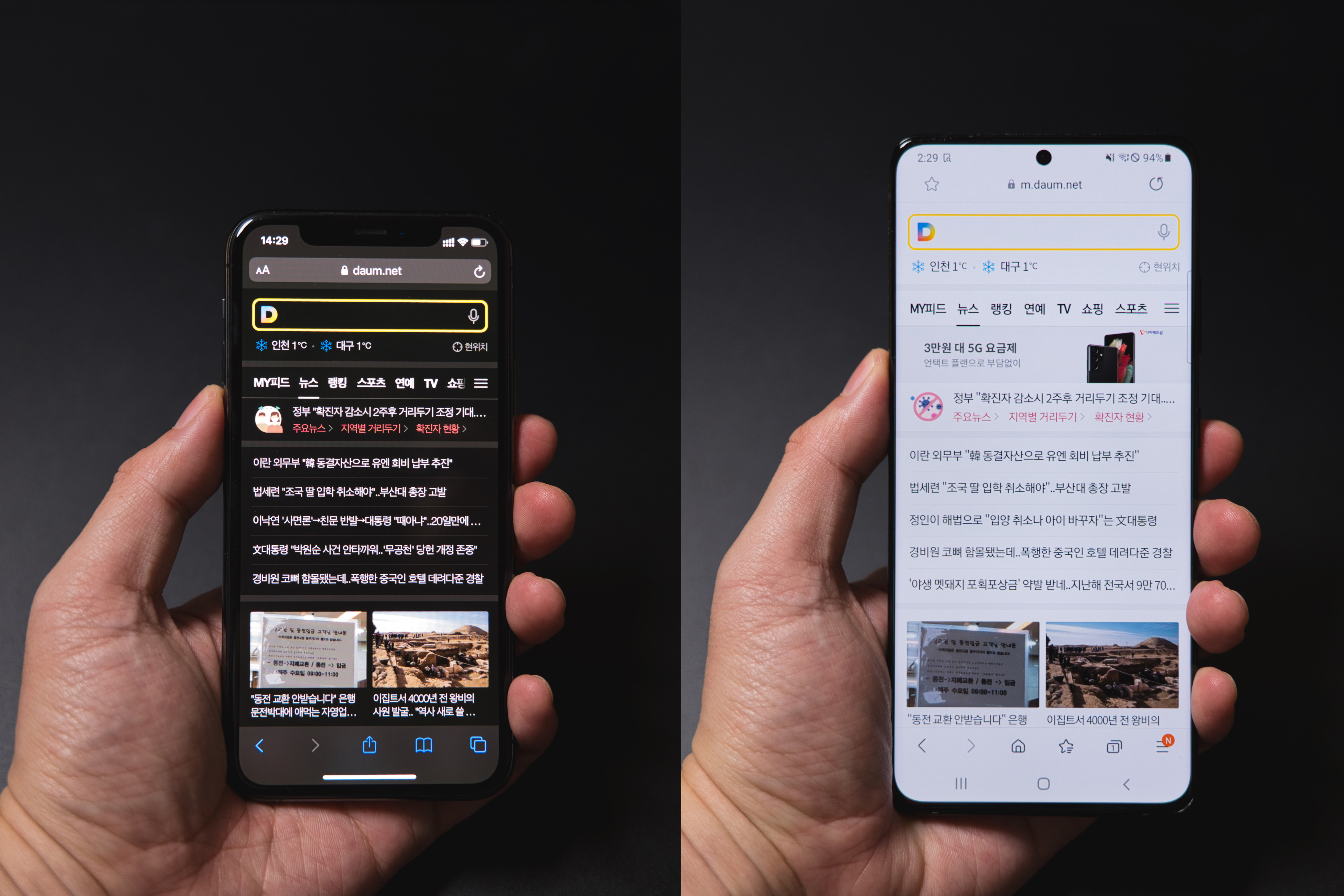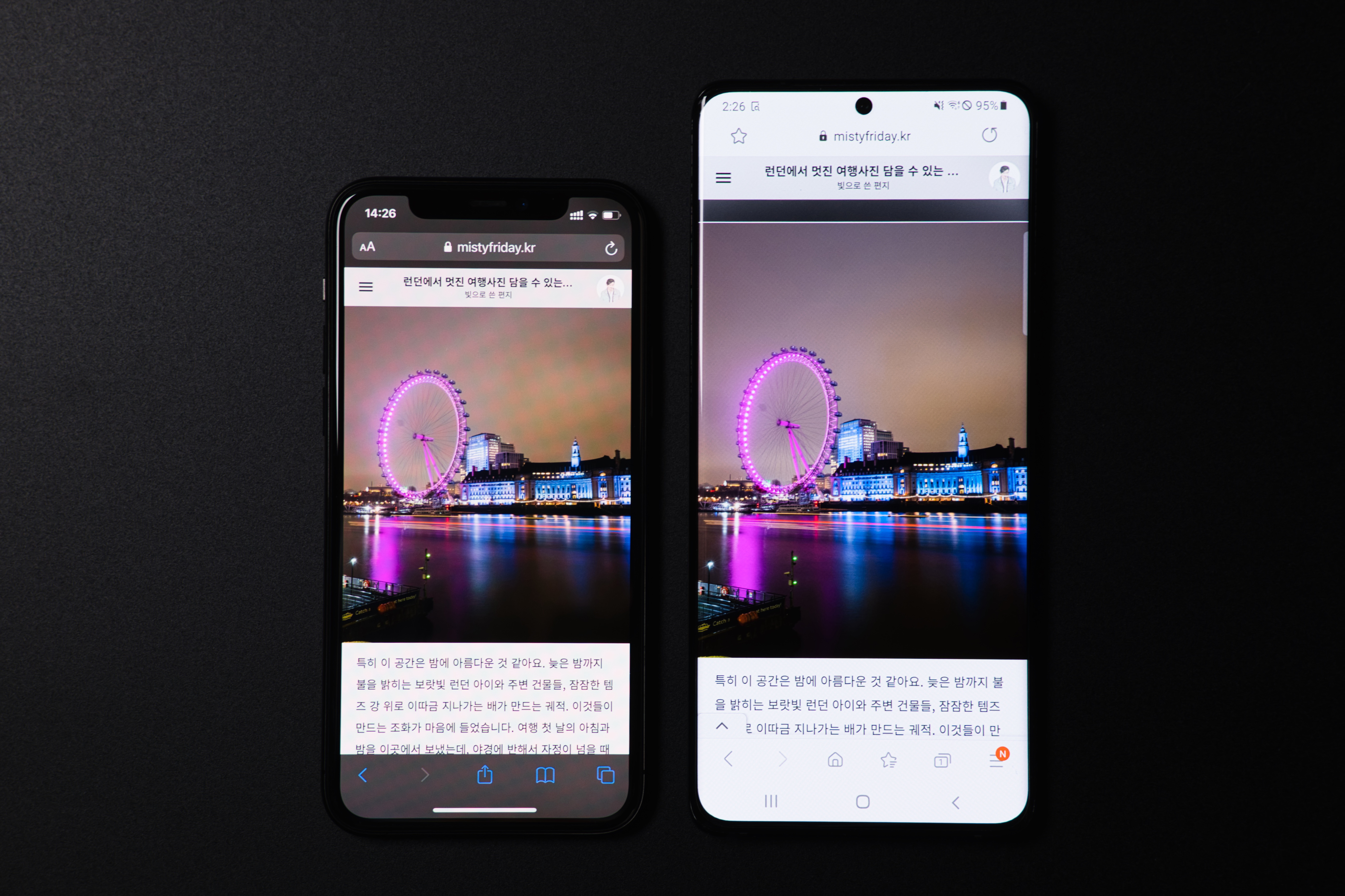 화면에서는 확실히 크기와 해상도 모두 갤럭시 쪽이 만족스럽습니다. 표시된느 정보와 글자 크기, 해상도로 인한 선명함 역시 우세하고요. 아이폰의 장점이라면 작아서 한 손으로 조작하기 좋은 정도랄까. 하지만 저는 아이패드가 있으니까, 화면 욕심은 더 내지 않으려고 합니다.