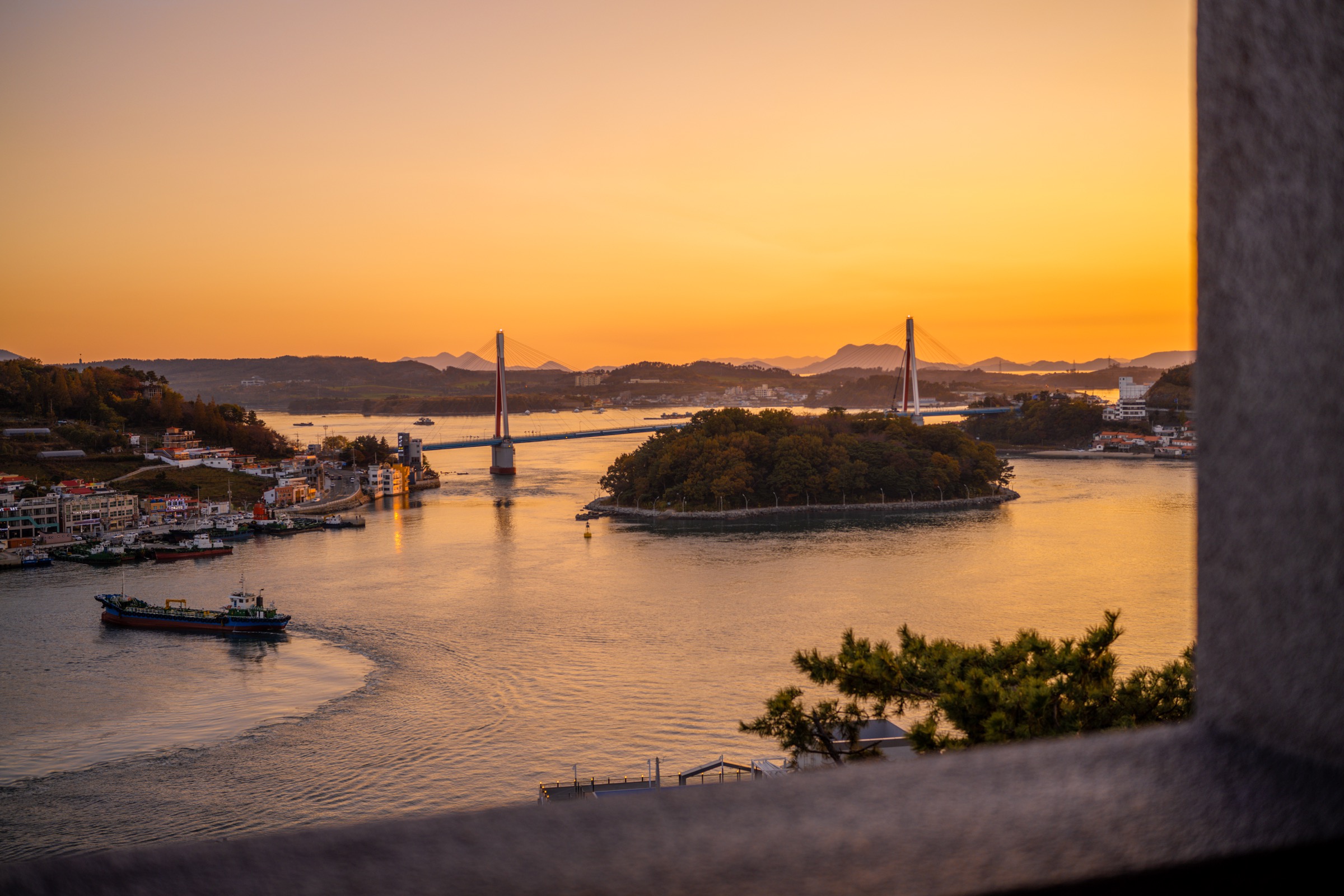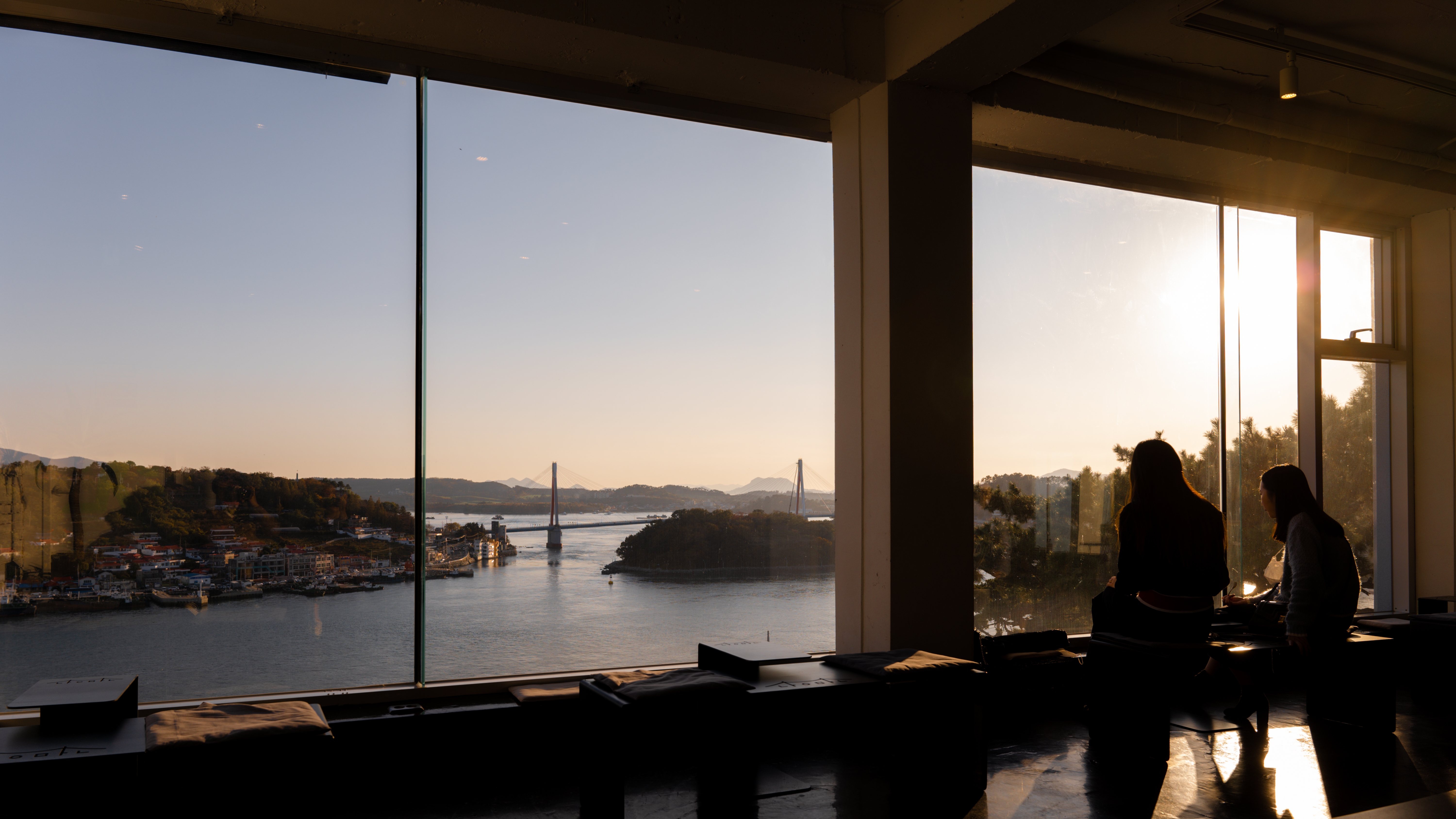 겨울에 코로나 유행이 여전했던 시기라 손님이 많지는 않았습니다만, 그래도 안에 있던 사람들 모두 해가 질 때까지 떠나지 않고 바깥 풍경을 함께 바라보며 시간을 보냈습니다. 몇몇은 이곳 분일테고, 또 몇몇은 다른 곳에서 온 사람들일텐데 유리 너머 풍경이 모두에게 감동을 줬나 봅니다. 저는 지난 기억과 사진 속 그 풍경이 다시 눈 앞에 있음에 '여수에 왔구나.'라고 새삼 기뻐하면서요. 겨울이라 해가 빨리 지는 것이 한 편으로는 다행이었고, 다른 한 편으로는 야속했습니다.