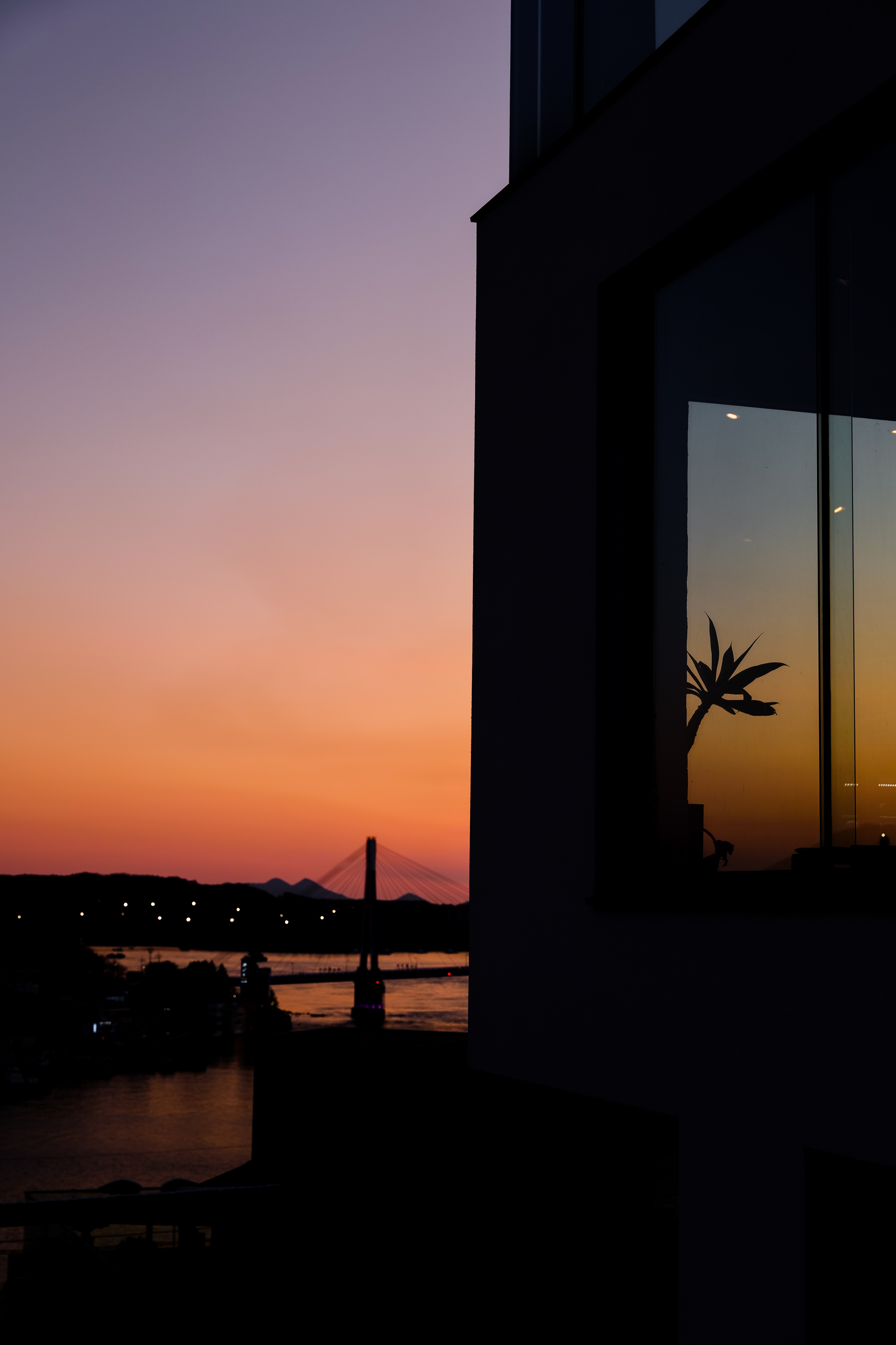 낭만 카페를 대표하는 뷰는 역시 옥상에서 보는 여수 풍경입니다. 제법 높은 건물 옥상이라 앞이 탁 트이고 눈 앞에 돌산도와 돌산 대교, 거북선 대교 등 여수 구항구 풍경이 파노라마로 펼쳐집니다. 오전, 오후, 저녁 시간마다 느낌이 달라서 여기 있으면 생각보다 오랜 시간을 보내게 됩니다. 그 중 옥상 구석에 있는 이 네모난 창은 포토 스팟으로 인기가 많죠. 예전엔 여기가 경쟁 치열한 좌석이었는데, 요즘은 포토존으로 바뀌었습니다.