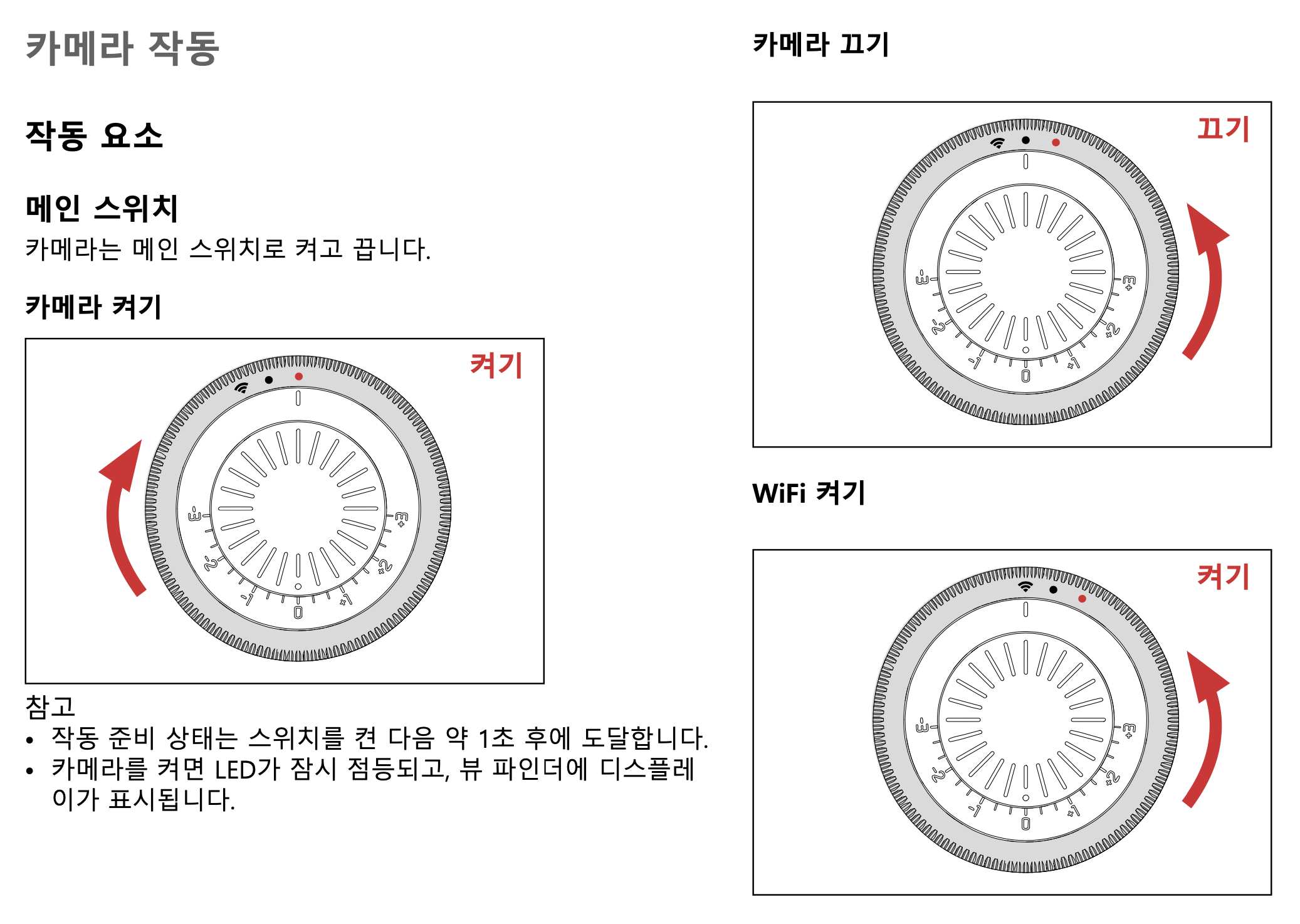 바깥쪽 다이얼의 바가 흰색에 위치하도록 돌리면 전원이 켜져 촬영이 가능해집니다. 한 번 더 돌리면 Wi-Fi 무선 통신 모드로 진입합니다. Leica FOTOS 앱을 통해 스마트폰과 태블릿에 연결할 수 있어요. 안쪽 다이얼은 노출 보정 다이얼입니다. -3EV부터 +3EV까지 설정 가능합니다. 개인적으로 자주 사용하는 기능이고, M 시리즈에선 전용 다이얼이 없어 아쉬웠는데 개인적으로 매우 반가운 변화입니다.