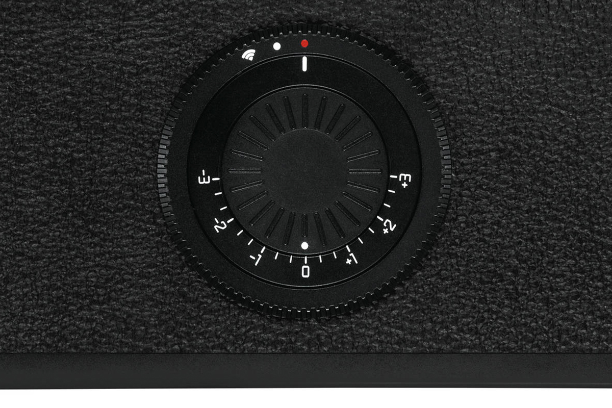 바깥쪽 다이얼의 바가 흰색에 위치하도록 돌리면 전원이 켜져 촬영이 가능해집니다. 한 번 더 돌리면 Wi-Fi 무선 통신 모드로 진입합니다. Leica FOTOS 앱을 통해 스마트폰과 태블릿에 연결할 수 있어요. 안쪽 다이얼은 노출 보정 다이얼입니다. -3EV부터 +3EV까지 설정 가능합니다. 개인적으로 자주 사용하는 기능이고, M 시리즈에선 전용 다이얼이 없어 아쉬웠는데 개인적으로 매우 반가운 변화입니다.