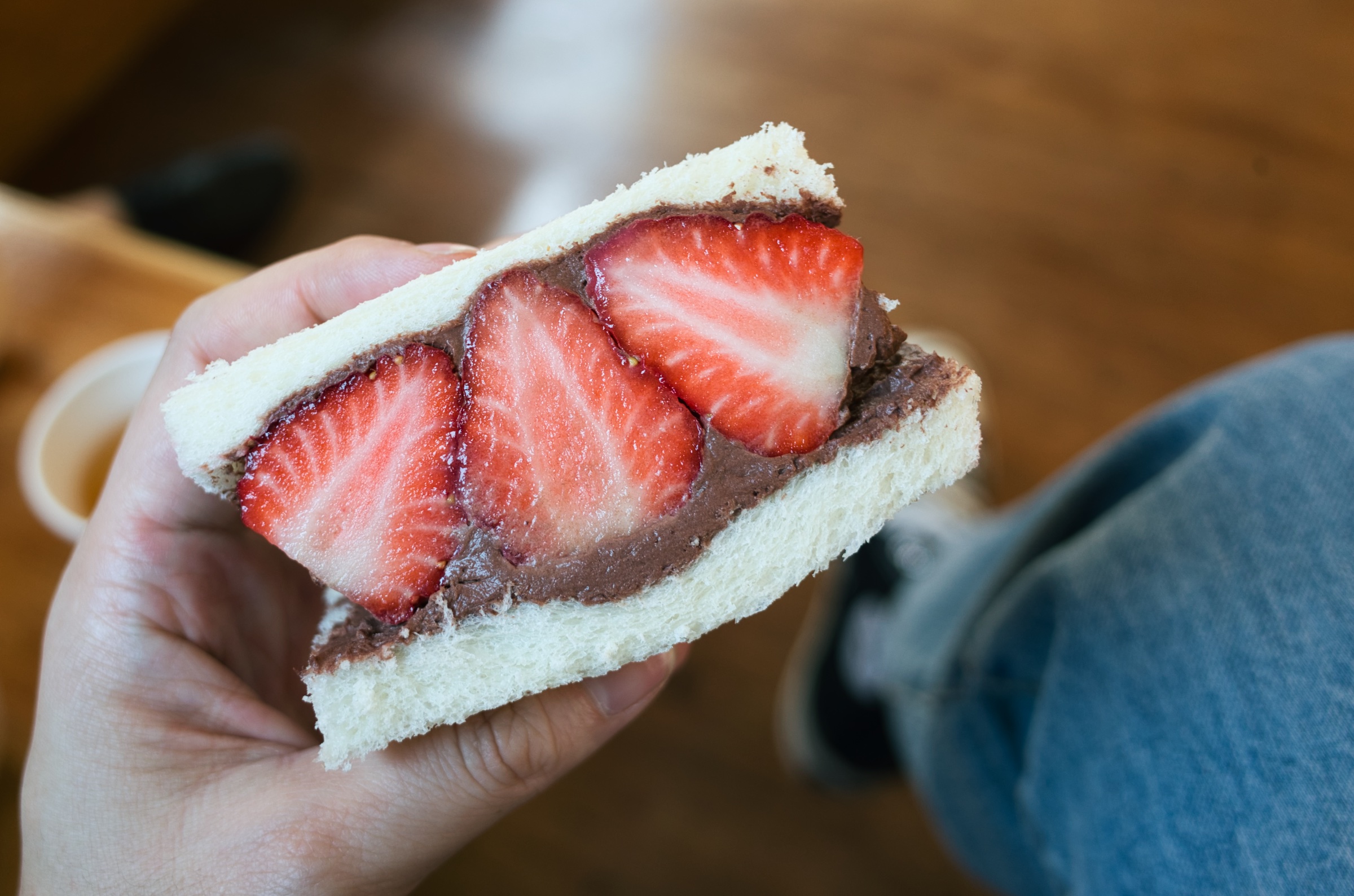 생크림 딸기 케이크는 케이크 전문점에서 먹는 것 못지 않게 괜찮았어요. 딸기 당도도 괜찮고 생크림도 부드럽고요. 딸기 초콜릿 샌드위치는 딸기 맛에 비해 초콜릿이 약해서 생딸기와 빵을 먹는 듯했습니다. 제가 딸기를 좋아하지 않아서, 초콜릿을 좋아해서 아쉬움이 있었겠죠? 초콜릿이 더 많아서 두 맛이 풍부하게 느껴지면 더 좋았을 것 같습니다.