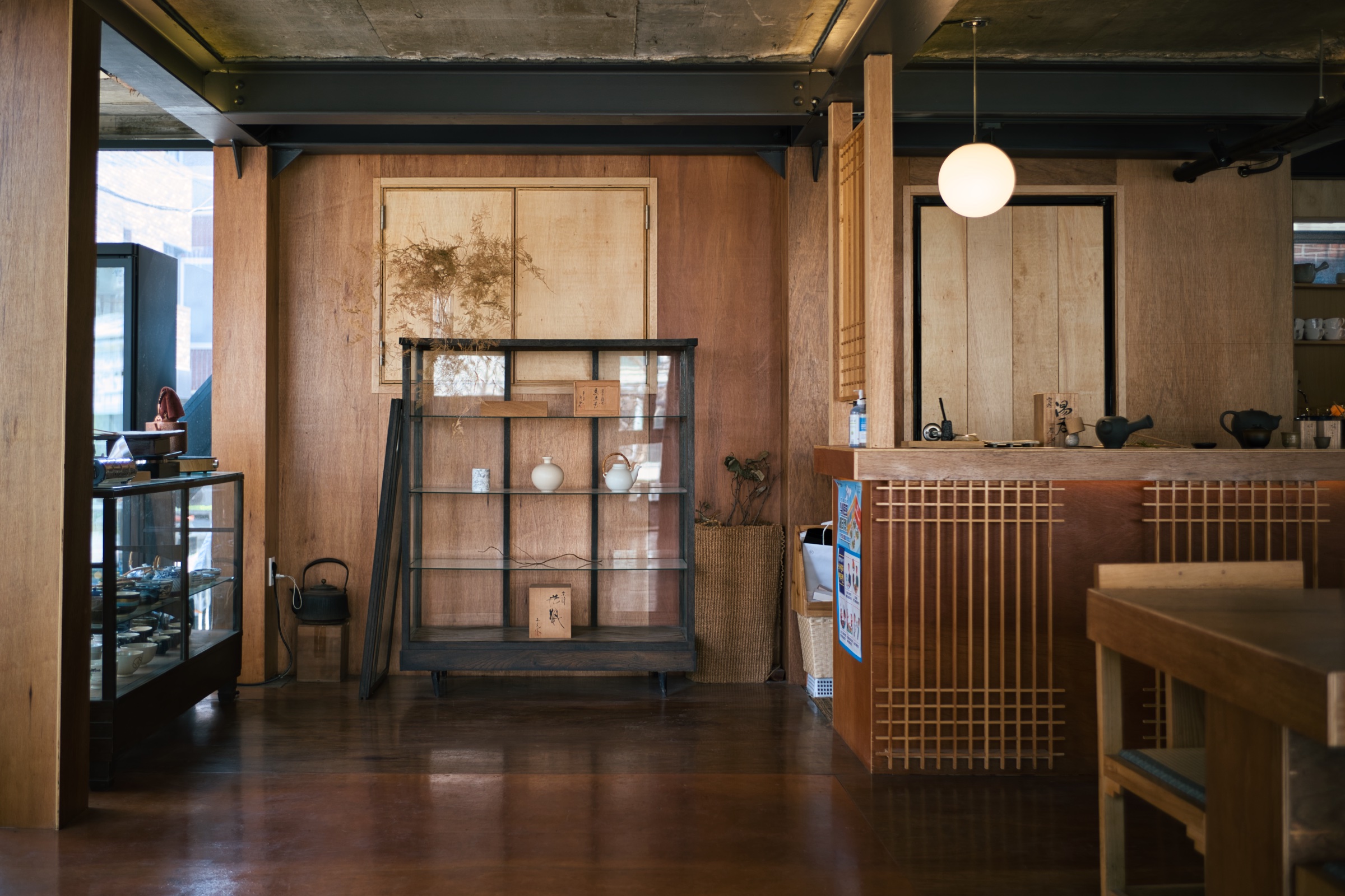 사진으로 디저트 박스를 볼 때도 그런 생각을 했는데, 내부 인테리어도 일본 전통 찻집이 생각나는 분위기더군요. 메뉴는 전통차와 커피 등을 포함한 다양한 구성이지만 교토 어딘가에 있어도 어색하지 않을 법한 느낌이었습니다. 나무와 콘크리트로 구성한 내부가 요즘 유행에 맞으면서도 차분한 느낌이 들어서 앉아 시간 보내기 좋았어요. 손님 없이 조용해서 더 그랬겠지만.