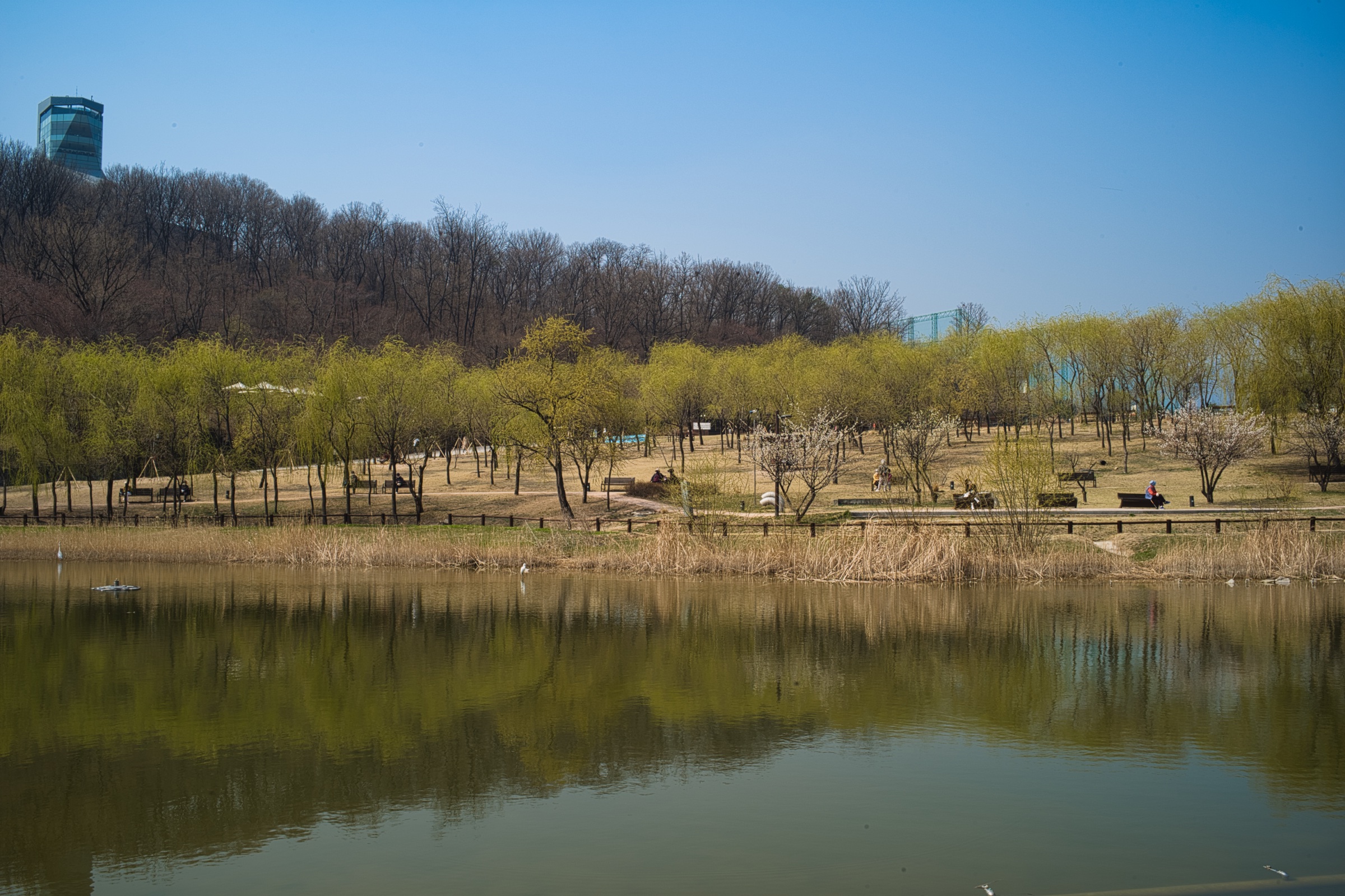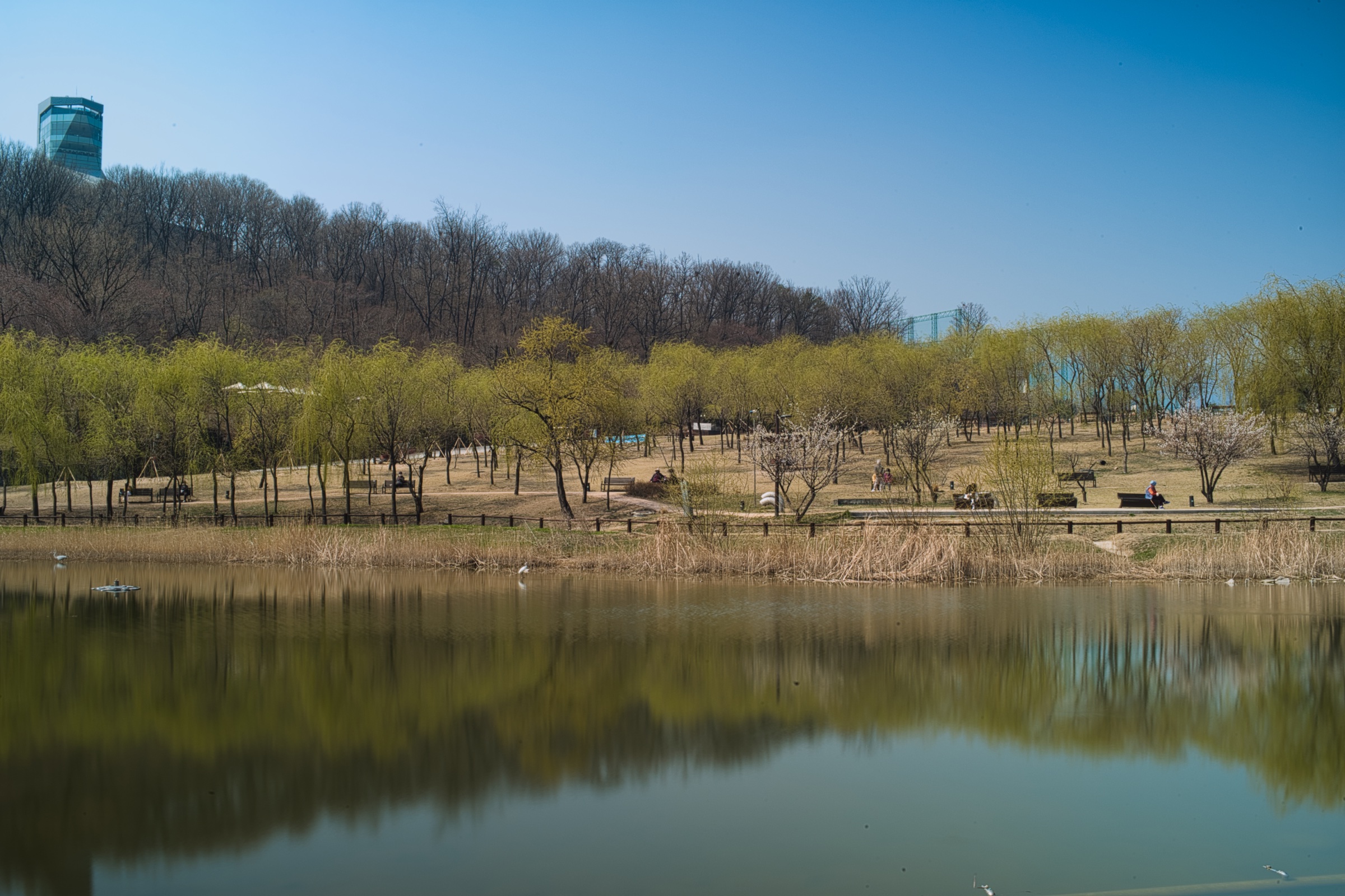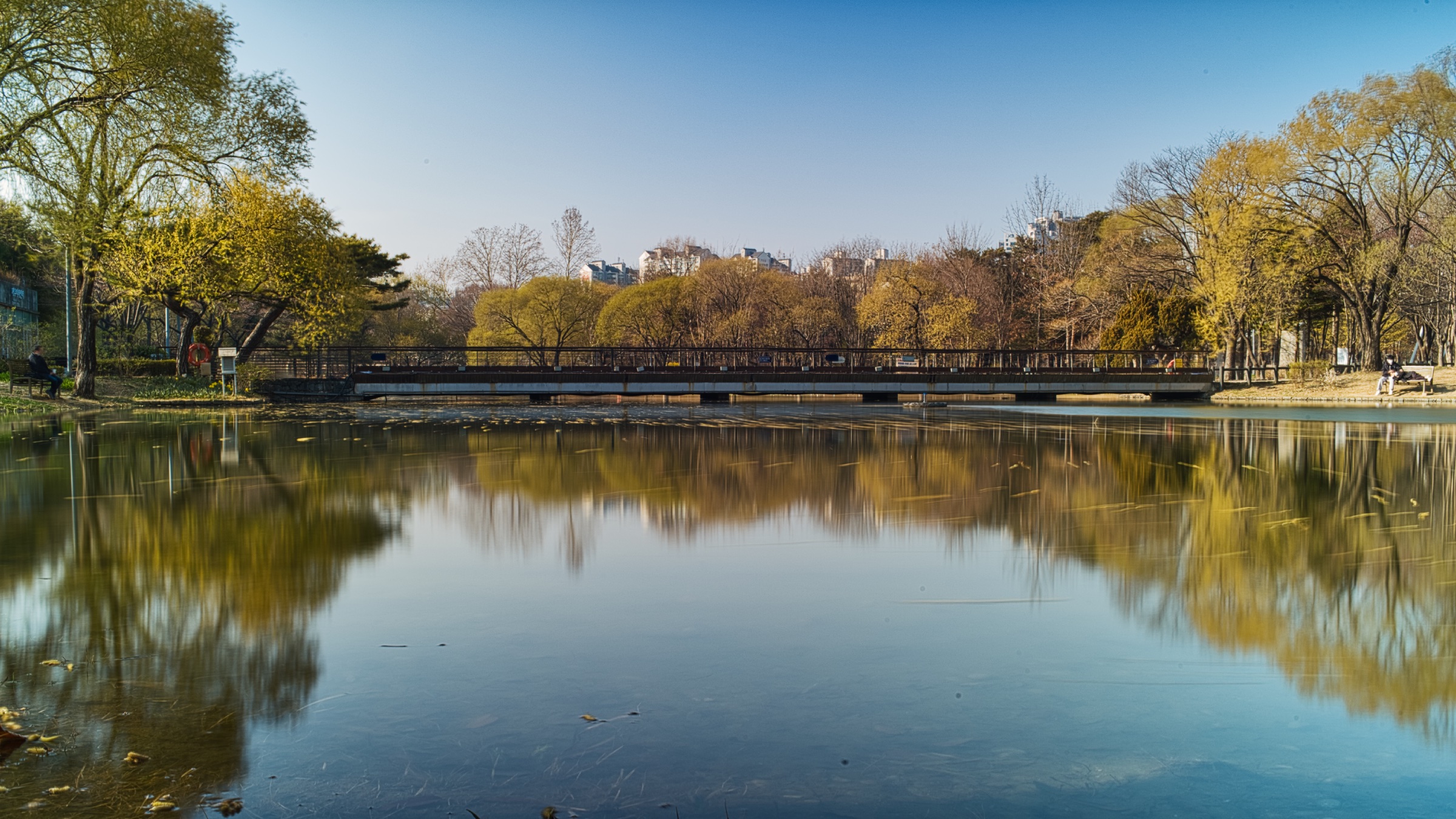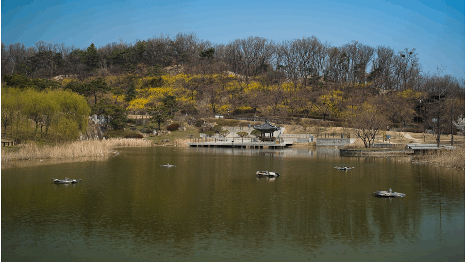 위 사진은 화창한 봄 날 오후, 물에 비친 풍경을 16초간 촬영한 이미지입니다. 물에 비친 반영이 선명해져서 일반 촬영보다 예쁜 이미지가 됐습니다.
