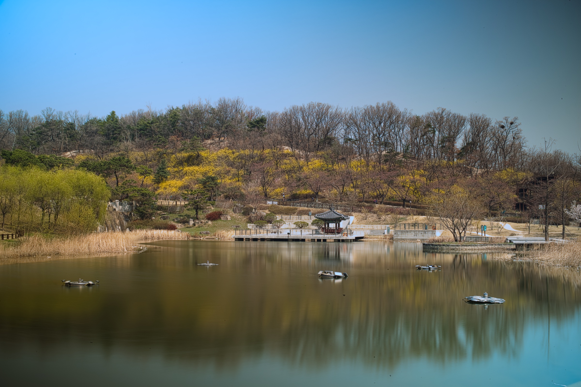 여기에 겐코 PRO1D+ NDX3-450+C-PL 필터를 사용해 동일한 환경에서 셔터 속도를 4초까지 늘렸습니다. 물 표면이 매끈하게 표현되고 반영 역시 선명해져서 전체적인 이미지가 좀 더 보기 좋아졌습니다.