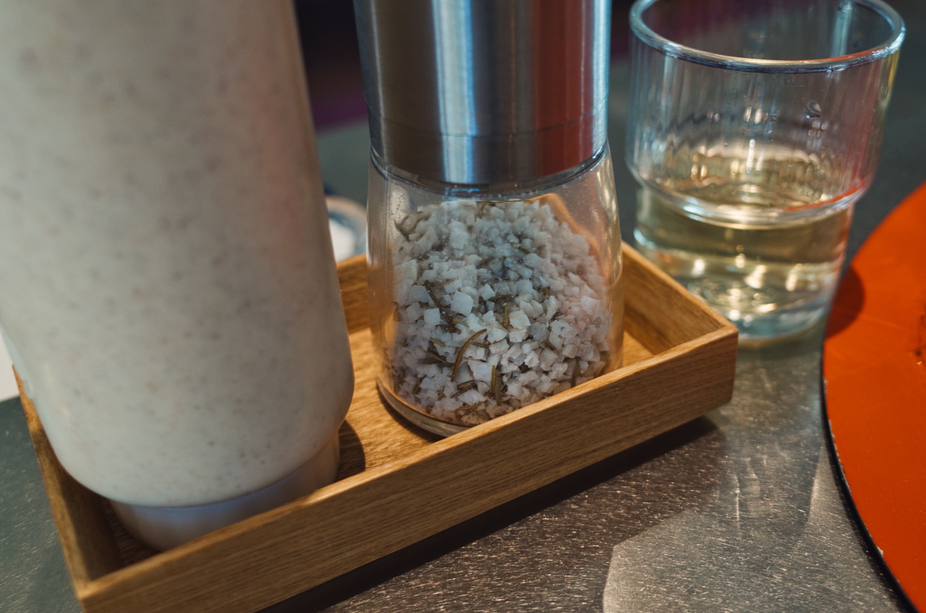 자리마다 샐러드 드레싱과 소금이 비치돼 있습니다. 먹어보니 이곳 돈카츠는 소금하고 가장 잘 어울려요. 다만 고추냉이가 없는 것이 아쉬웠습니다. 제가 고기랑 고추냉이 먹는 걸을 너무 좋아해서요.