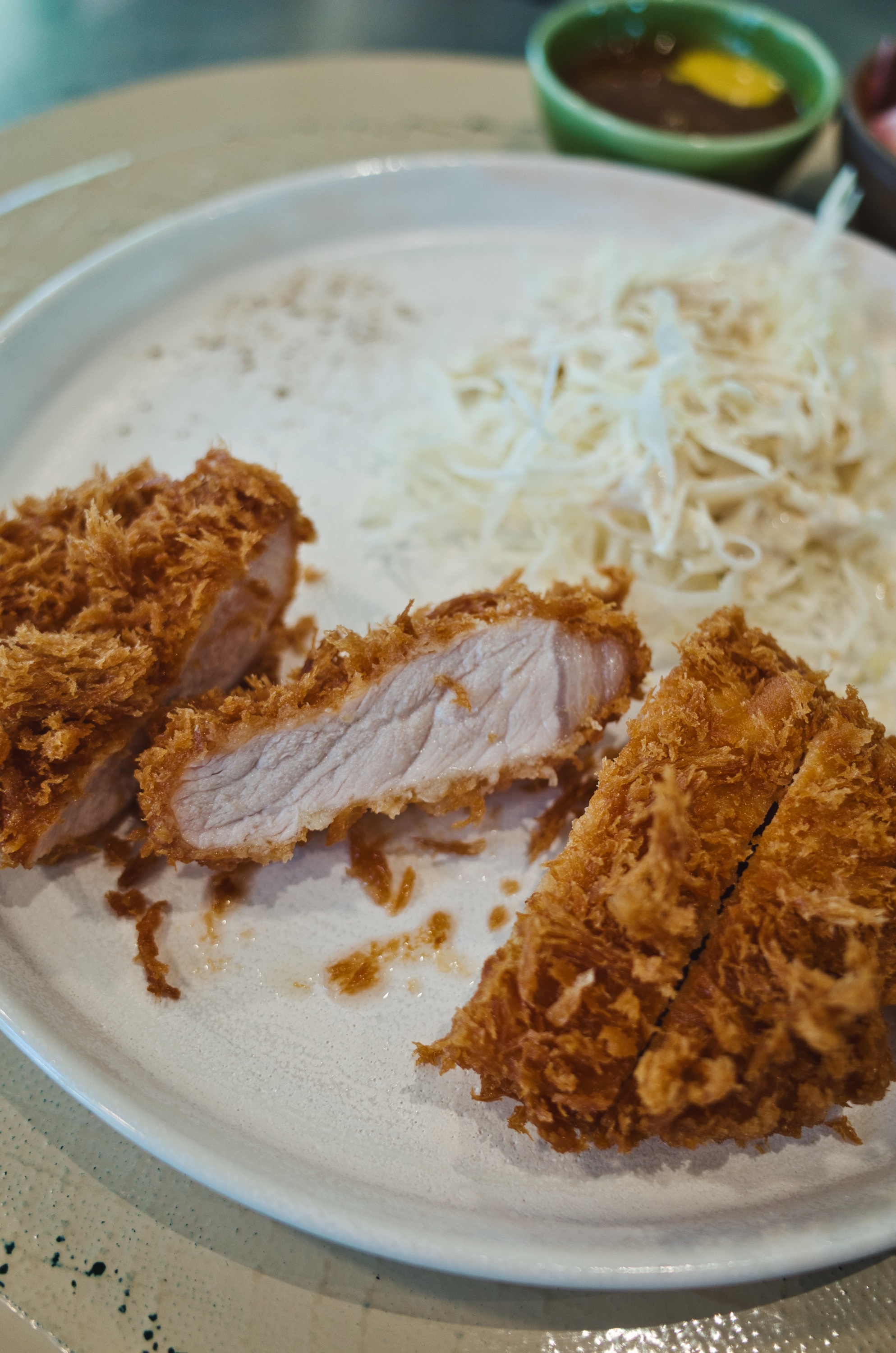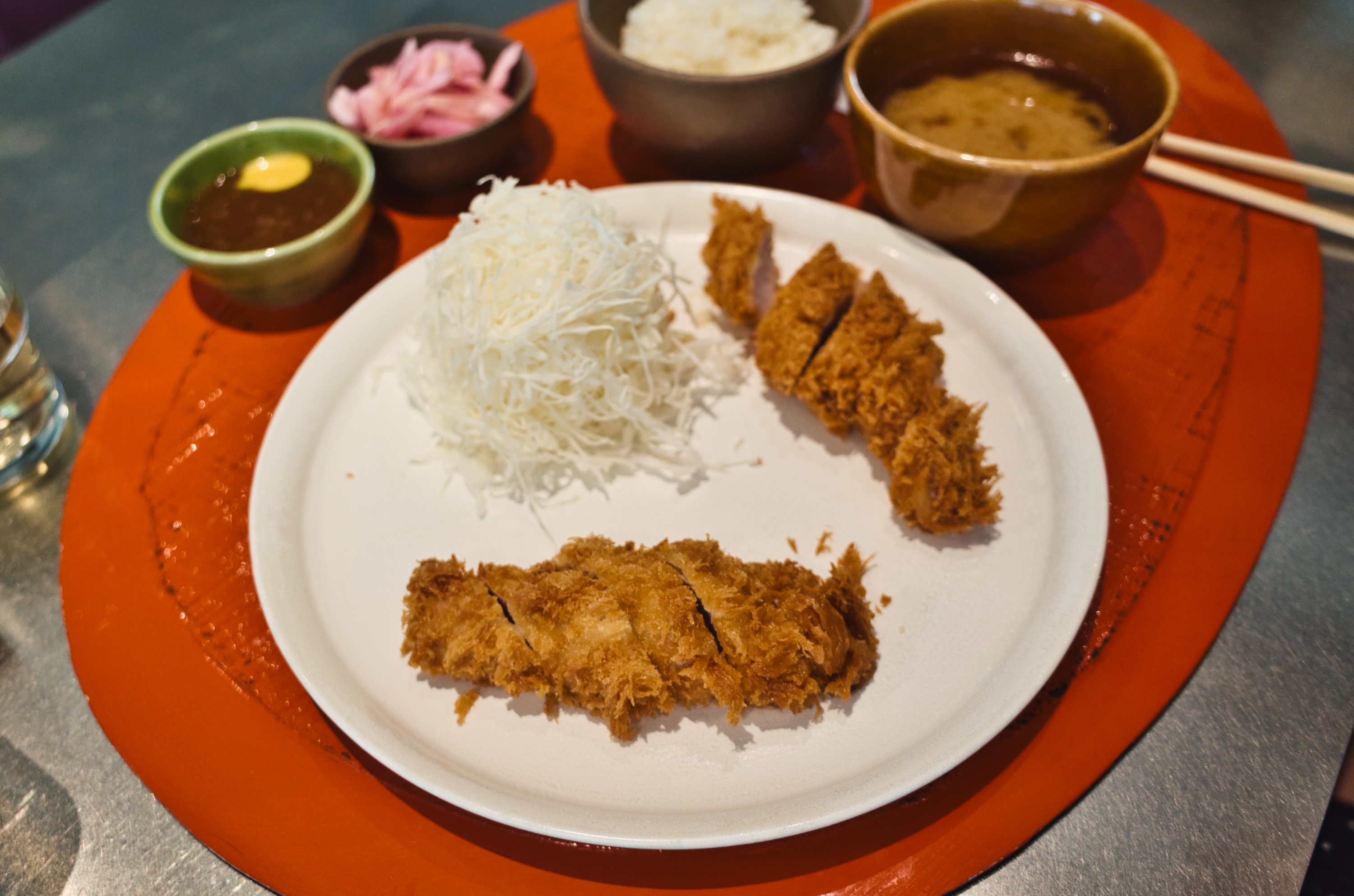 이건 일행이 주문한 안심. 두 덩이가 나오고 역시 고기 익힘 정도가 제게는 조금 아쉬웠습니다. 전반적인 소감은 고기 품질이 매우 좋지만 그 맛을 최상급으로 이끌어내기엔 공장형으로 튀기는 시스템 때문에 한계가 있는 느낌이랄까요. 이전에 다녀 온 맛있는 돈카츠들이 생각나 이 집에 대한 극찬들에 고개가 갸웃거려졌습니다. 물론 맛은 있습니다만 가격 대비로는 아쉬움이 있습니다.