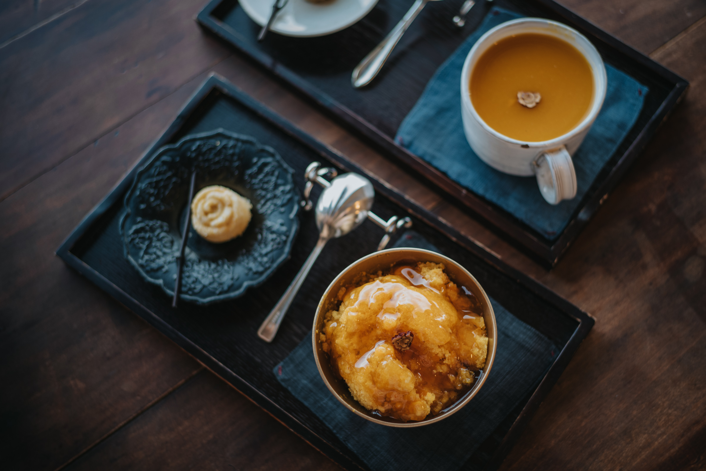 볕이 잘 드는 오후의 전통 찻집을 한 바퀴 둘러본 뒤 메뉴를 주문했습니다. 인기 메뉴인 단호박 빙수와 식혜를 주문했습니다. 다과상과 전통차가 포함된 세트도 있는데, 이 두 메뉴가 맘에 들어서 둘만 주문했어요. 가격은 각 만원입니다.