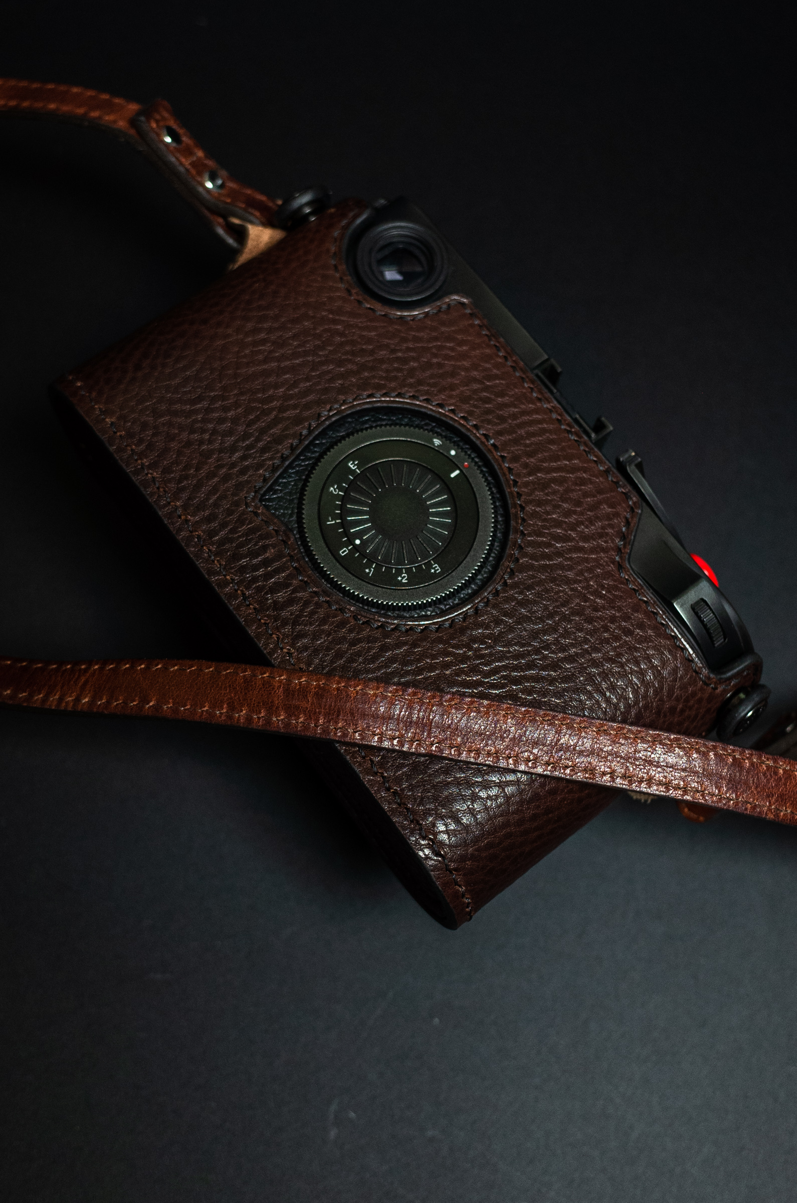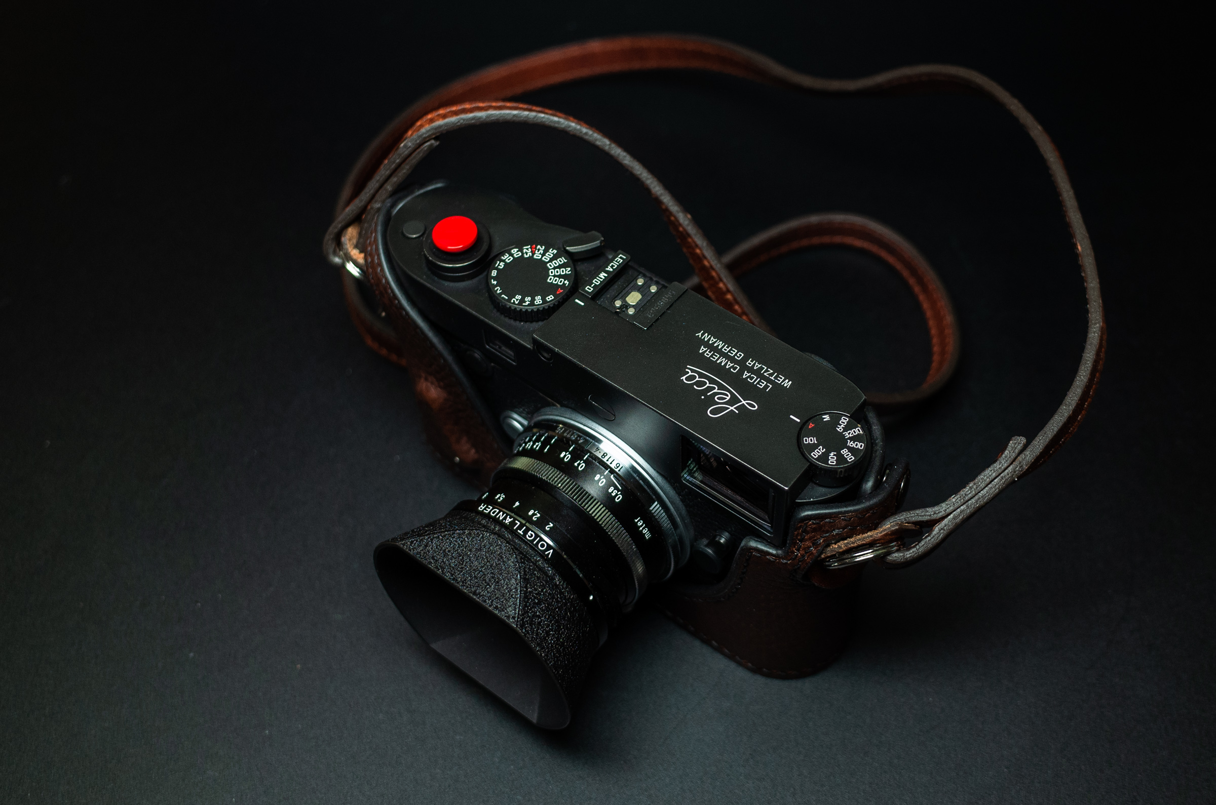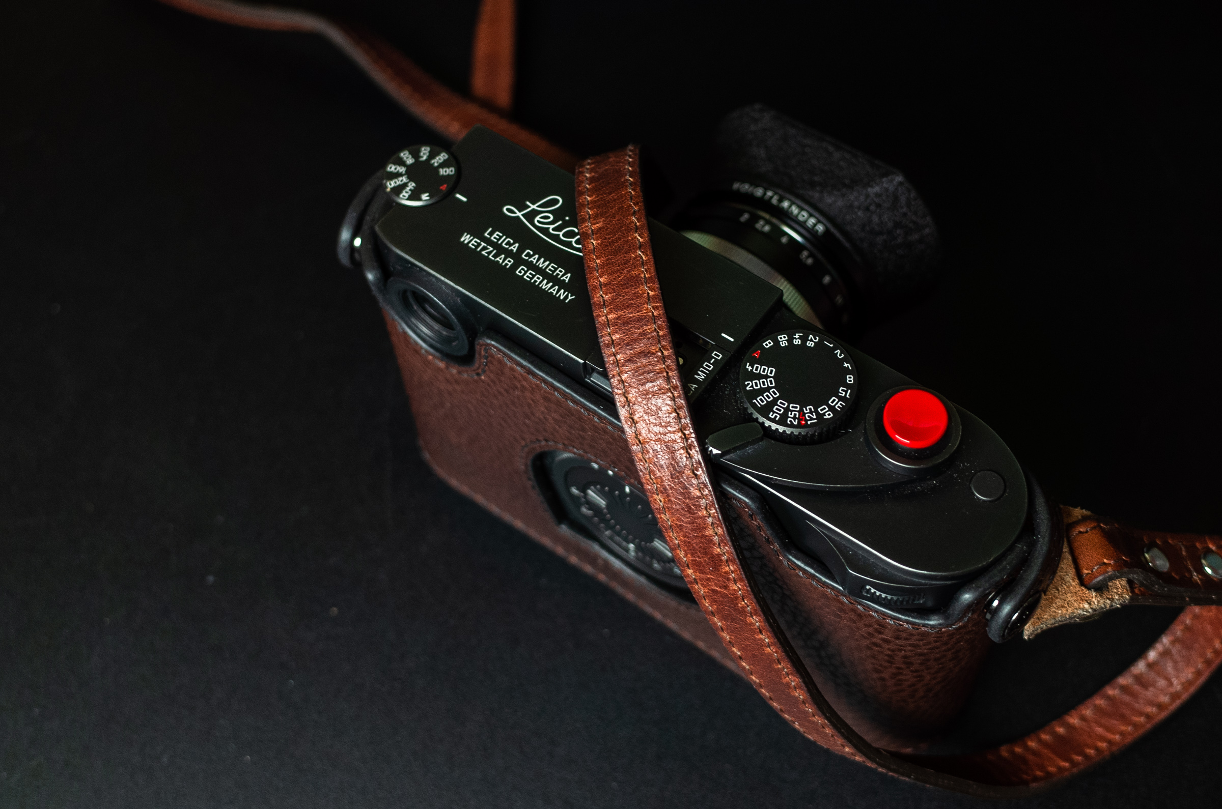 카메라와 결합한 이미지. 블랙과 브라운 조합은 늘 잘 어울리죠. 실버 모델이면 아마 더 잘 어울릴 것 같지만 M10-D는 블랙 크롬 모델만 출시됐죠.