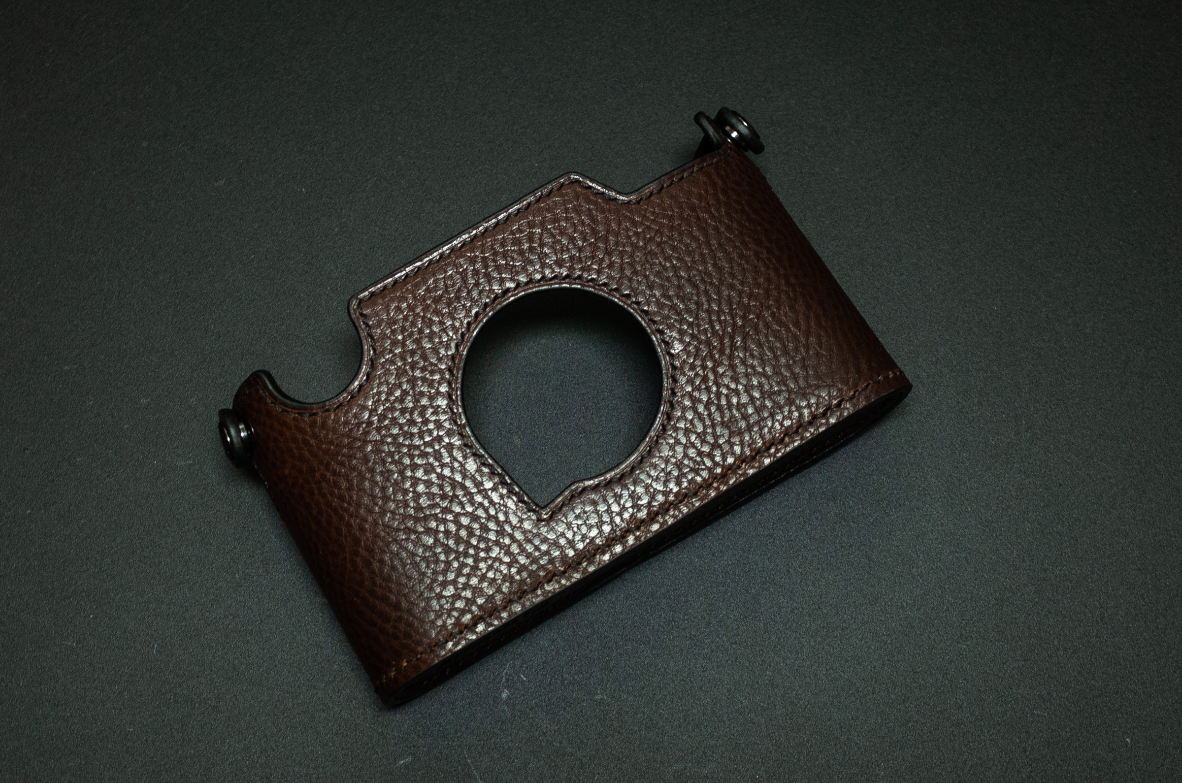 브라운 케이스의 색은 다크 브라운에 가까운 색으로 소가죽의 표면 질감이 강조돼있습니다. 뒷면의 상당 부분을 가리고 있어서 모양새가 필름 카메라에 좀 더 가까워지네요. 사실 아마존에서도 M10-D 케이스를 찾아보기 힘들어서 선택의 여지가 없었습니다. 다행히 가격과 디자인 컬러 모두 나쁘지 않은 편이라 구매했어요.