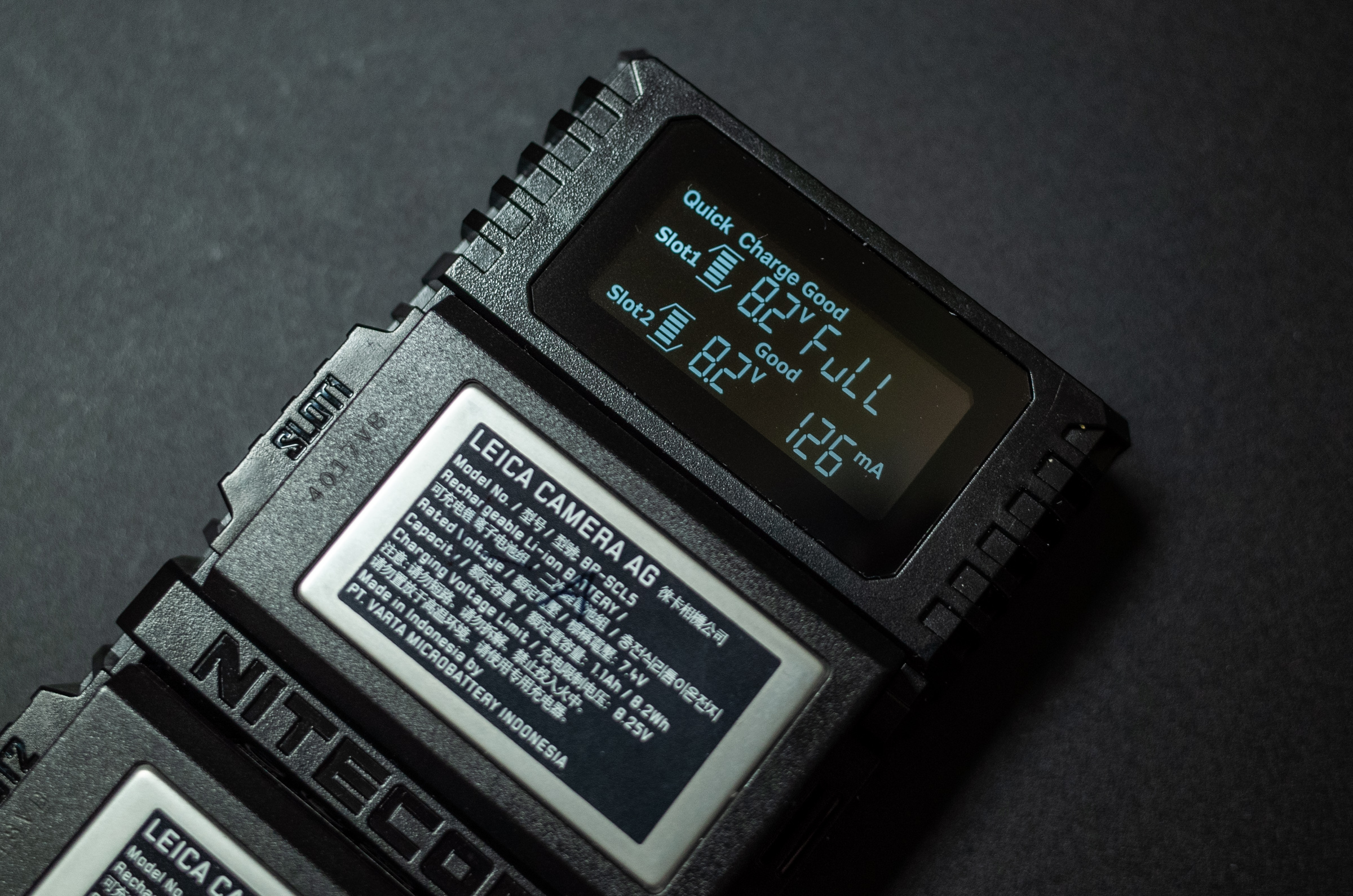 NITECORE ULM10 Pro USB Charger charges Leica BP-SCL5 batteries with QC support and digital charging status display. only 4 oz, great for daily use or travel.