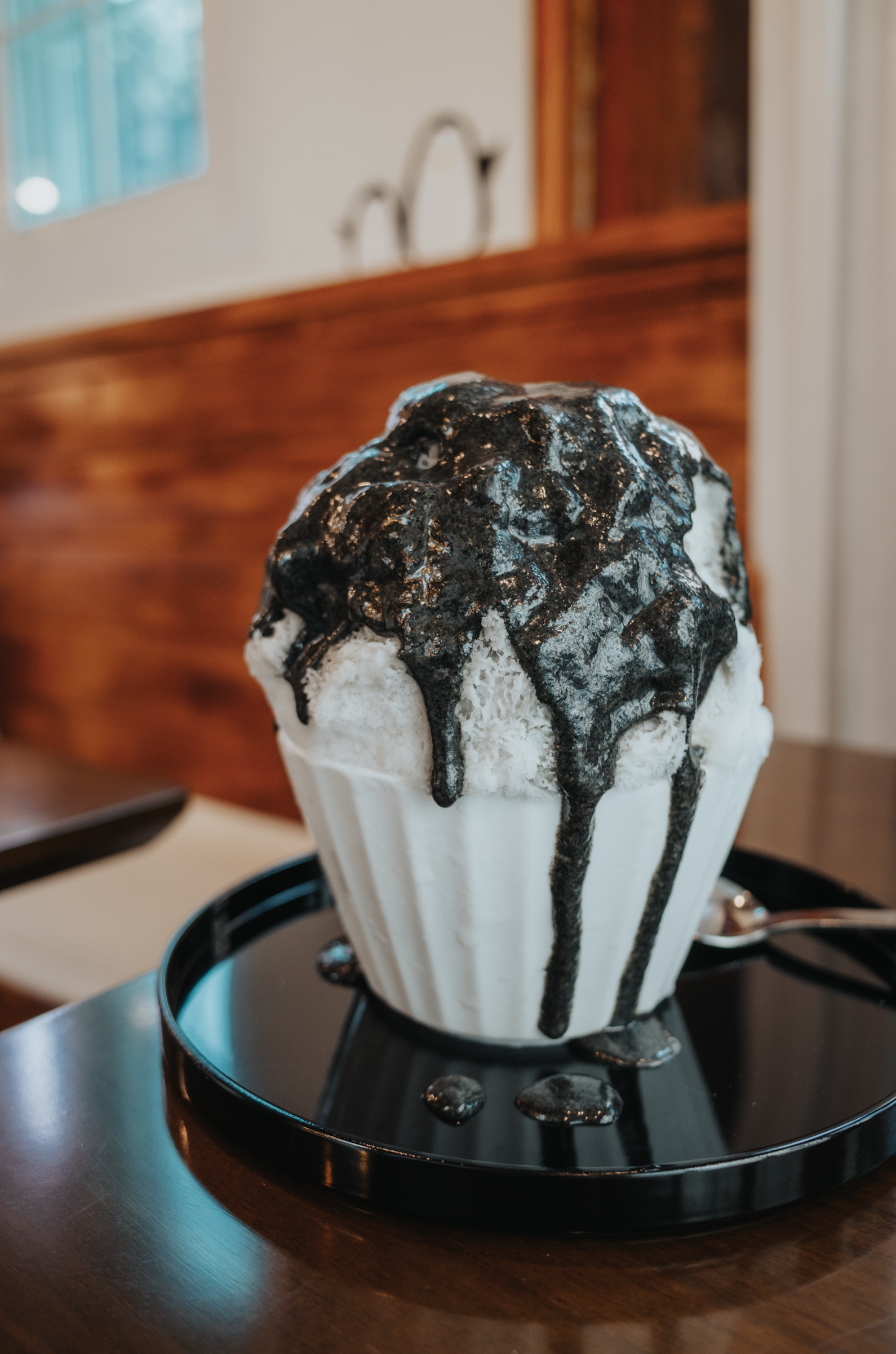 주문한 메뉴 흑임자 빙수(2인)입니다. 빙수 좋아하시는 분들에게는 1인분과 2인분 사이 정도 되는 양입니다.