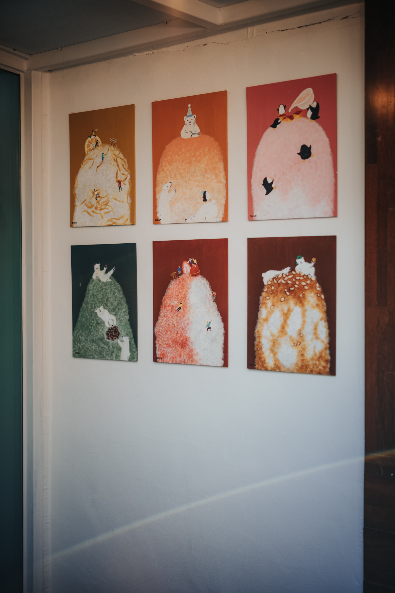 매장 내부 곳곳에는 빙수를 테마로 한 그림들이 걸려 있습니다. 동화 속 장면처럼 예쁜 그림들도 있어서 보는 즐거움이 있습니다.