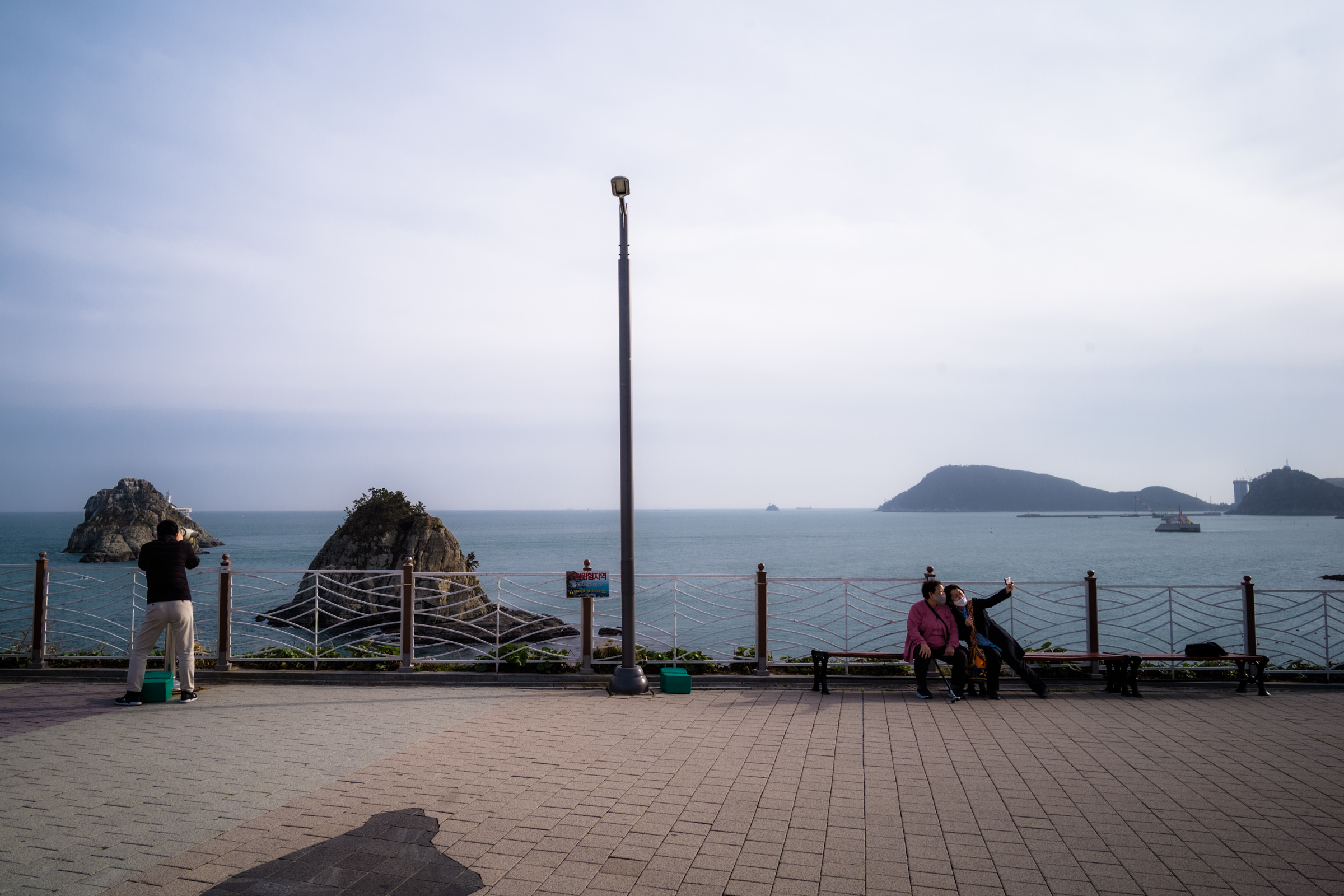 여기선 오륙도를 눈높이에서 볼 수 있습니다. 앞쪽에 있는 방패섬과 솔섬이 커서 뒤에 있는 섬까지는 보이지 않지만 전망대보다 가까이에서 바다를 보고 느낄 수 있는 것이 매력입니다.
