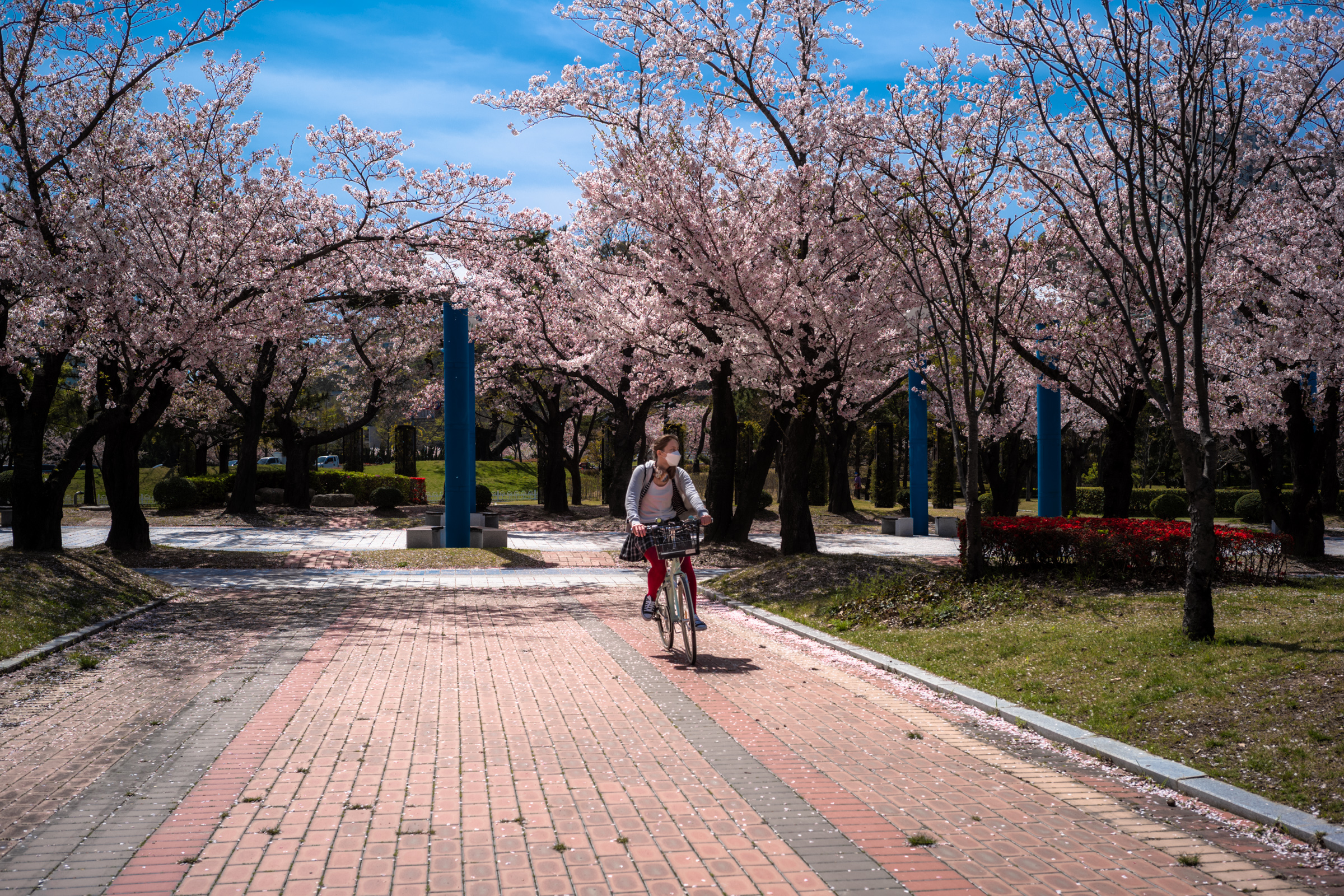 강을 넘어가기 전, APEC나루공원에서 담은 풍경 중 하나. 짧지만 봄꽃으로 가득한 길을 자전거 타고 지나는 모습이 낭만적이었습니다.