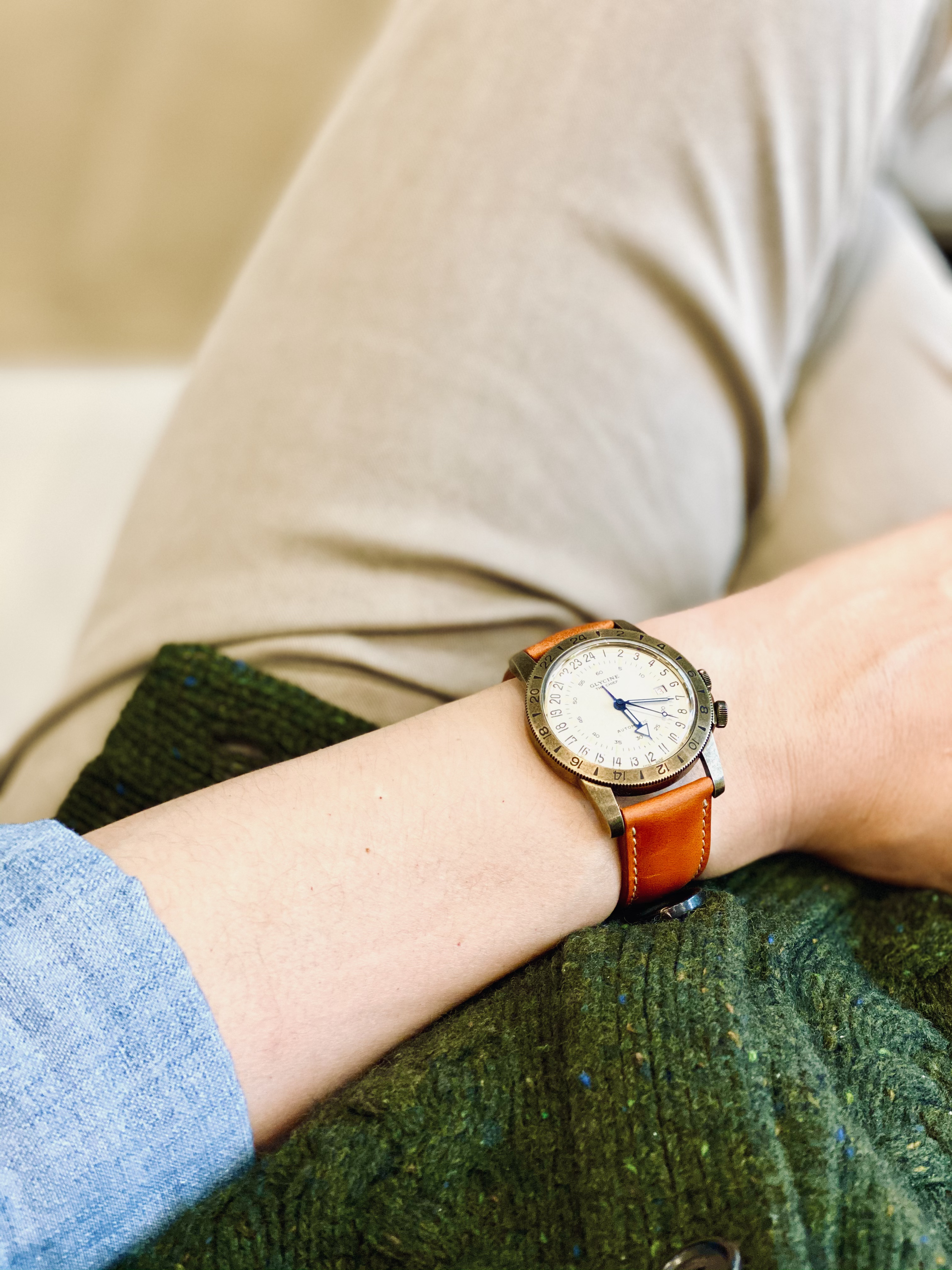 오리지널 모델의 디자인을 따 온 볼록한 돔 형 사파이어 크리스탈 글라스와 황동 소재의 베젤, 그린 컬러의 다이얼이 저를 사로잡은 이 시계의 매력입니다. 가격은 정가 기준 200만원대로 다소 높은 편입니다. 그래서 해밀턴 시계처럼 적극 추천은 하지 않습니다. 이 가격대에 구매할 수 있는 좋은 시계들이 많으니까요. 다만 제 취향에는 이 시계의 컬러와 디자인, 글라스 형태 등이 꼭 맞아서 요즘 가장 많이 착용하고 있습니다. 아쉬운 점이라면 38시간밖에 안 되는 파워 리저브입니다.