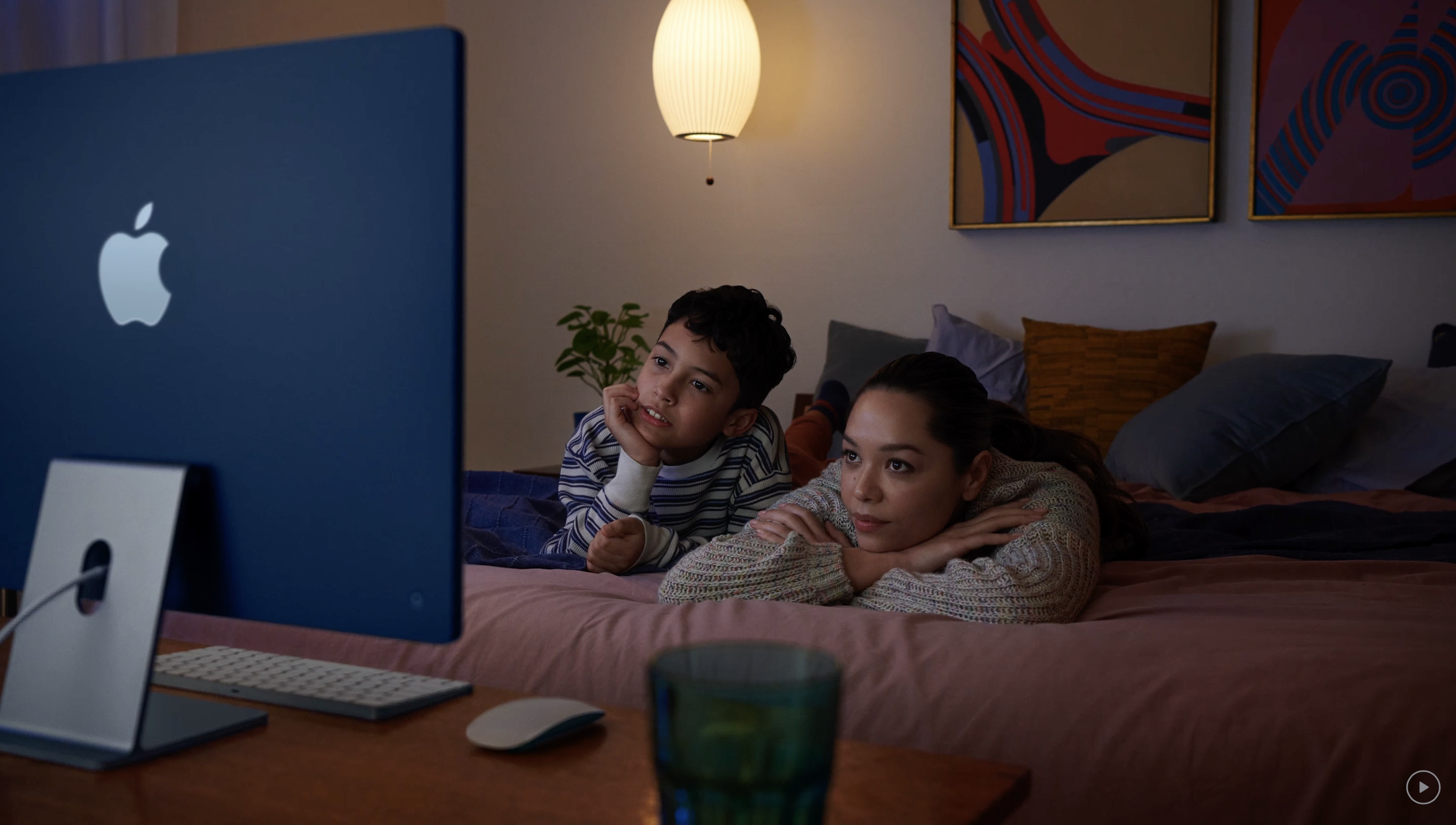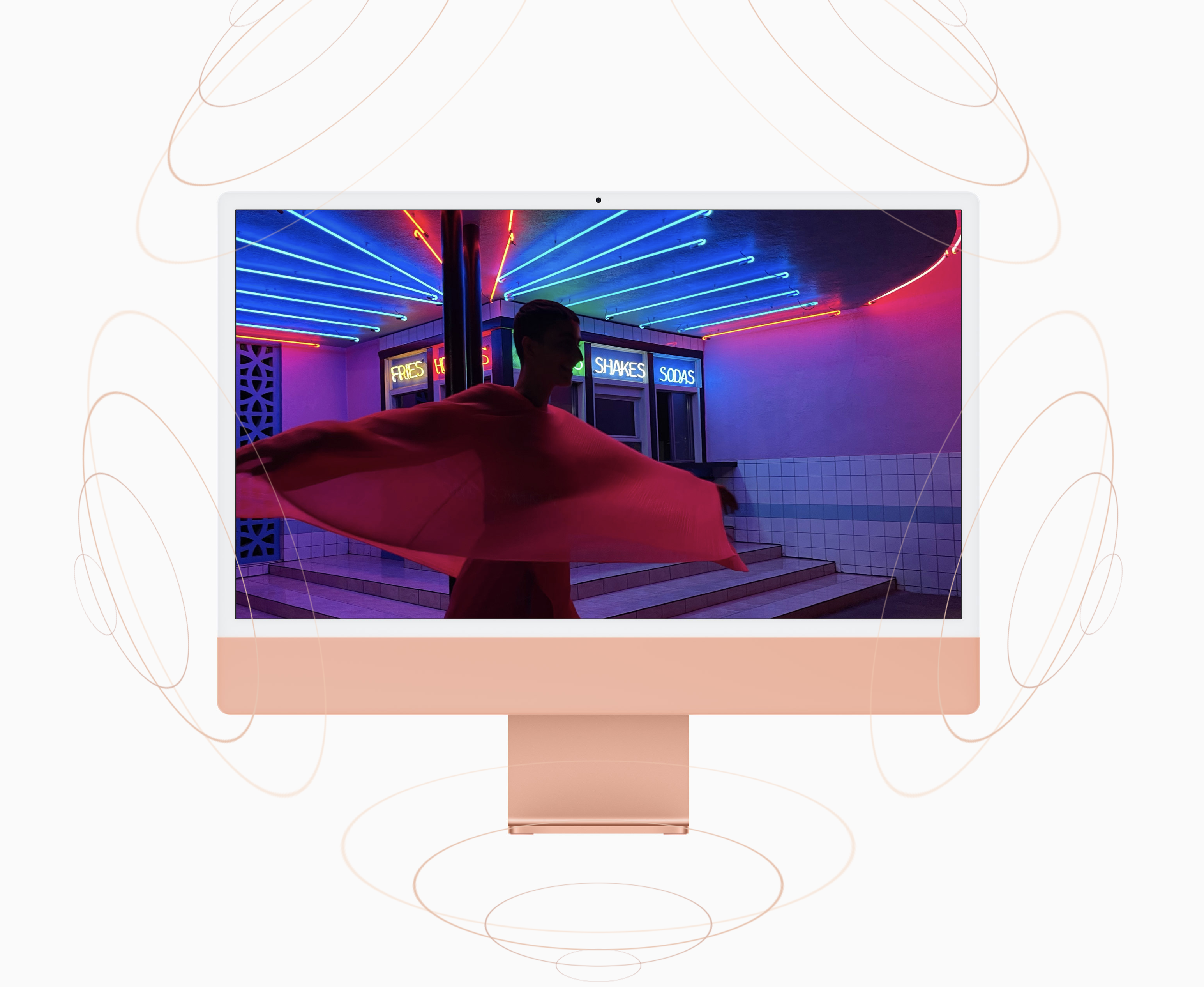 새로운 iMac. 화사한 7가지 컬러. 믿을 수 없을 만큼 얇은 디자인. 24형 4.5K Retina 디스플레이. Mac 사상 가장 뛰어난 카메라, 마이크, 스피커. 막강한 성능의 M1 탑재.