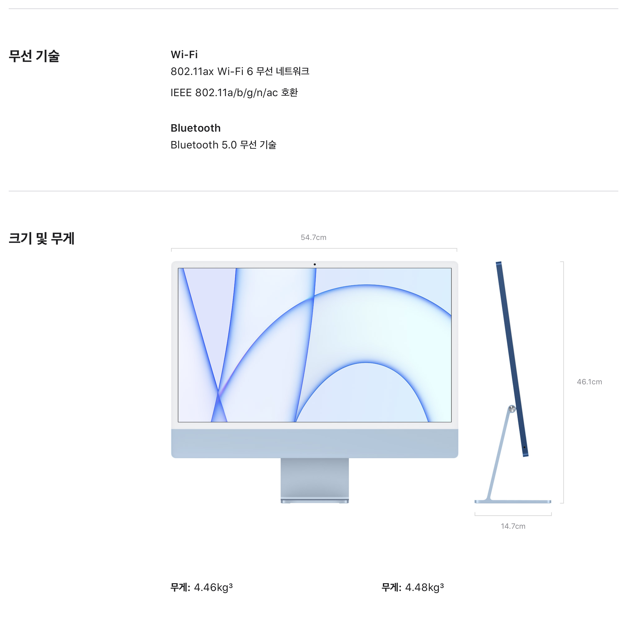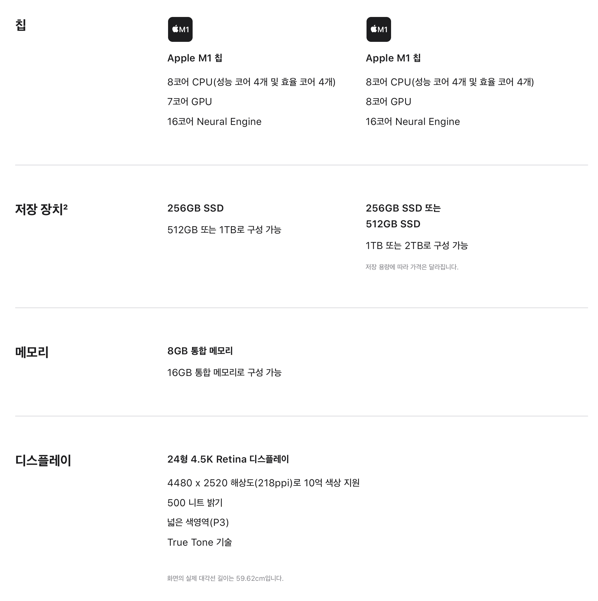 아래는 새로운 iMac 24의 사양입니다.