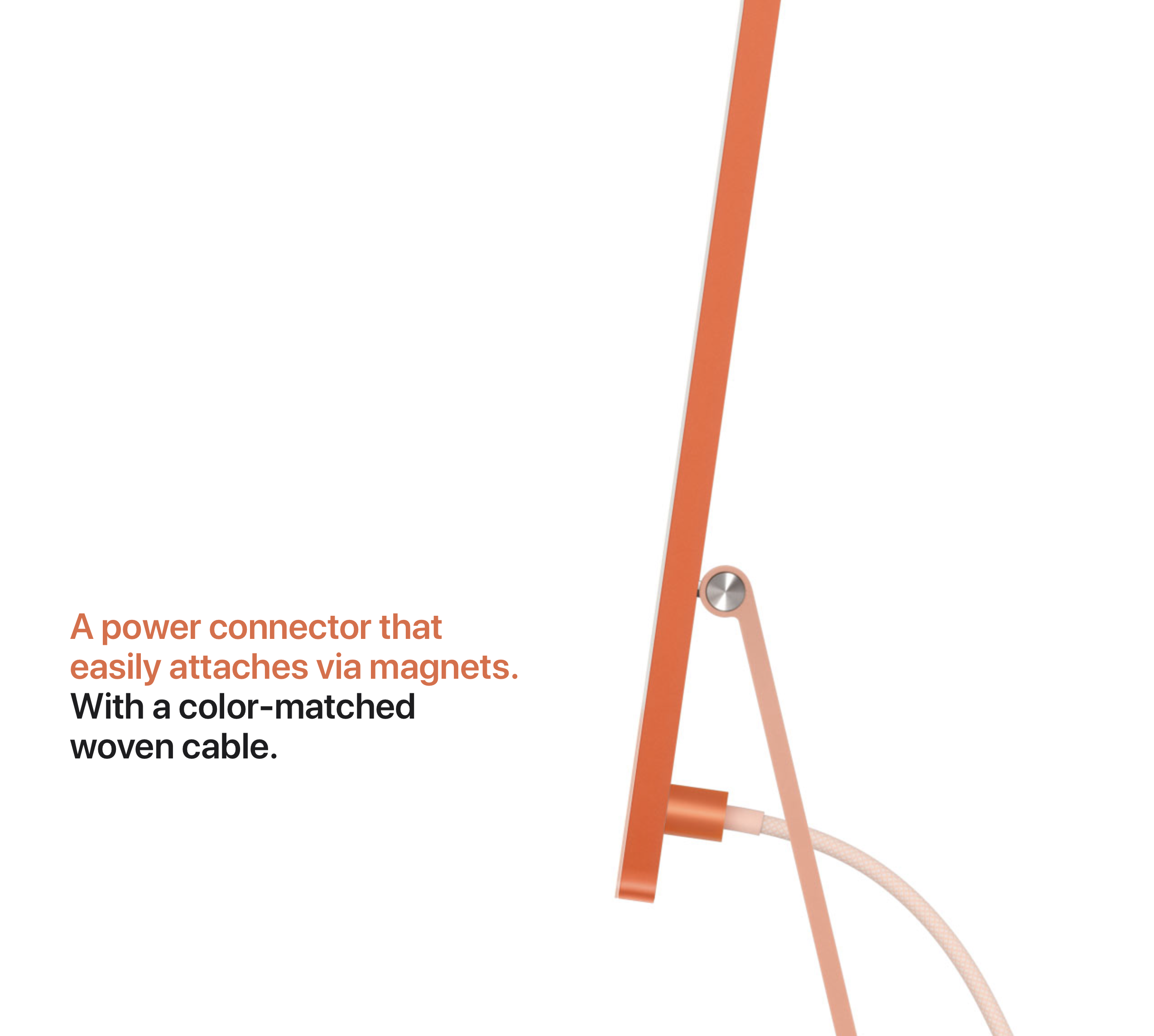 전원 케이블은 자석 형태로 본체와 결합된다고 합니다. 기존 전원 케이블 역시 본체와의 조화가 괜찮았지만 이번 버전이 좀 더 깔끔하고 보기 좋아 보입니다. 사실 아이맥이 앞에서 볼 땐 깔끔해도 뒤에서 보면 난장판인 경우가 많거든요.