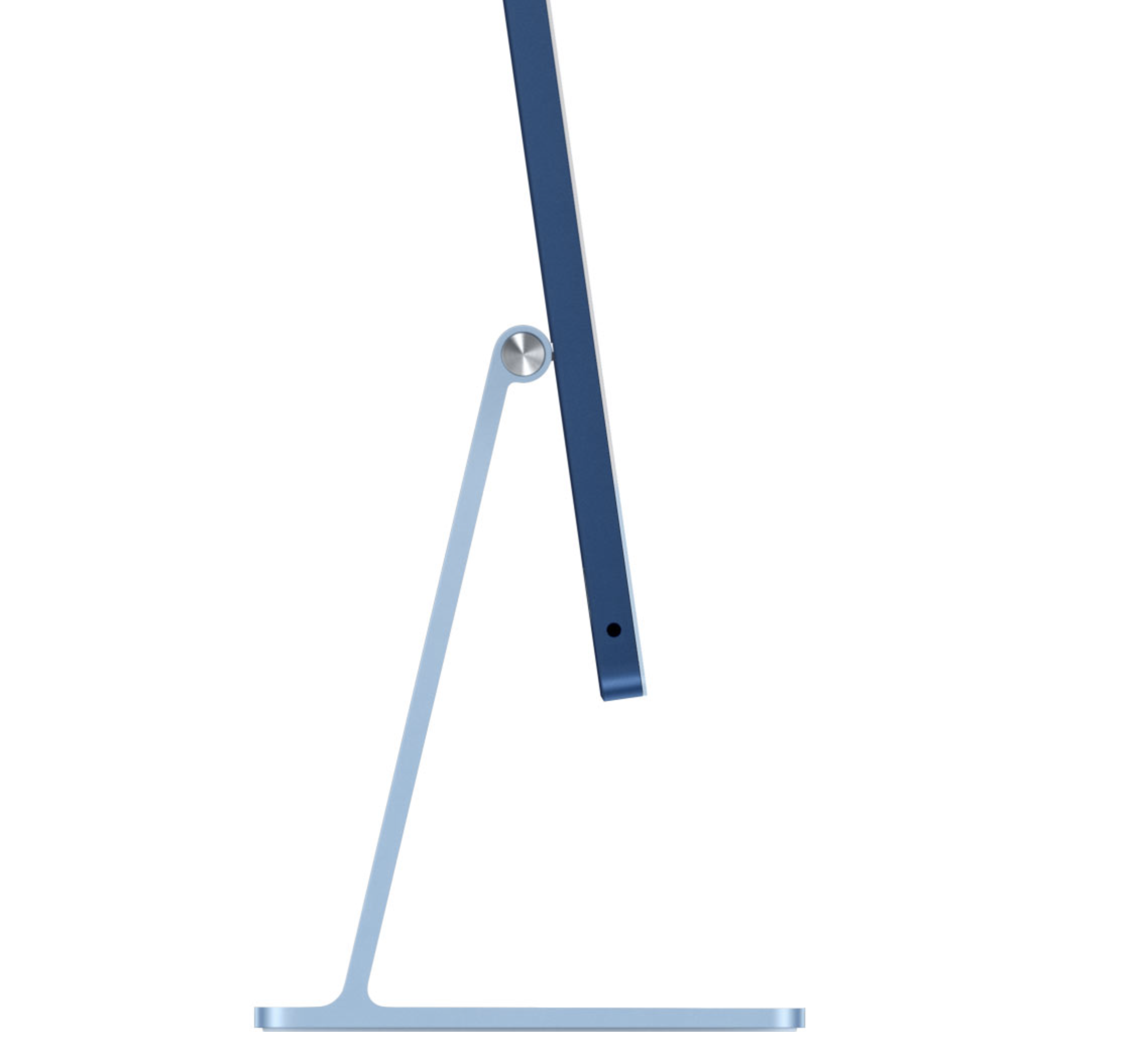 통합 칩인 M1칩 탑재로 로직 보드의 크기가 작아지고 저전력 코어의 성능에 맞춰 쿨링 시스템까지 간소화할 수 있게 되면서 본체의 두께를 드라마틱하게 줄일 수 있게 됐습니다. 본체 두께가 11.5mm로 아이폰 12의 두께인 7.4mm의 두 배가 채 되지 않습니다. 커다란 아이패드를 스탠드에 결합한 것 같다고 생각할 만 하죠. 기존 아이맥이 모서리쪽으로 갈 수록 두께가 얇아지는 디자인으로 시각적으로 얇아보이게 했다면 이번 아이맥은 마치 아이패드의 크기를 키운 것처럼 돌출 없이 평평한 디자인이 됐습니다.