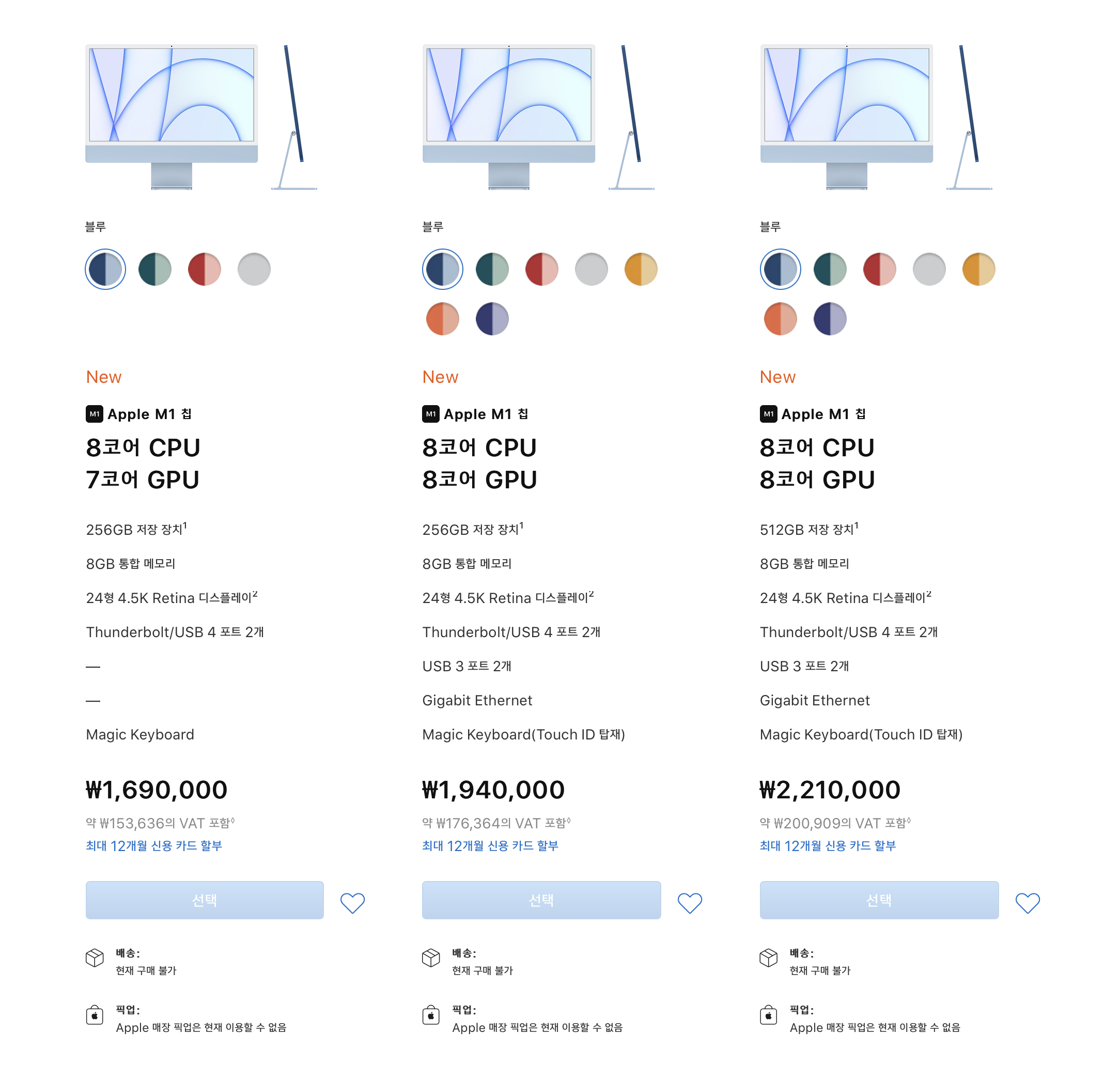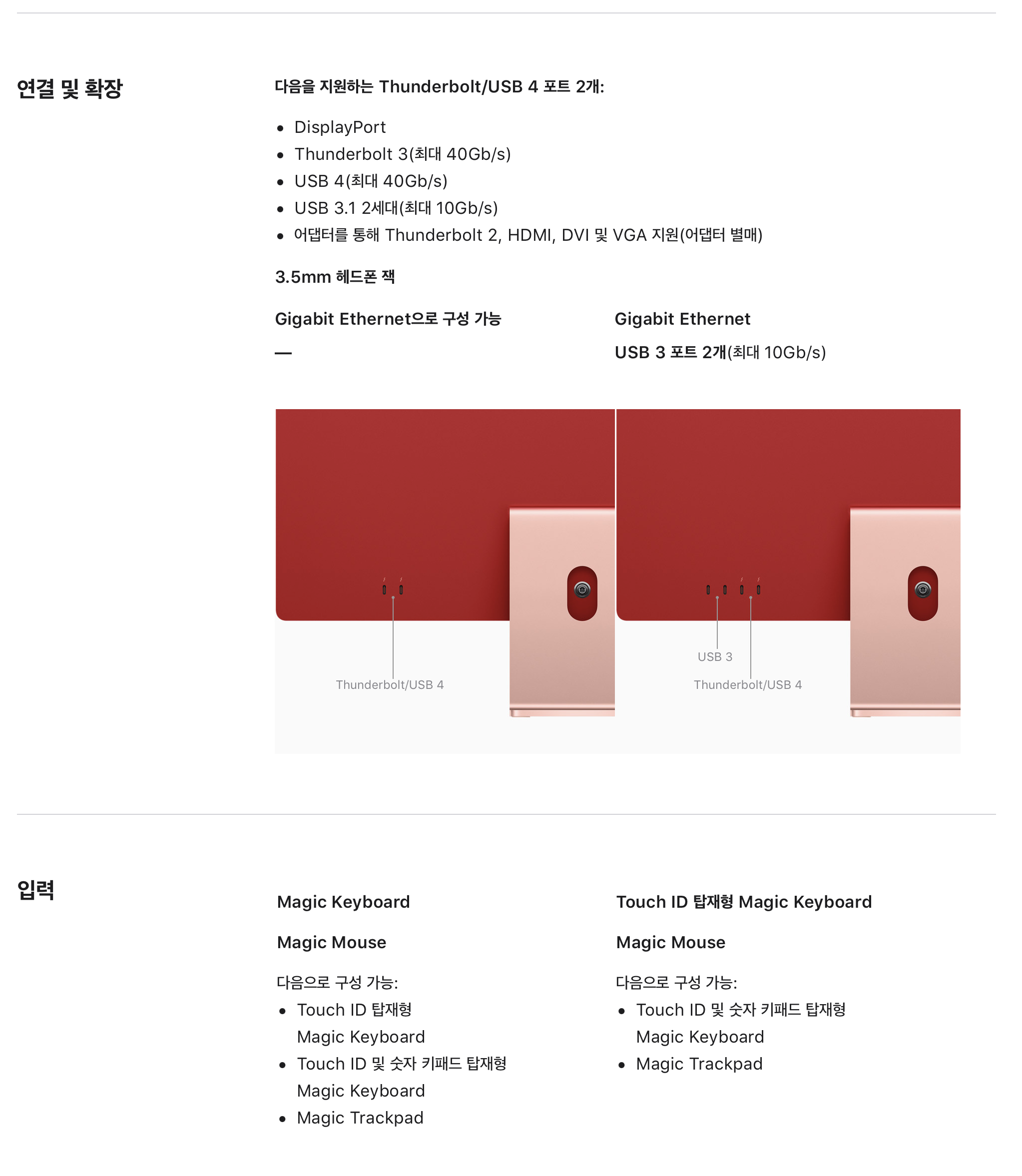 아래는 새로운 iMac 24의 사양입니다.