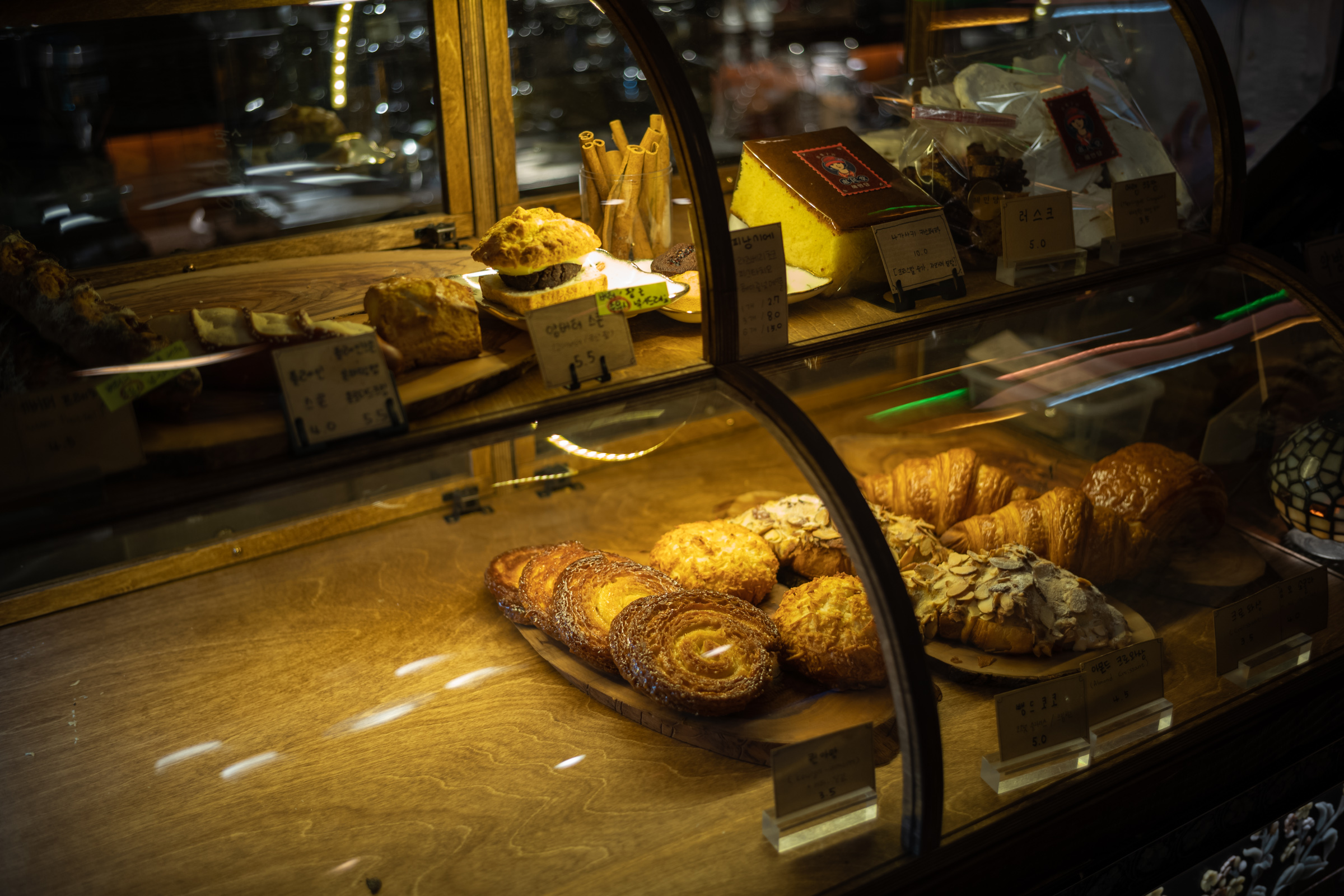 바깥 풍경과 달리 안쪽은 노란 조명 때문에 몽환적인 느낌이 나요. 대낮에 가도 어둑어둑한 기분일 것 같습니다.