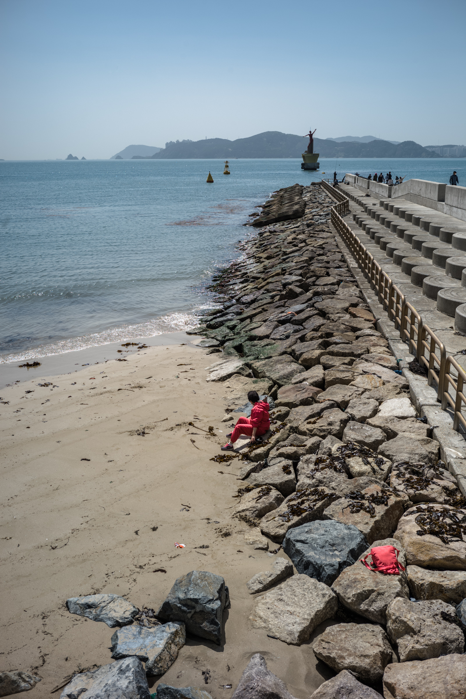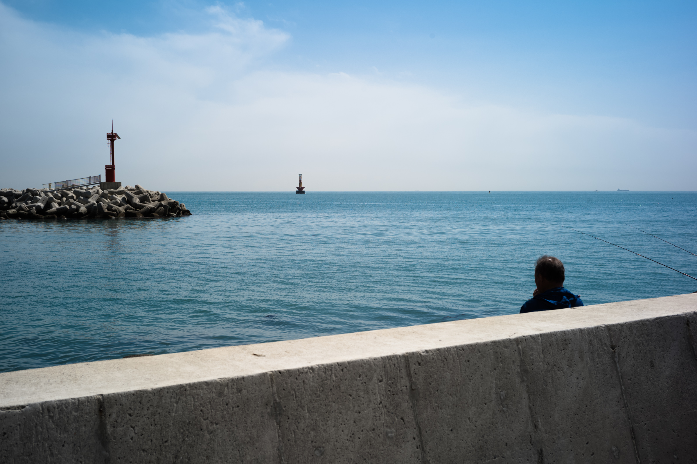 방파제로 이어지는 콘크리트 보도에 주저 앉아 여유를 즐기는 사람들의 모습이 근사했습니다.