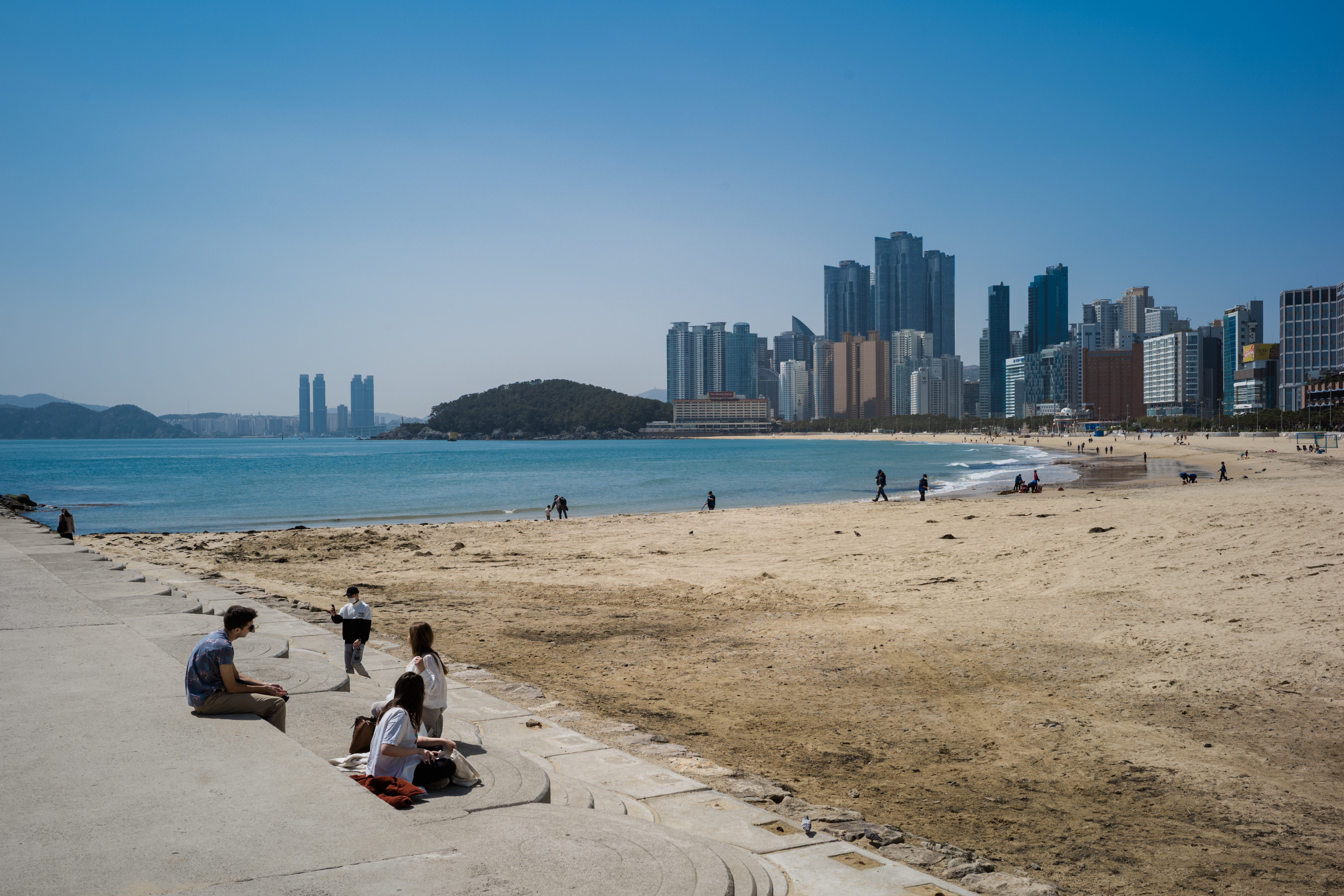 11년만의 황사 경보가 내려진 날, 부산 해운대 바닷가 풍경 (2021.3.29)