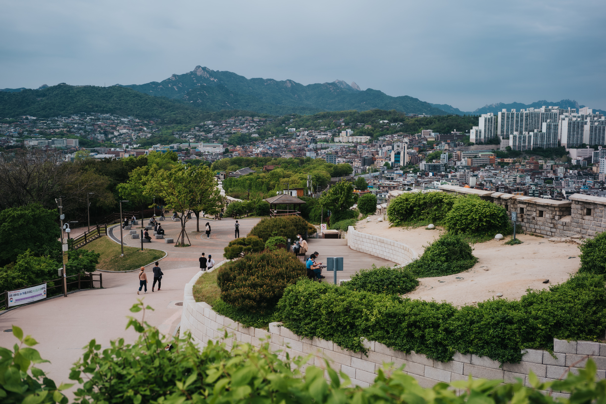 낙산 공원의 가장 높은 지점에서 내려다 본 풍경은 조금 다릅니다. 공원의 녹지가 더해져서 한결 포근하게 느껴진달까.