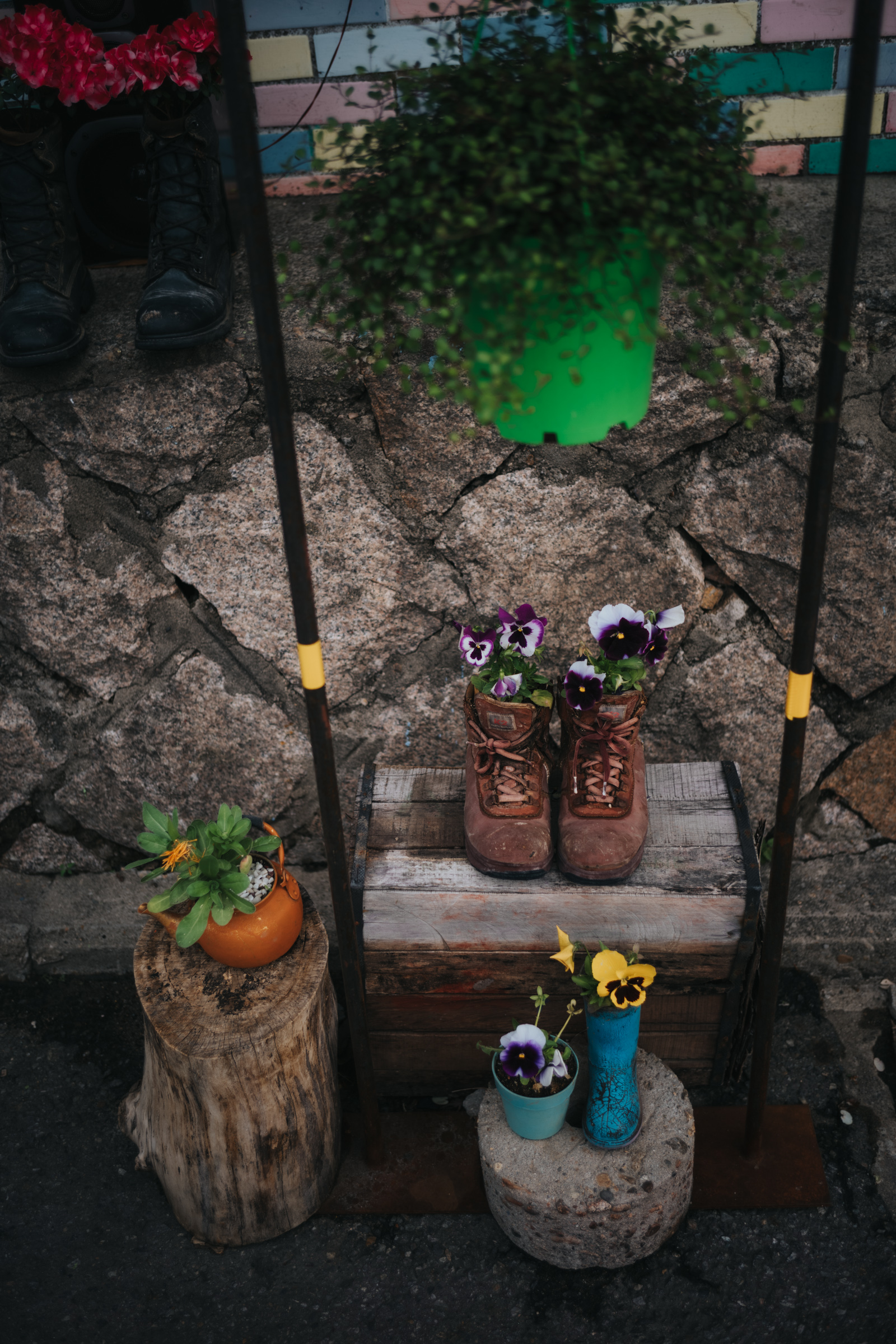 전망 좋은 곳에 자리잡은 상점 앞을 지나다 화분이 된 구두와 신발, 등산화를 화분이 예뻐서 사진을 찍었습니다.