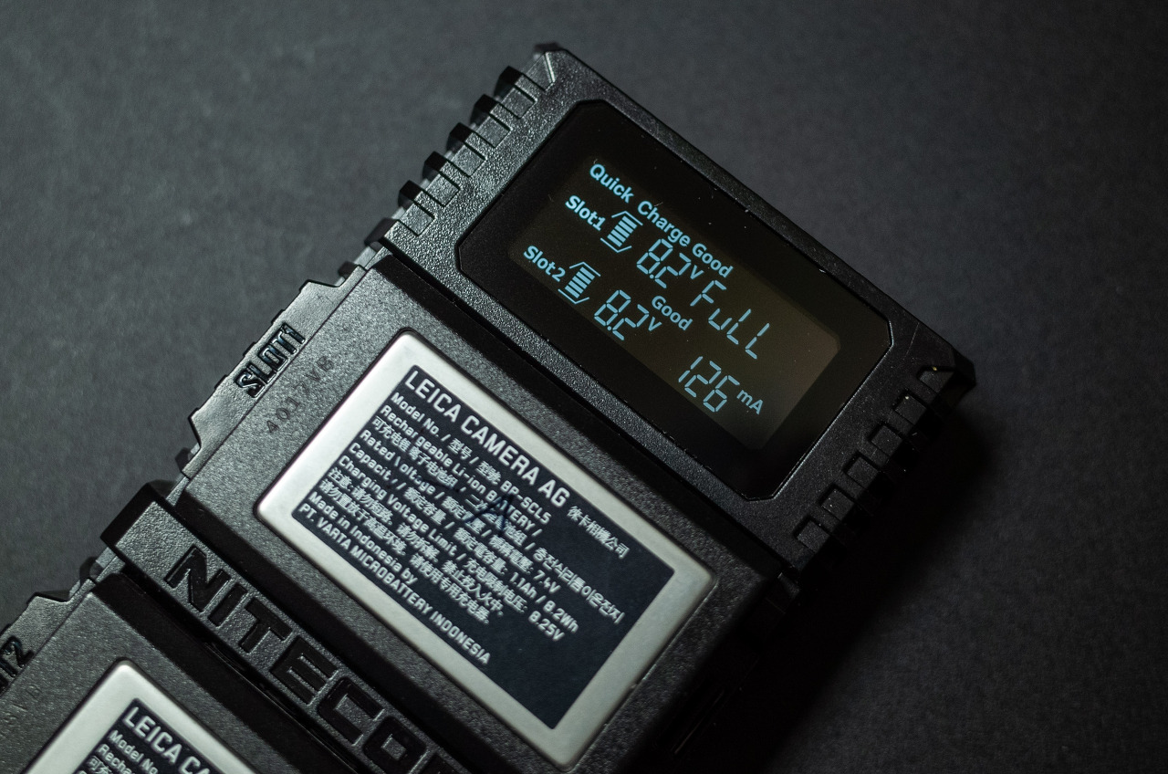 다만 나이트코어 충전기는 가격 대비 매우 좋은 아이템입니다. 정품 충전기의 약 1/4 가격에 구매할 수 있으면서 2구 동시 충전과 USB 전원 공급, 정보표시 디스플레이 등 성능이 매우 좋습니다. 라이카 카메라뿐 아니라 캐논, 소니, 후지필름 등 다양한 브랜드의 배터리와 호환되는 제품들을 판매하고 있으니 한 번 검색해 보세요.