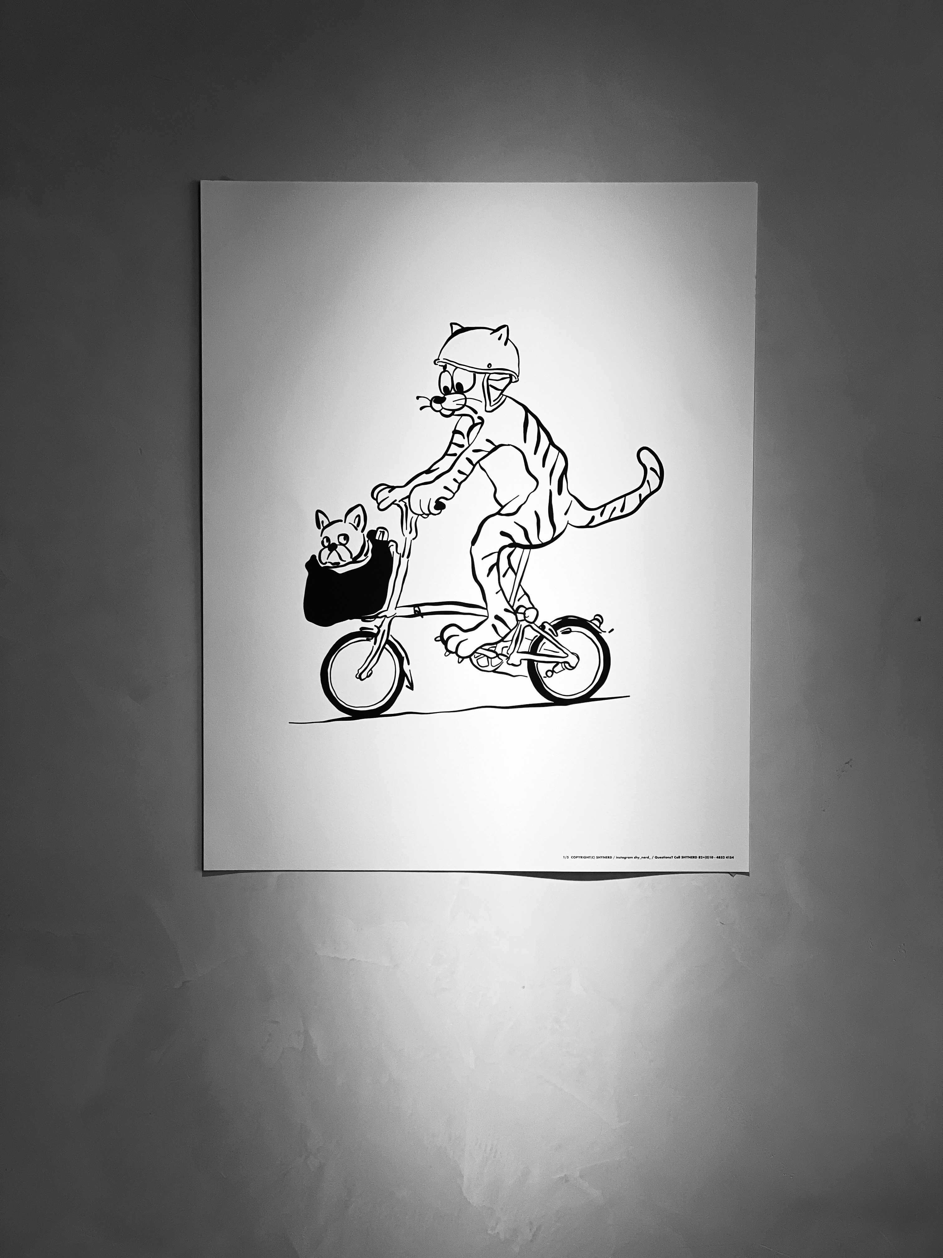 벽에 걸린 귀여운 브롬톤 관련 그림들. 초창기엔 카페도 함께 운영했던 곳 같은데 지금은 아닌 것 같습니다. 그림이 귀여워서 카피 한 장 얻어가고 싶더라고요.