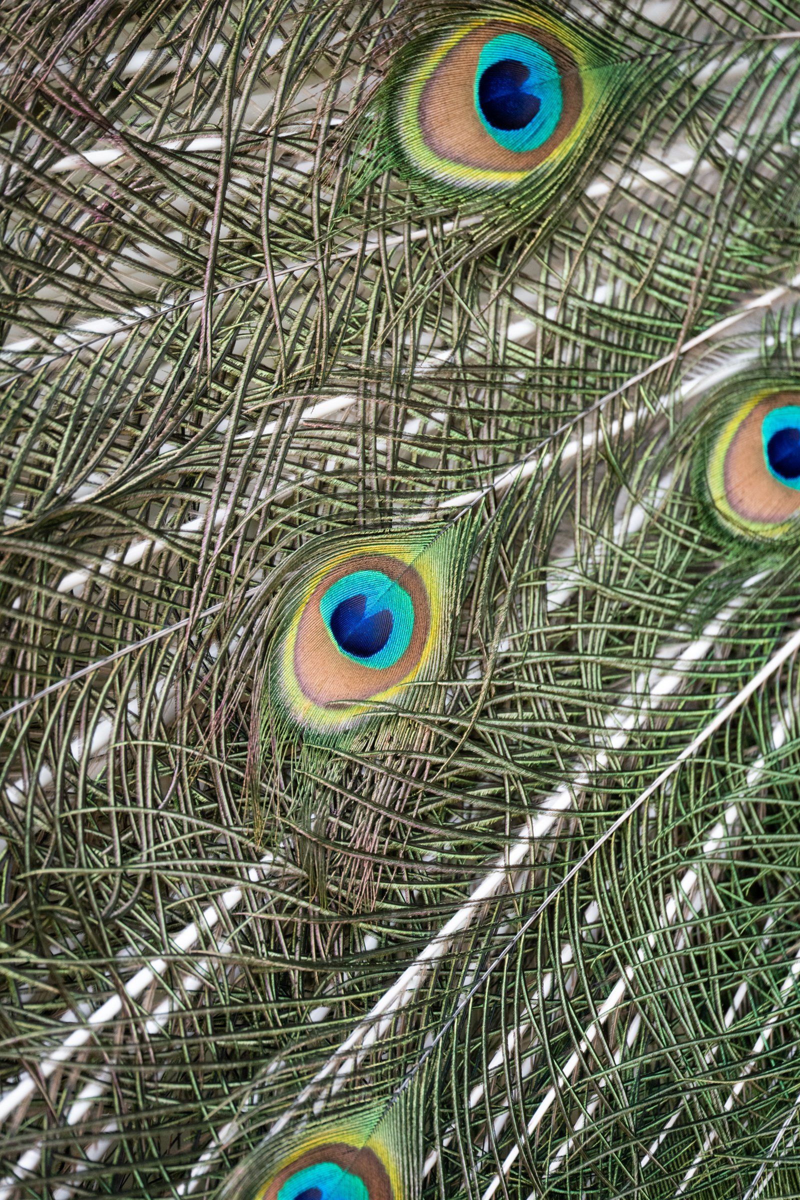 그동안 자세히 보지 않아서 몰랐던 공작의 머리에 난 짧은 털들, 활짝 펼친 날개 속 신비한 깃털 모양들도 근접 촬영 사진들을 통해 제대로 감상할 수 있었어요. 공작 깃털은 꼭 침엽수의 잎을 보는 것 같습니다. 그리고 중간중간 있는 부채 모양의 깃털들은 정말 아름답고 섬세하네요. 자연물을 가까이 보면 그 치밀함에 감탄하게 된다더니, 그래서 매크로 촬영에 빠지게 되는 것 같습니다. 이 렌즈의 간이 매크로만으로도 맛보기에는 충분한 것 같아요.