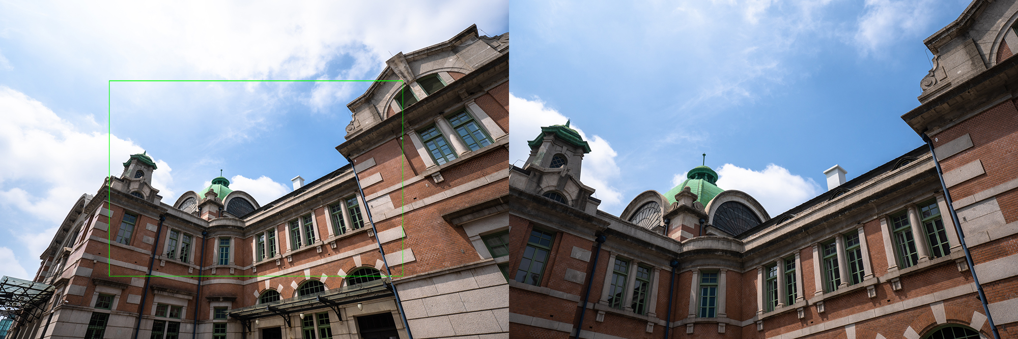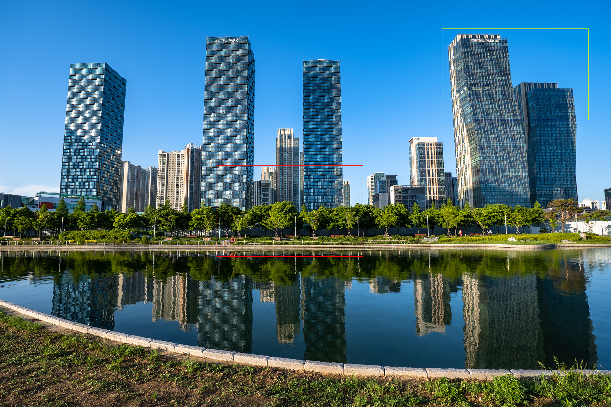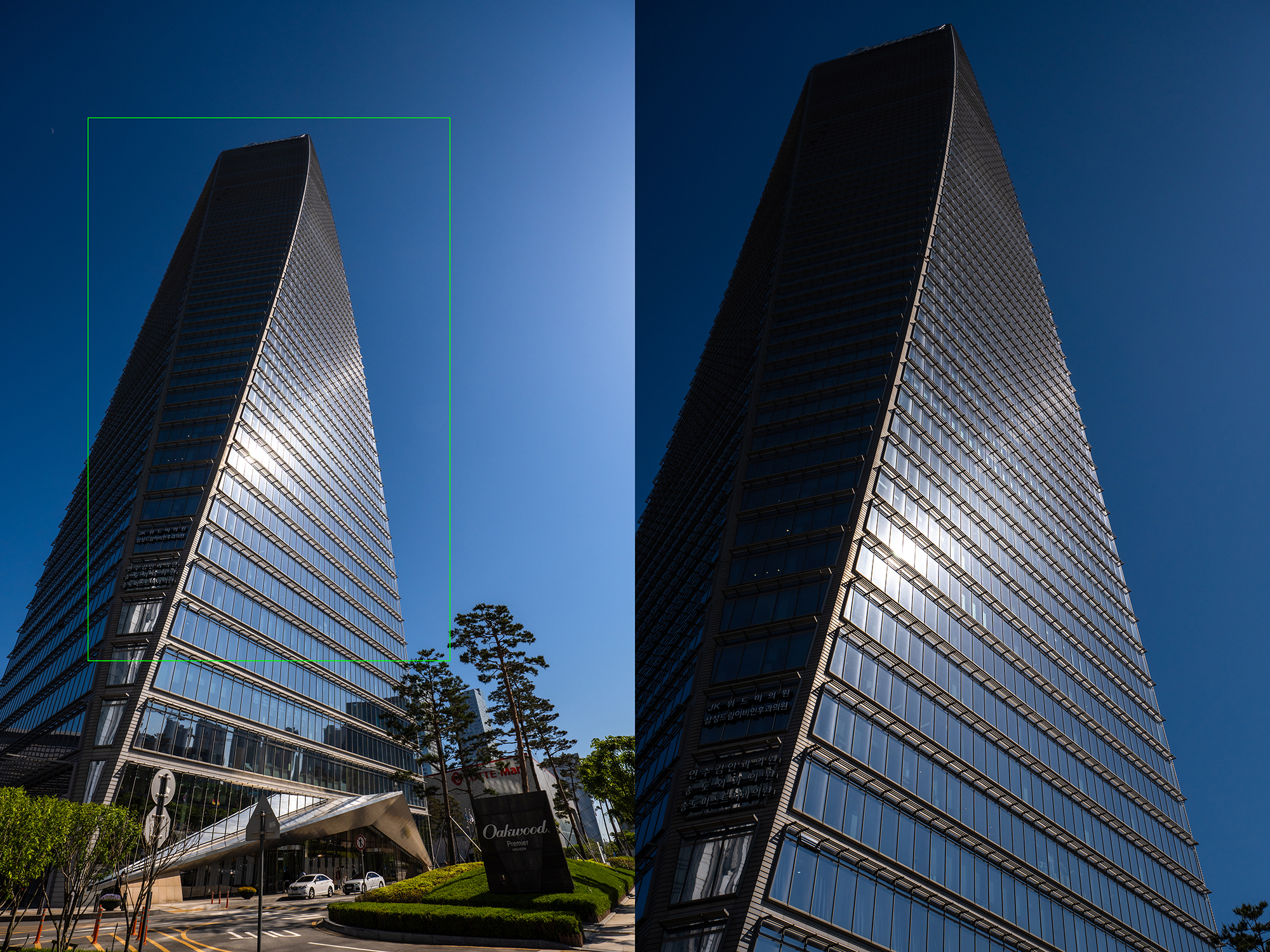 위 사진은 11mm 최대 광각과 20mm 광각의 촬영 영역을 비교한 것입니다.