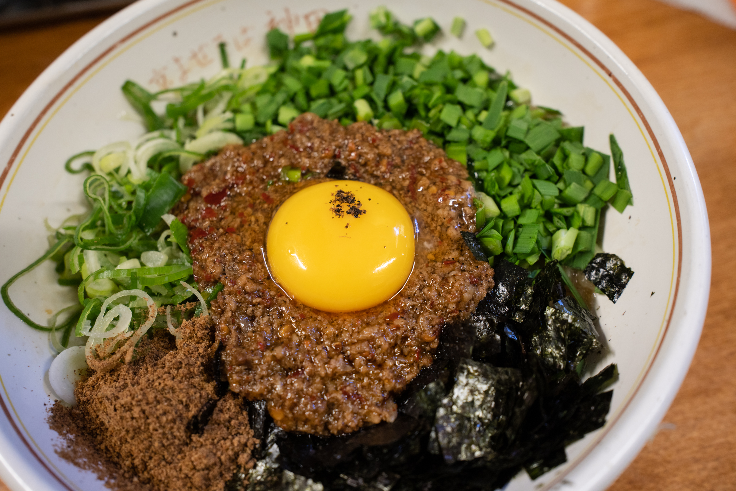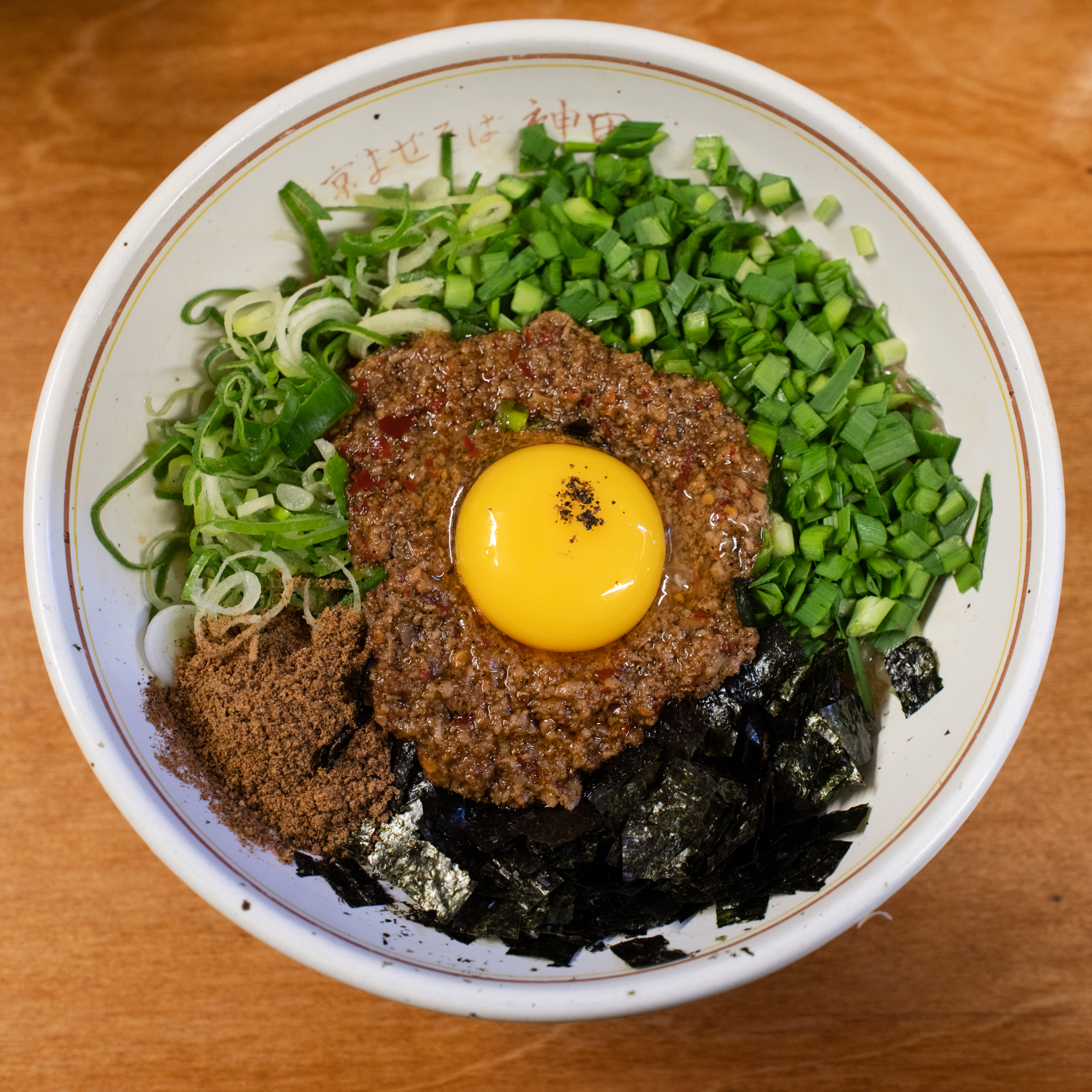 대표 메뉴인 마제소바. 도쿄 라멘 대회에서 우승한 메뉴라고 합니다. 근원을 따지면 일본 라멘이 아니라 대만의 면 요리로 알고 있는데 일본으로 넘어가서 사랑받는 메뉴가 됐다고 하죠. 쫄깃한 면 위에 양념장과 채소, 달걀 노른자를 올려 비벼 먹는 독특한 방식입니다. 가격은 9000원. 조금 높은 편이지만 마무리밥까지 하면 양이 꽤 많습니다.
