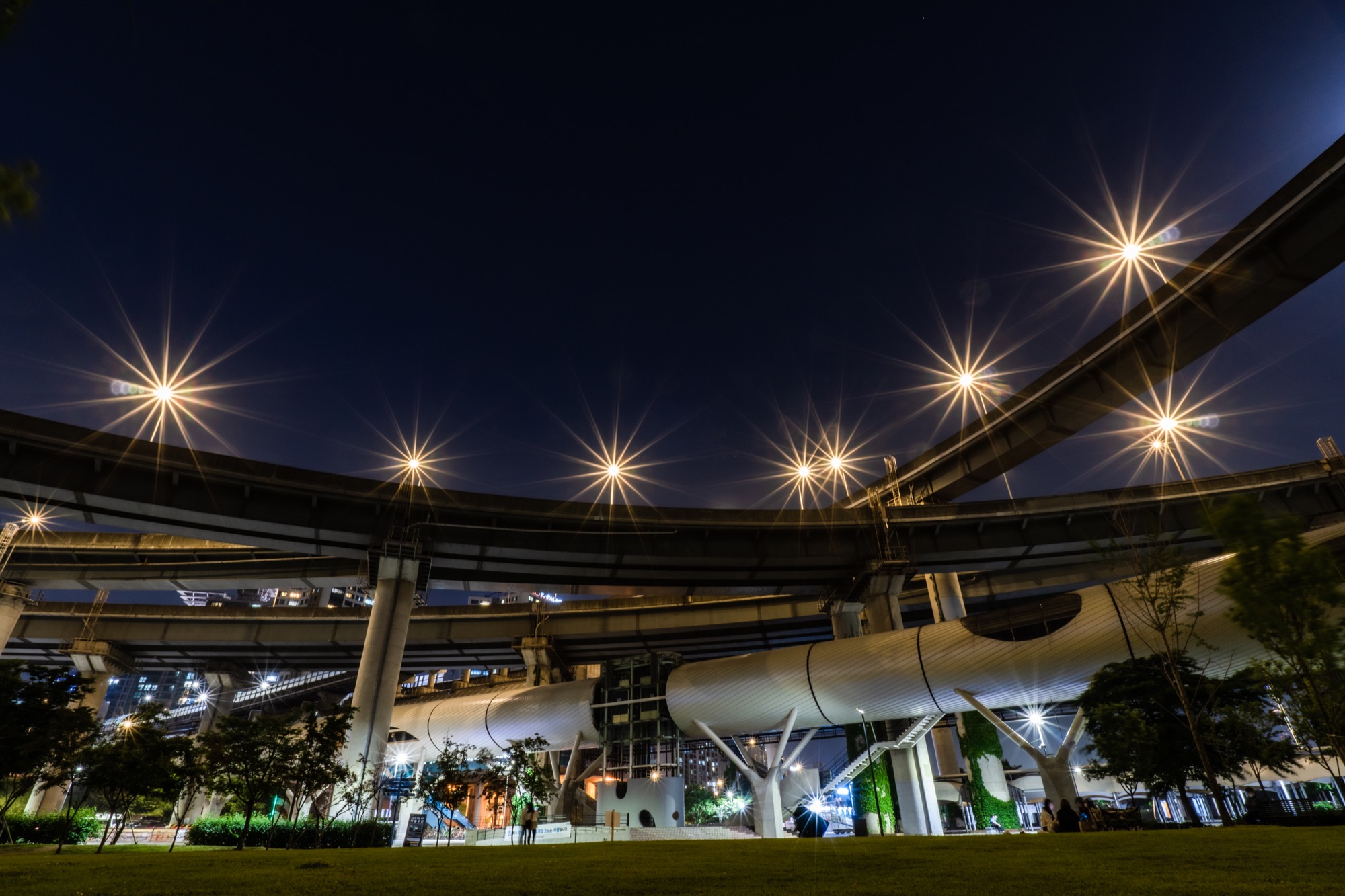 서울에서 제가 좋아하는 야경 스팟 중 한 곳은 뚝섬 한강 공원입니다. 청담 대교의 야경도 멋지지만 한강공원에 있는 자벌레 전망대 주변을 담는 것도 좋아합니다. 원형으로 굽은 강변북로의 가로등이 초광각 렌즈를 테스트 하기에 좋아서 초광각 렌즈를 테스트 할 때 늘 찾는 곳입니다.