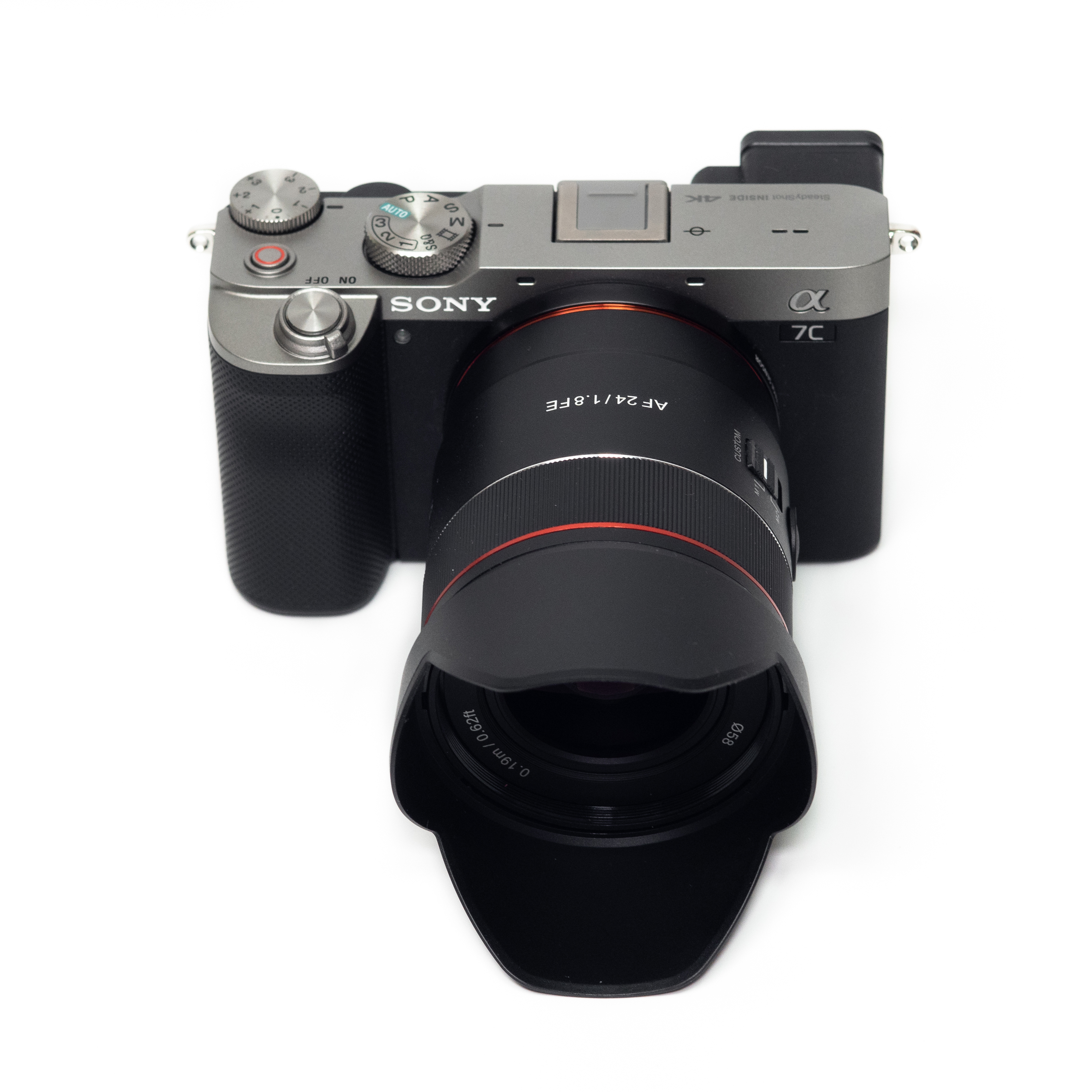 소니의 풀프레임 미러리스 카메라 A7C에 삼양 AF 24mm F1.8 FE 렌즈를 마운트 한 모습입니다. 삼양 tiny but 시리즈 렌즈의 장점을 가장 잘 느낄 수 있는 것은 이와 같은 소형 미러리스 카메라일 것입니다. 렌즈의 디자인 역시 A7C과 균형이 좋습니다. 경통에 있는 빨간색 띠도 소니 A 시리즈의 상징인 오렌지색 띠와 잘 어울리네요.