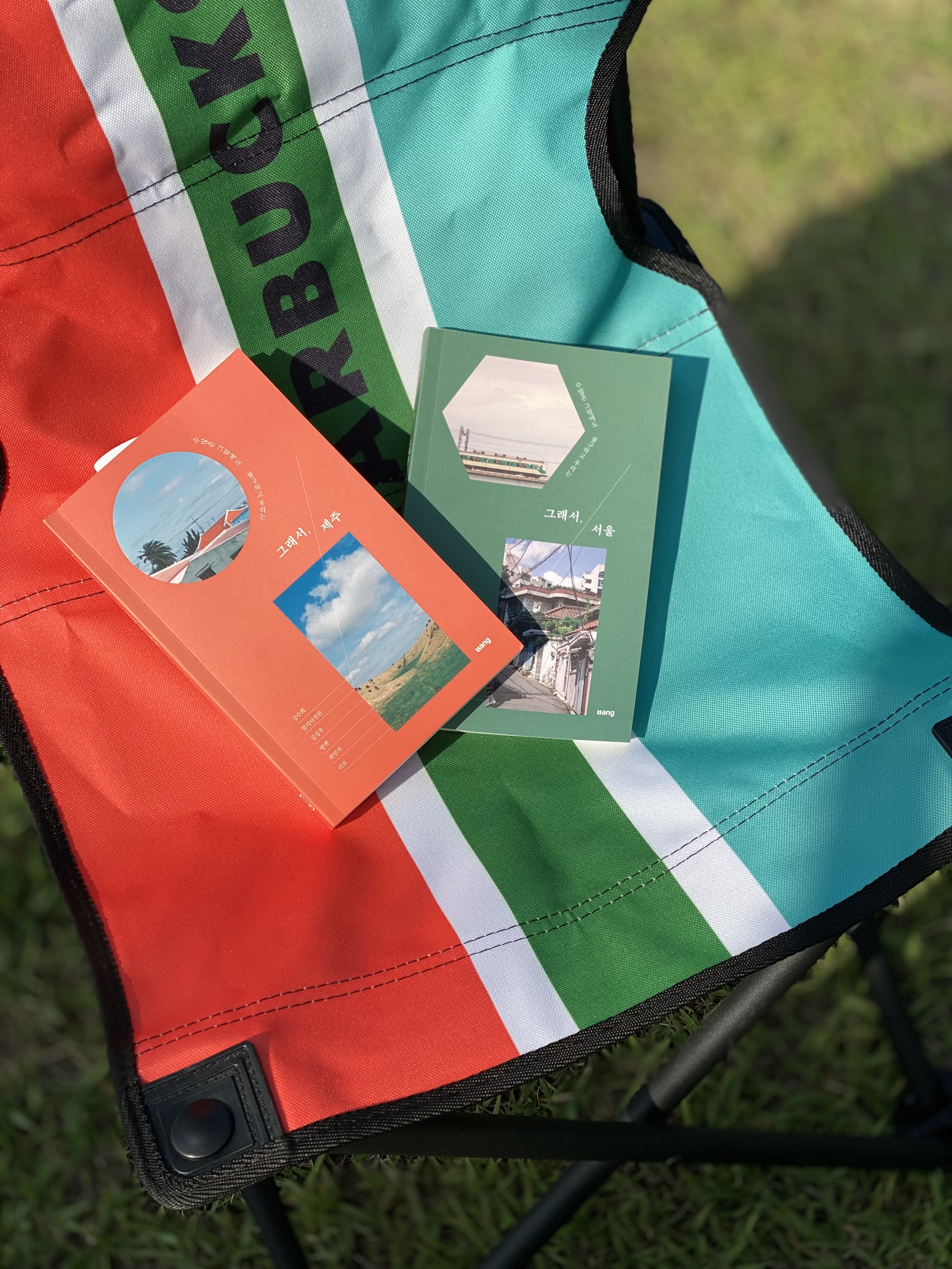 지난 주말, 배송된 책을 들고 한강 공원에 갔습니다. 캠핑 의자에 다리를 쭉 뻗고 앉아 책장을 한 장씩 넘기니 마음만은 제주와 서울을 널뛰기하듯 오갑니다. 익숙한 동네를 추억하며 작가와 함께 이야기를 나눠보고 생소한 골목길을 뒤따라 걷기도 했고요. 한 명의 독자로 그들의 이야기를 듣는 게 재미있었습니다. 제가 쓴 송당리 얘기는 가장 나중에 읽어 보려고요. 수없이 본 얘기지만 종이에 인쇄된 글씨로 보는 것은 또 완전히 다른 느낌을 주거든요.