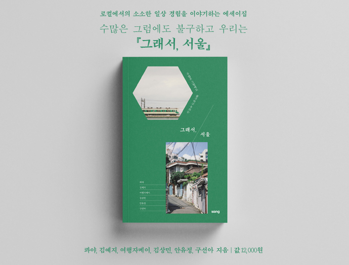 일상 또는 여행. 같은 장소가 사람 그리고 시기에 따라 완전히 다른 의미를 갖기도 하죠. '그래서, 서울', '그래서, 제주'는 그런 사람들의 이야기입니다. 서울, 제주를 주제로 한 책 두 권으로 구성돼있으며 저는 '그래서, 제주'에 한 꼭지를 맡아 구좌읍 송당리 이야기를 적었습니다. 출간 소식을 알린 지난 포스팅의 링크를 첨부할게요.