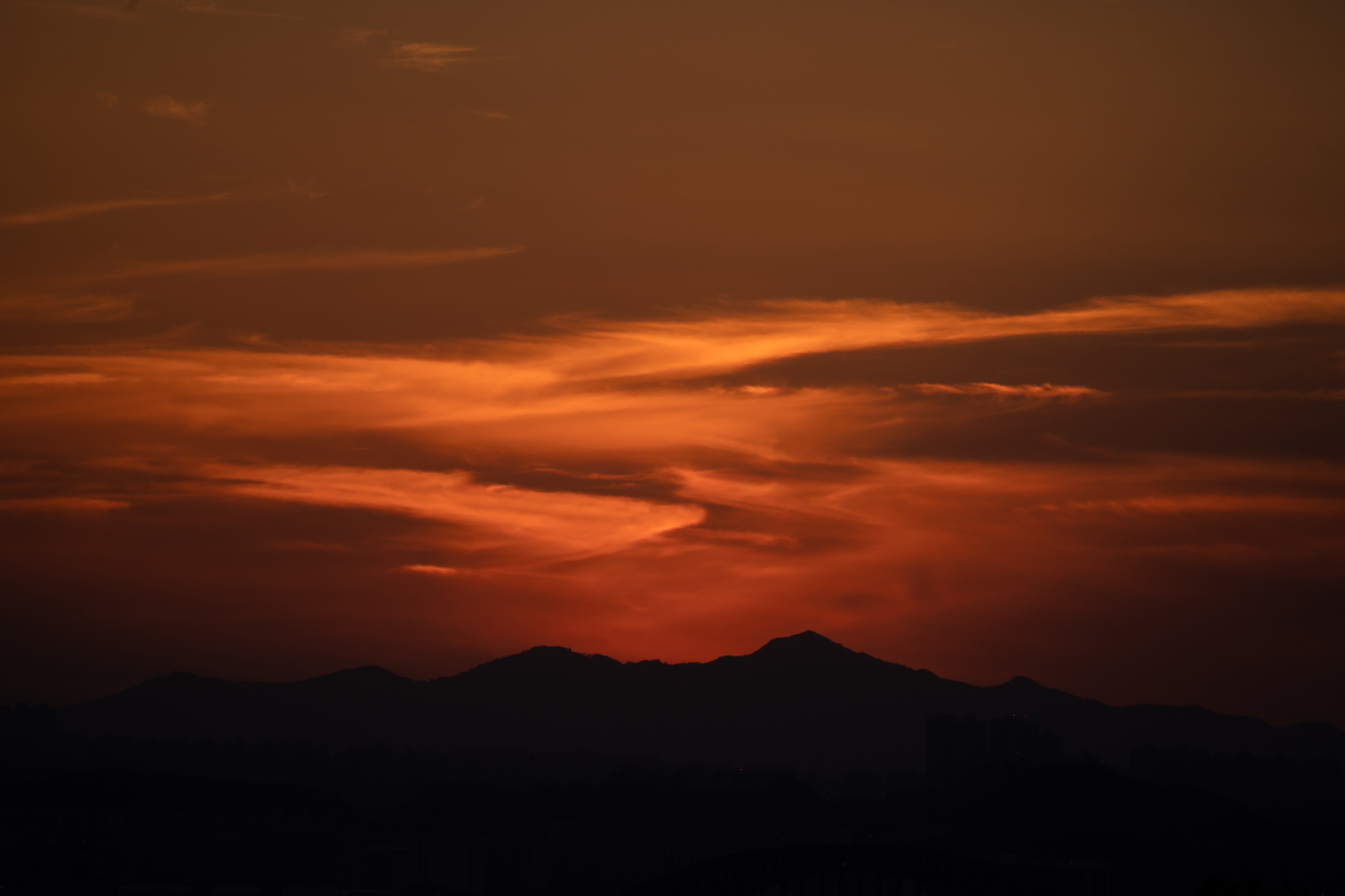 노을 무렵 찍은 해넘이 사진입니다. 150mm와 500mm의 프레임 차이를 확인할 수 있는 두 장의 이미지에서 500mm 망원이 태양을 꽤나 크게 담을 수 있다는 생각이 들었어요. 그래서 평소 관심은 있었지만 적당한 장비가 없어 도전해보지 못했던 달 사진을 이 렌즈로 촬영해보기로 했습니다.