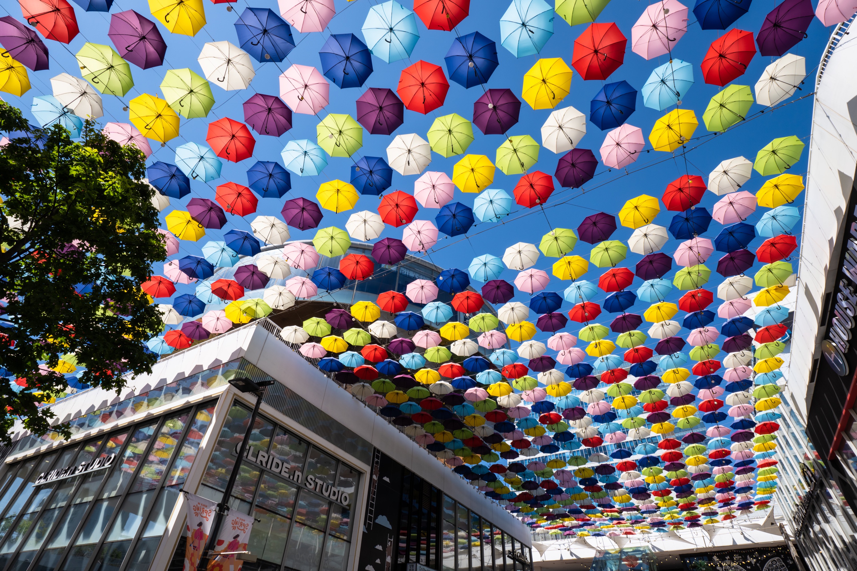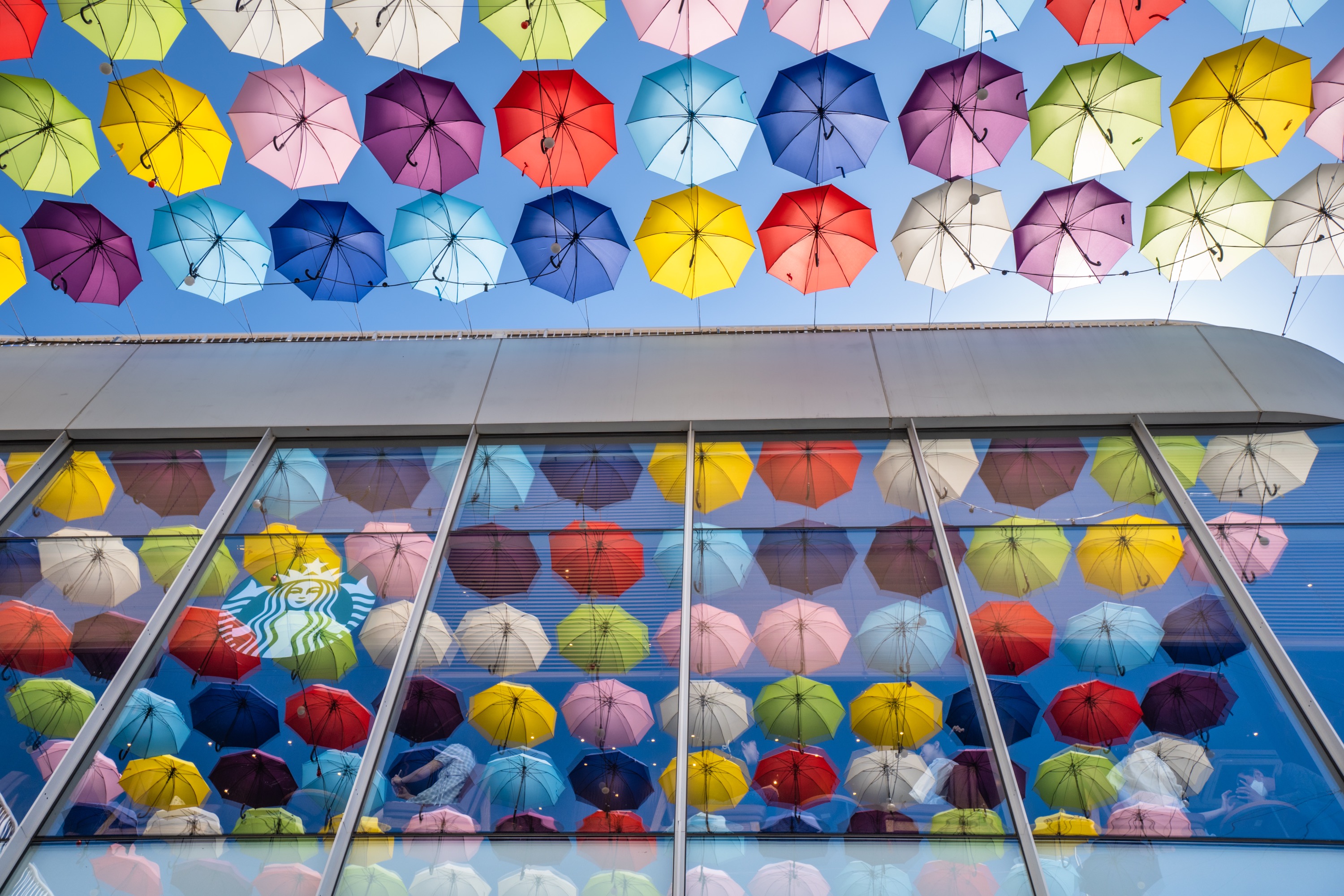 본격적인 풍경 촬영 전에 테스트 해 본 이 렌즈의 11mm의 최대 광각. 대형 건축물과 광장의 전경을 찍을 때 그 장점이 도드라졌습니다. 한 눈에 다 담기지 않을만큼 큰 건축물을 11mm 초광각으로 꼭대기 층까지 모두 담을 수 있었고, 광장의 하늘을 가득 채운 우산 행렬도 그 매력이 느껴지게끔 넓게 담을 수 있는 것이 좋았습니다. 최신 휴대폰의 초광각 카메라가 이 렌즈의 11mm 최대 광각 프레임과 비슷한 것을 생각하면 그 시원시원함을 어느 정도 가늠할 수 있겠습니다.