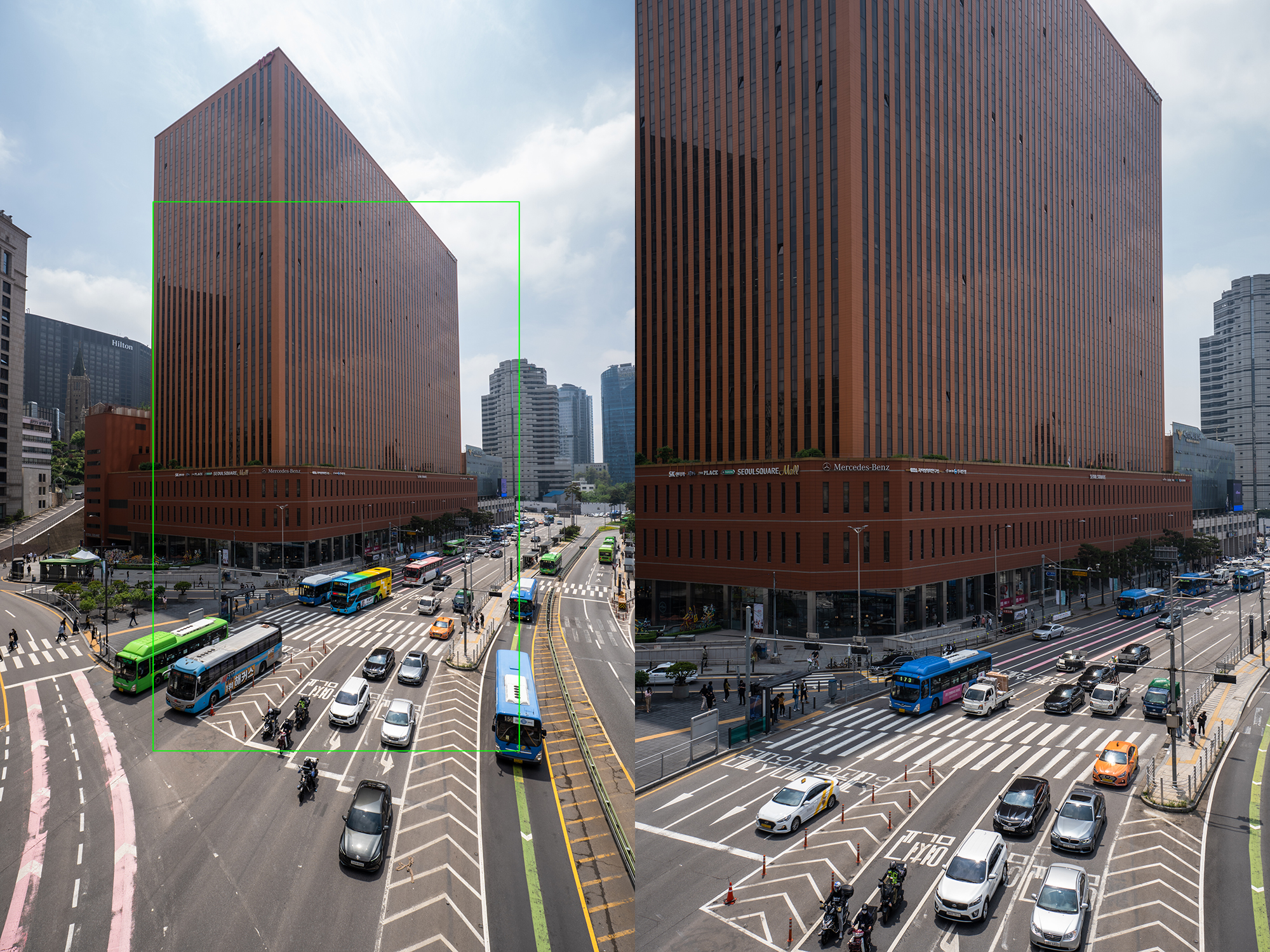 아래는 동일 환경에서 촬영한 11mm 최대 광각과 20mm 광각 촬영 이미지입니다. 프레임의 너비와 그로 인한 연출의 차이 등을 확인할 수 있겠습니다.
