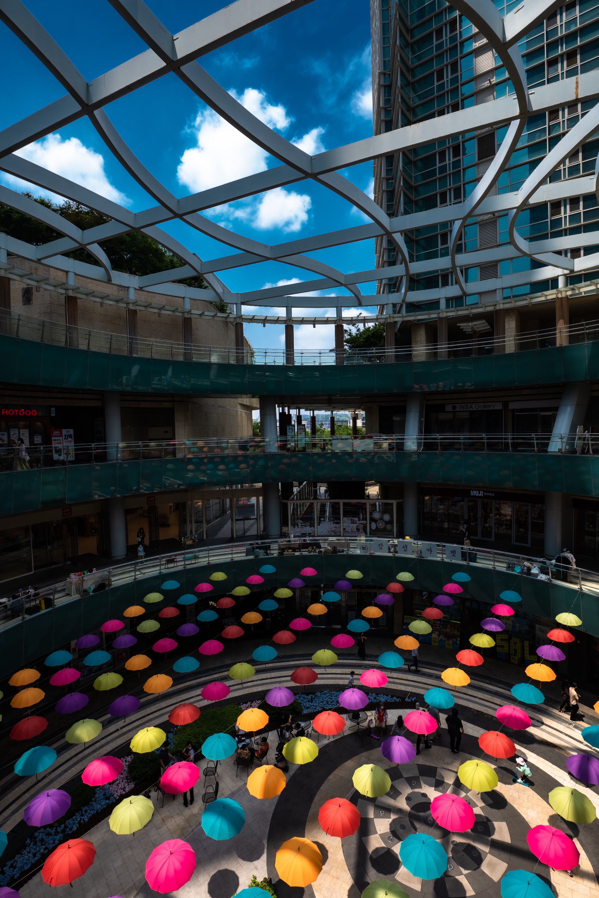 본격적인 풍경 촬영 전에 테스트 해 본 이 렌즈의 11mm의 최대 광각. 대형 건축물과 광장의 전경을 찍을 때 그 장점이 도드라졌습니다. 한 눈에 다 담기지 않을만큼 큰 건축물을 11mm 초광각으로 꼭대기 층까지 모두 담을 수 있었고, 광장의 하늘을 가득 채운 우산 행렬도 그 매력이 느껴지게끔 넓게 담을 수 있는 것이 좋았습니다. 최신 휴대폰의 초광각 카메라가 이 렌즈의 11mm 최대 광각 프레임과 비슷한 것을 생각하면 그 시원시원함을 어느 정도 가늠할 수 있겠습니다.